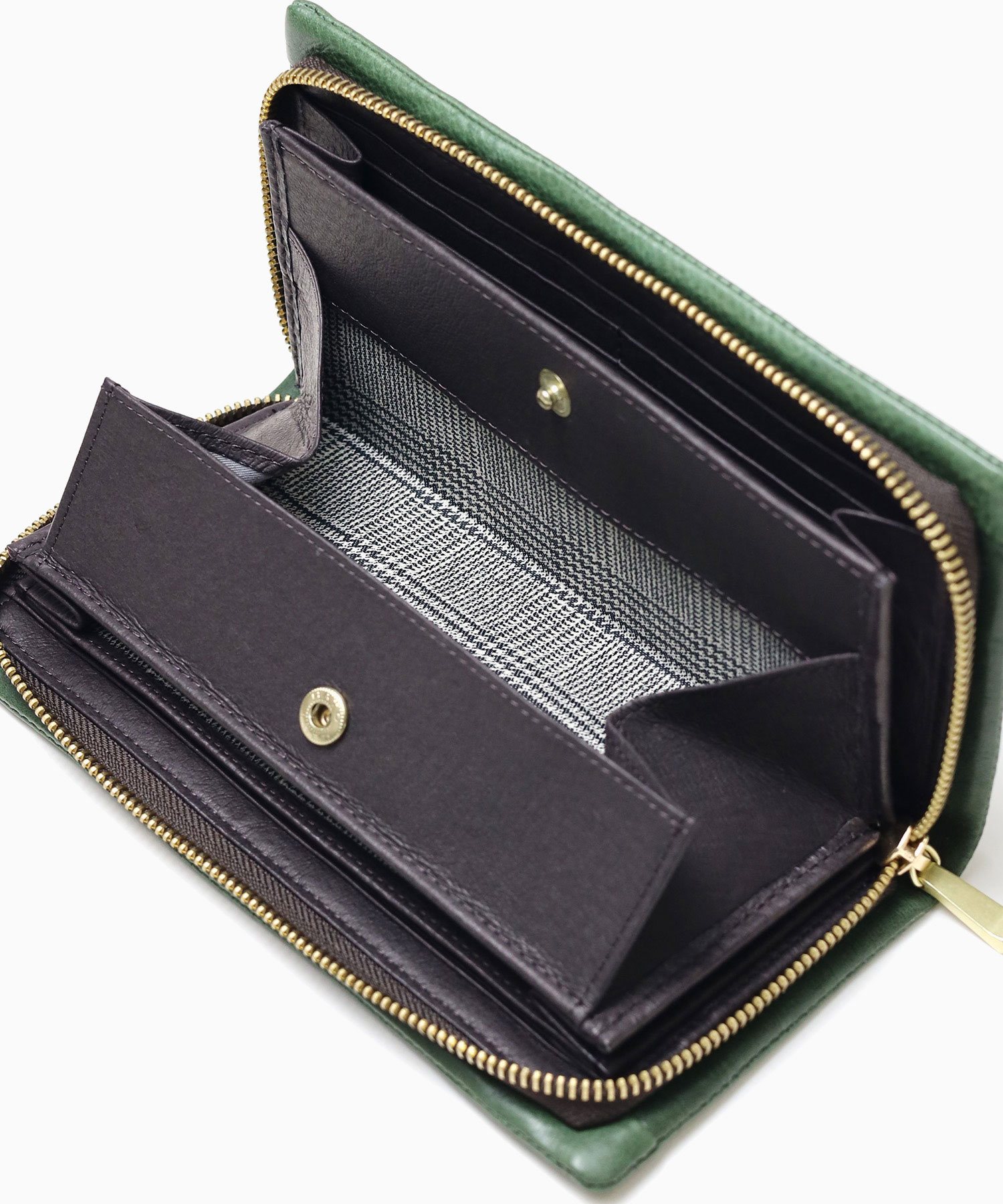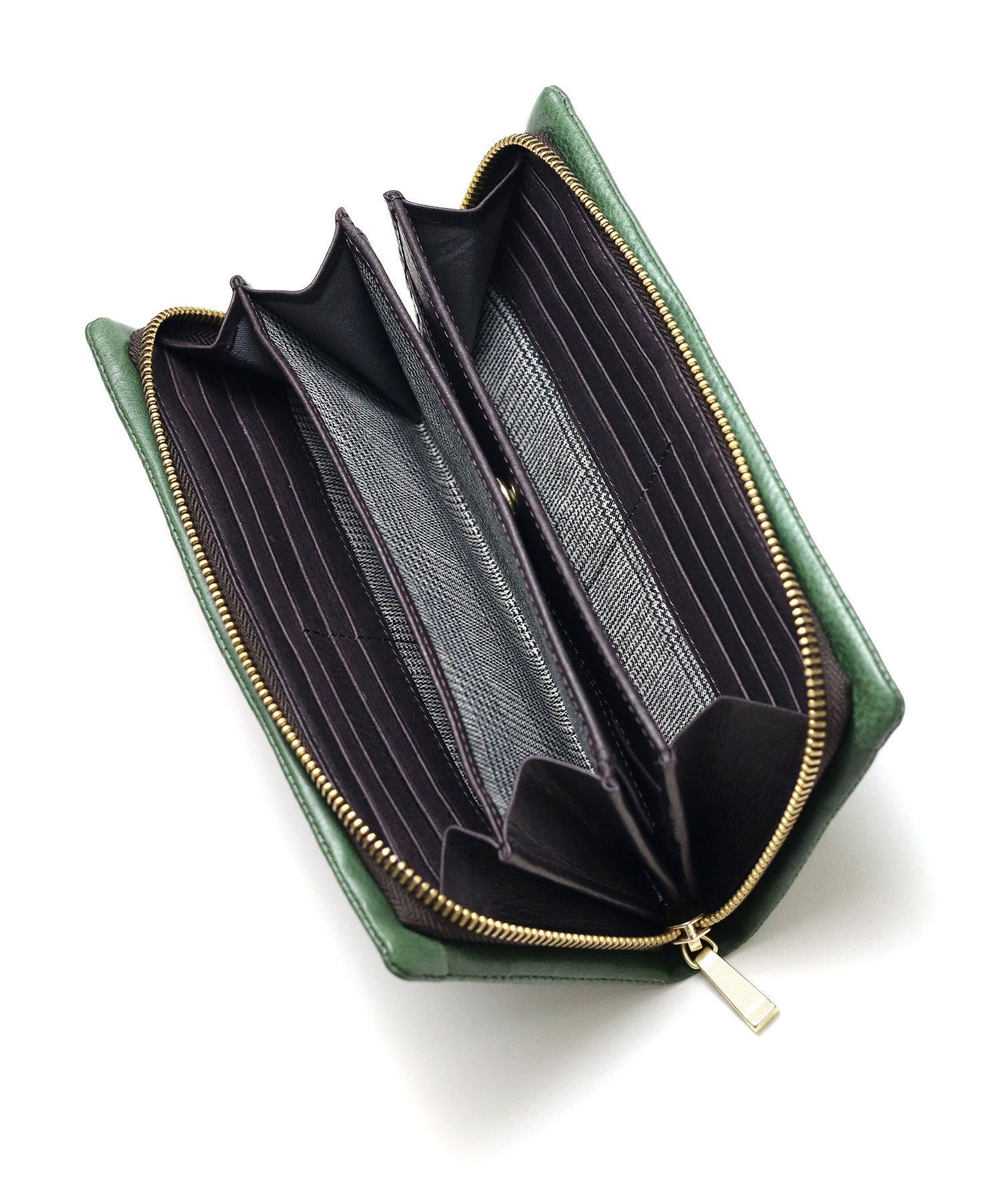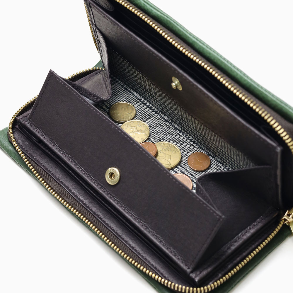 内装には札入れが3つ、フリーポケットが2つ、BOX型の小銭入れ、カード段が合計13あります。小銭入れはガバッと大きく開くBOX型なので、中が見えやすく小銭の出し入れもしやすくなっています。