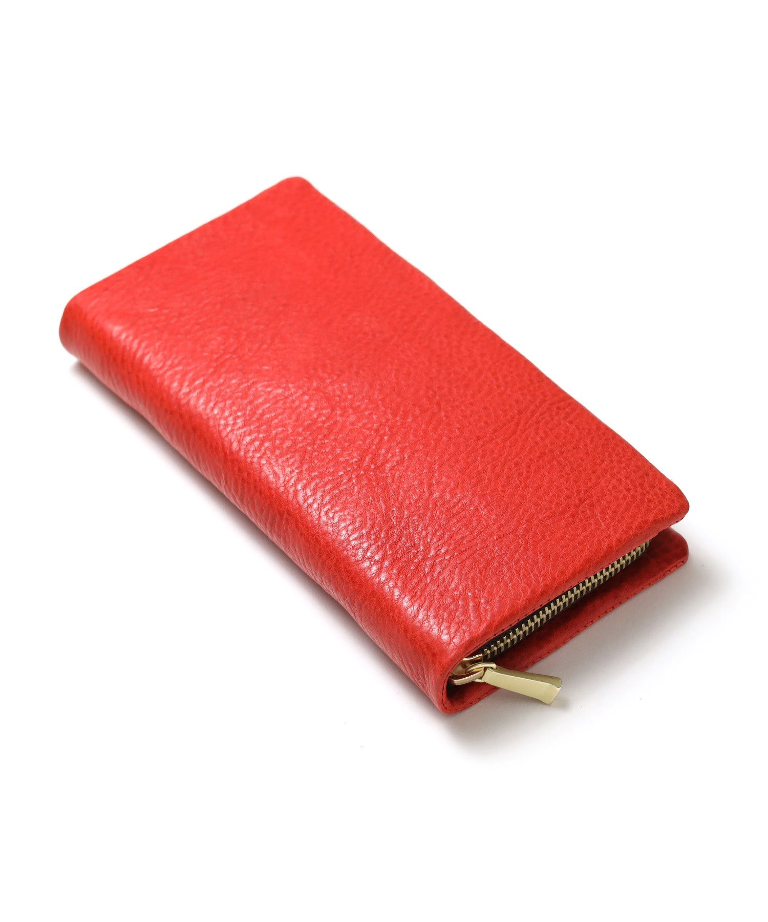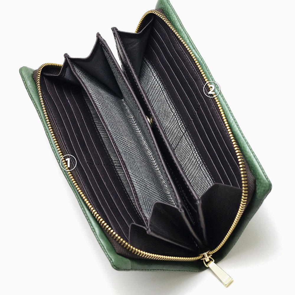 カラフルで質感の良いイタリアンレザーとカード収納たっぷりのボリューム感が魅力的な袋縫いのラウンドファスナー長財布。イタリア・トスカーナ地方サンタクローチェで昔ながらのバケッタ製法で作られた、染料・芯通しのフルベジタブルタンニンシュリンクレザーを使用しています。繊維をほぐす加工を行い、優しいシュリンクに仕上がっており、しなやかでしっとりとした手触りと風合いが特徴です。