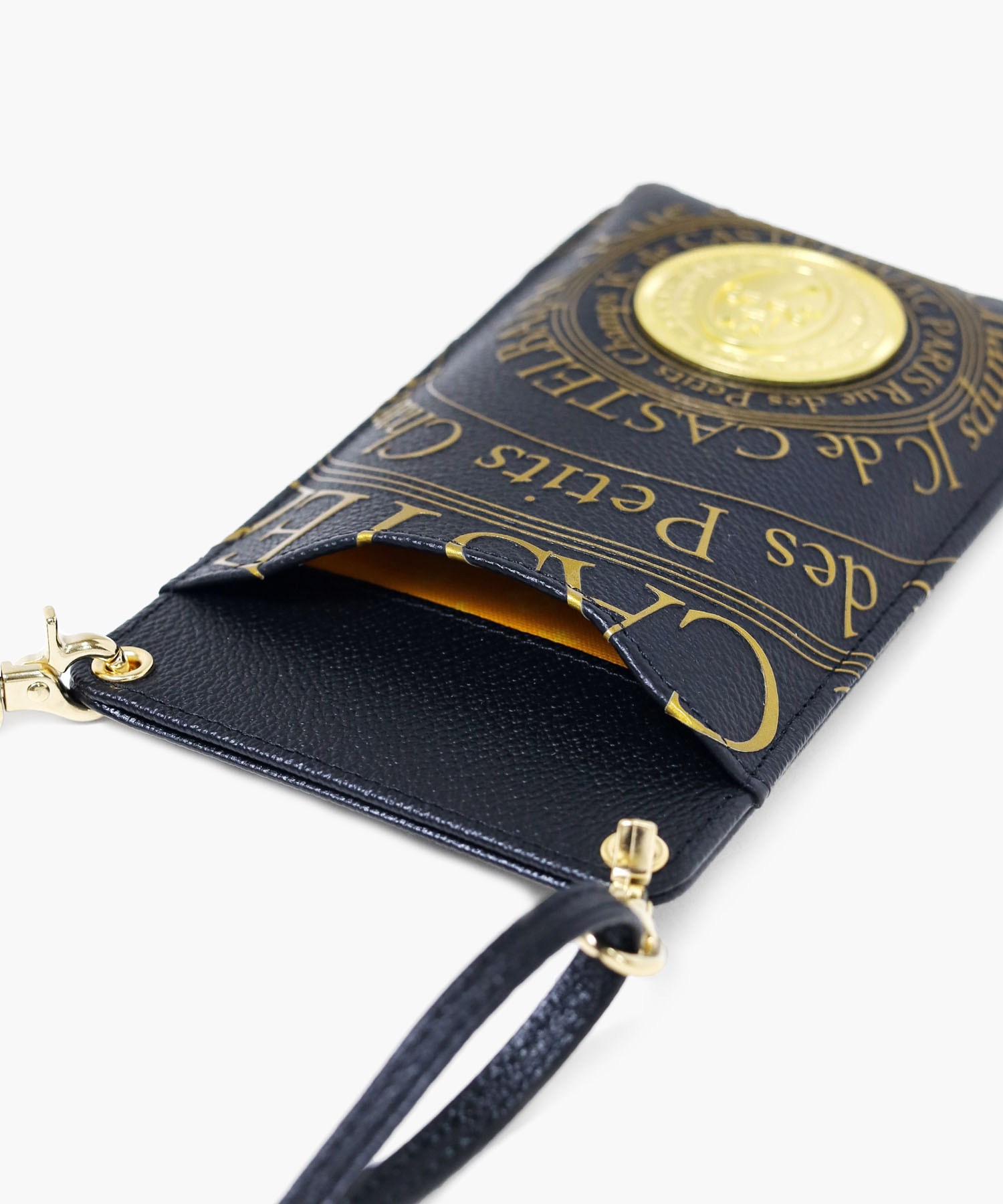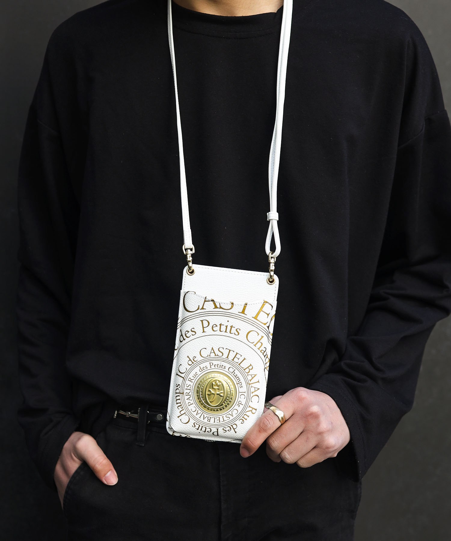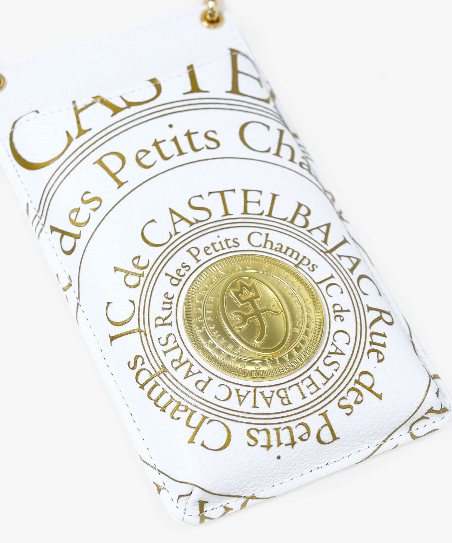 カステルバジャックのオールレザーで上質なメンズシリーズ。フランスのコインをモチーフにした立体的なゴールドプレートと、その周りに施されたゴールドプリントがハイグレードな男っぽさを演出します。ゴールドが映える、クロと白の2色展開です。持ち物のアクセントになるので派手好きの方にはぴったりなアイテムとなっております。