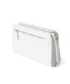 コンパクトなサイズ感のクラッチバッグ。背面と内側にポケットが備わっているので、小物等が中でバラつかずに収納可能。持ち手ハンドルがあり、持ち運びしやすいデザインです。ゴールドプレートがアクセントになり、コーディネートを華やかに見せてくれるバッグです。