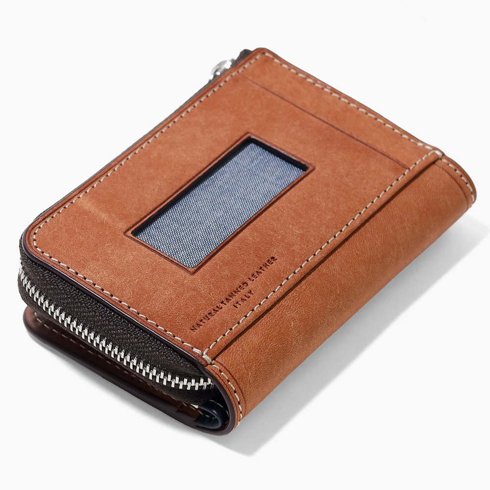 本体素材には、植物性タンニンを用いて時間をかけてなめされた製法の中でも、牛脂を使用した「バケッタ製法」で作られたレザーを使用しています。通常の革よりも時間をかけてゆっくりとオイルを染み込ませていくので、オイルが抜けにくく、色や艶が非常に良い味を出してくれます。