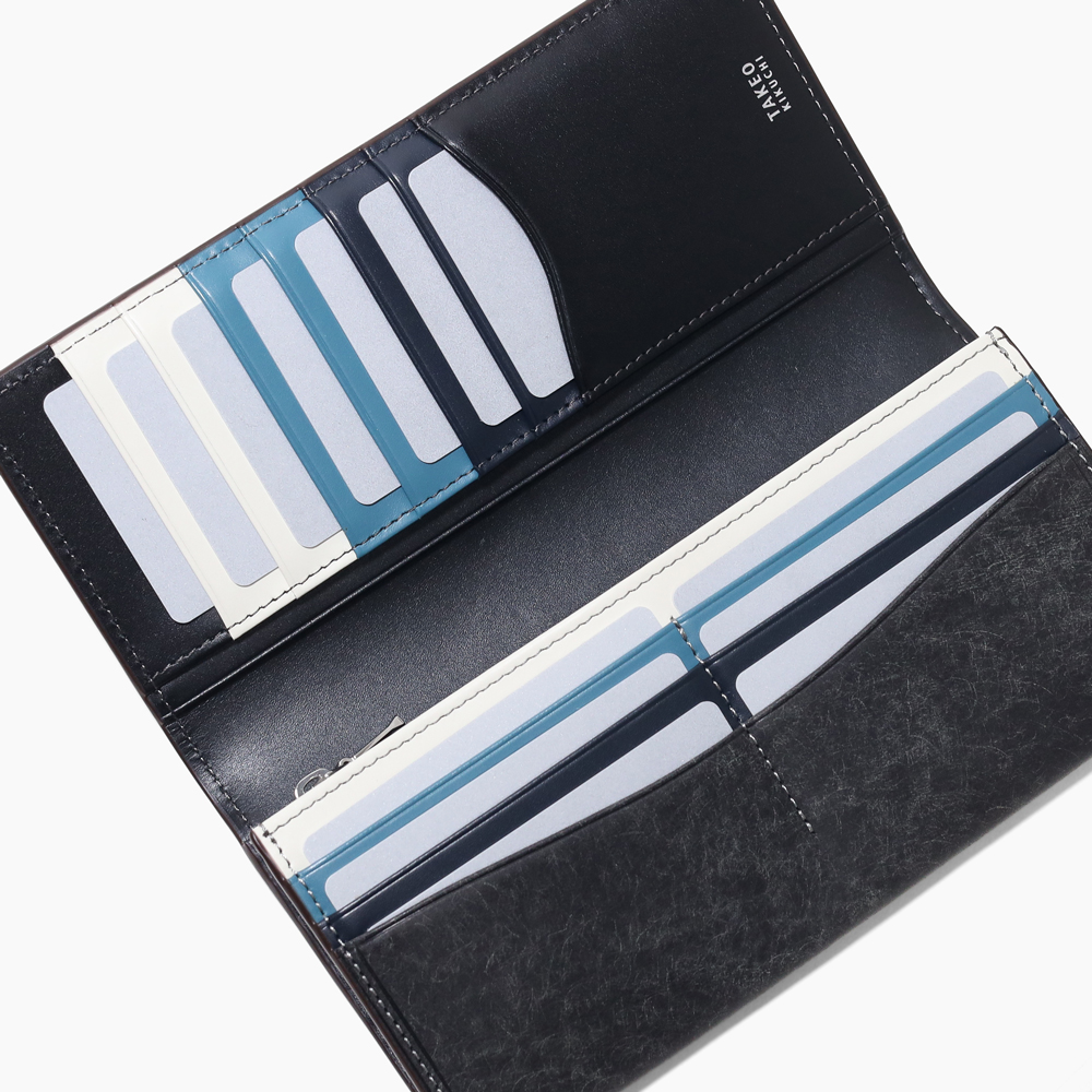 エイジングを存分に堪能できるインポートレザーを使用した、TAKEO KIKUCHIのかぶせタイプの長財布です。内装にはカラーコンビネーションの施したカラフルな色合いや、裏地に素材感あるダンガリー生地を使用するなどカジュアルなデザインに仕上げています。 また札入れ内にカードポケットを設けることでカードを計19枚とより多くカードが収納できるようにしました。