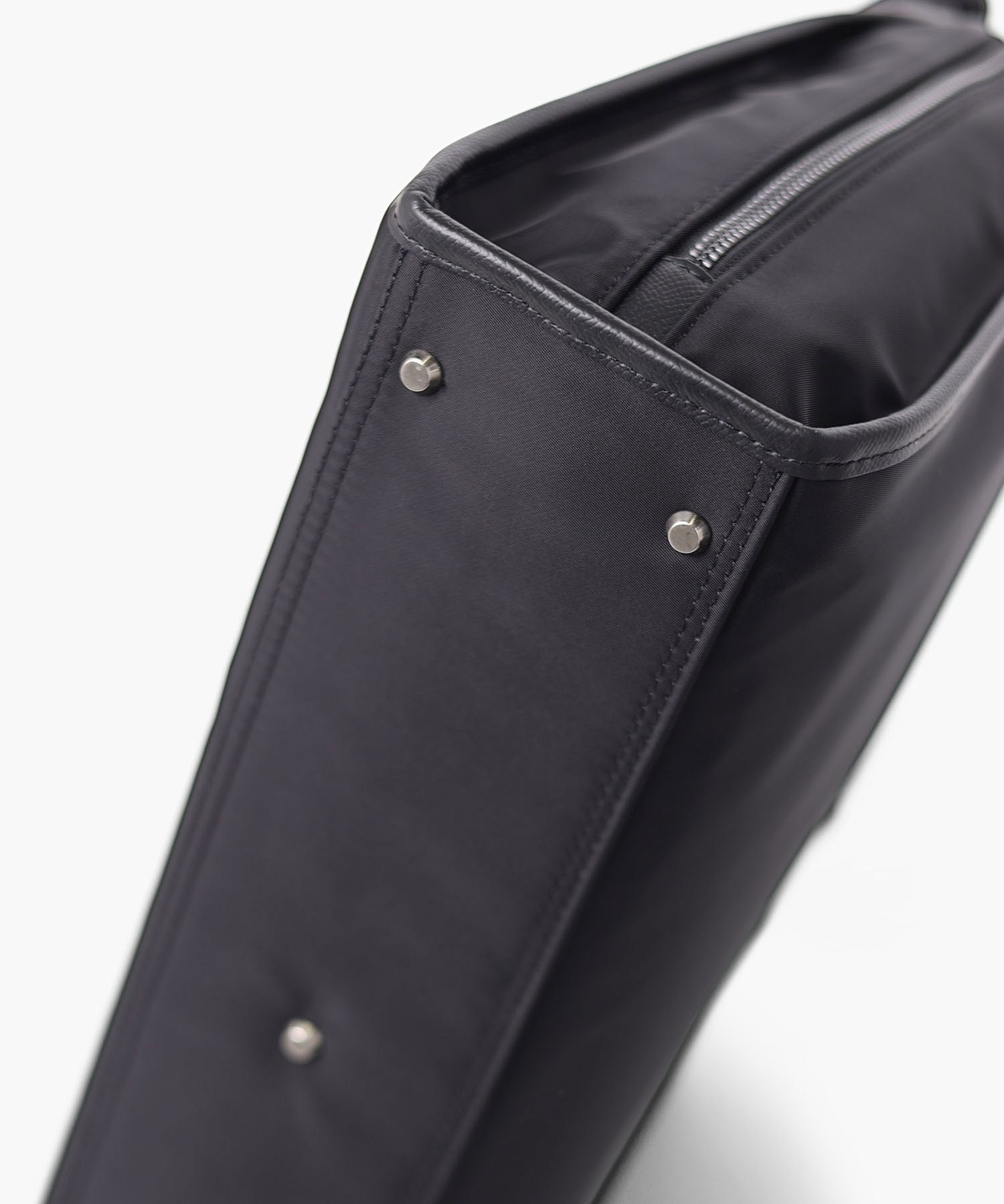 本体素材には上品な光沢感のあるリサイクルナイロンを使用しています。表面には撥水加工も施されている為、水に強くお手入れも簡単です。