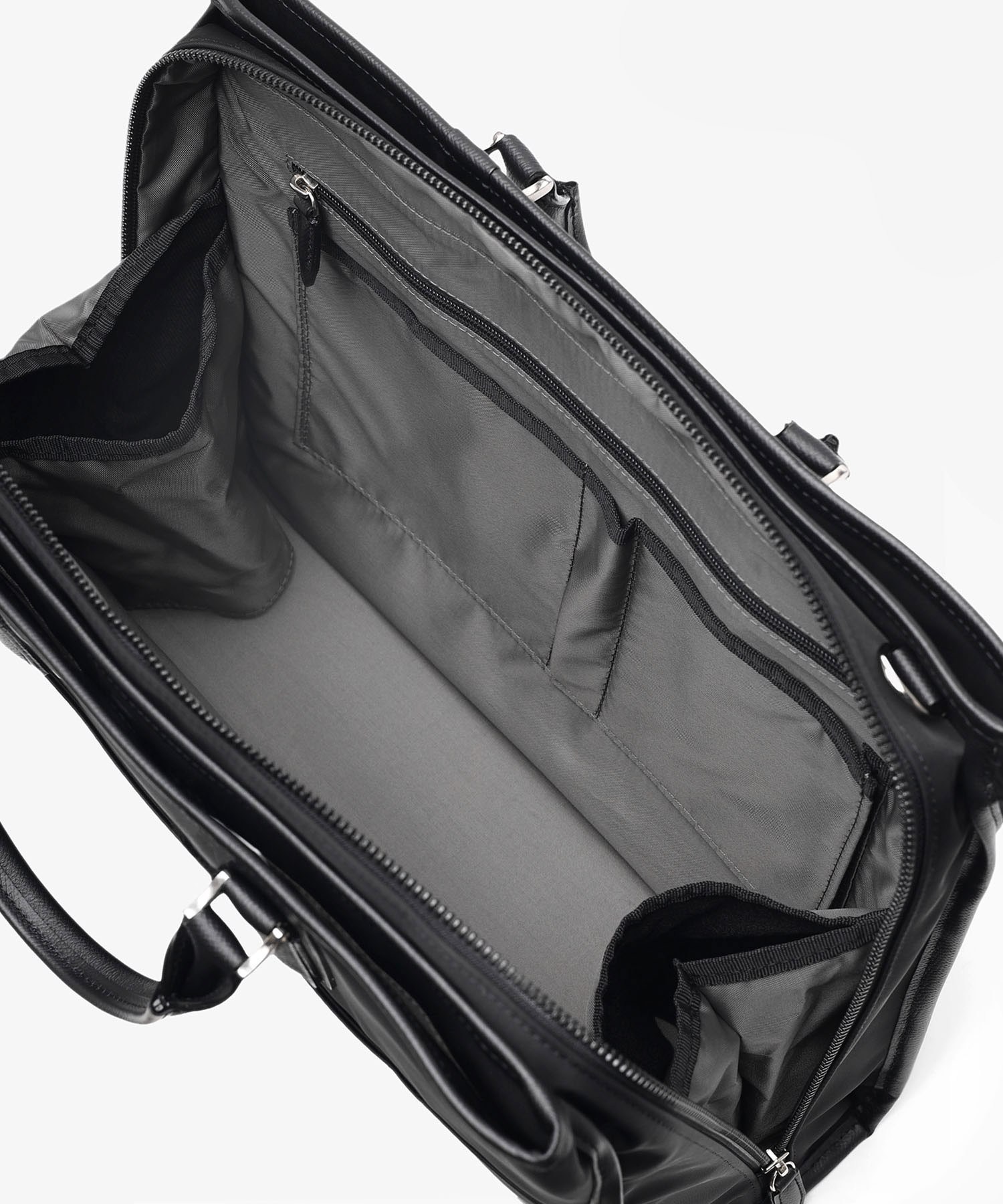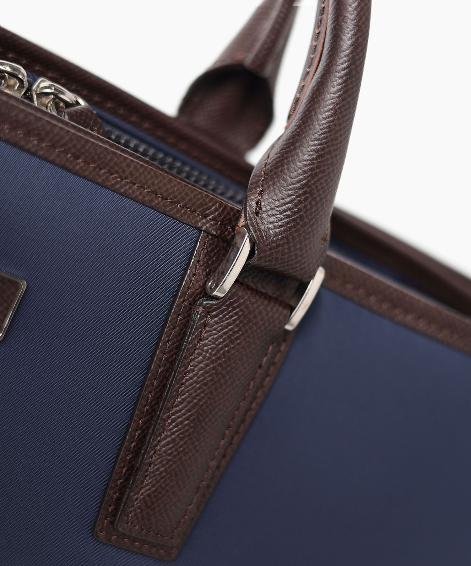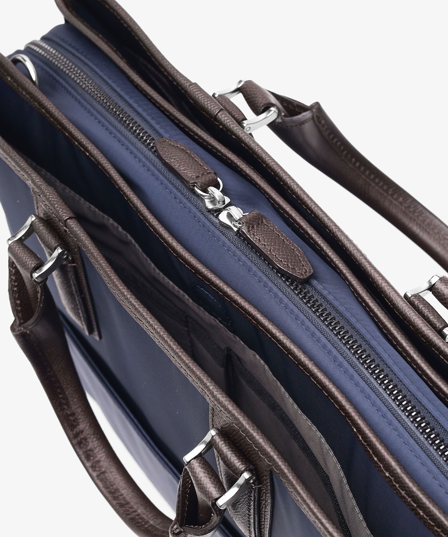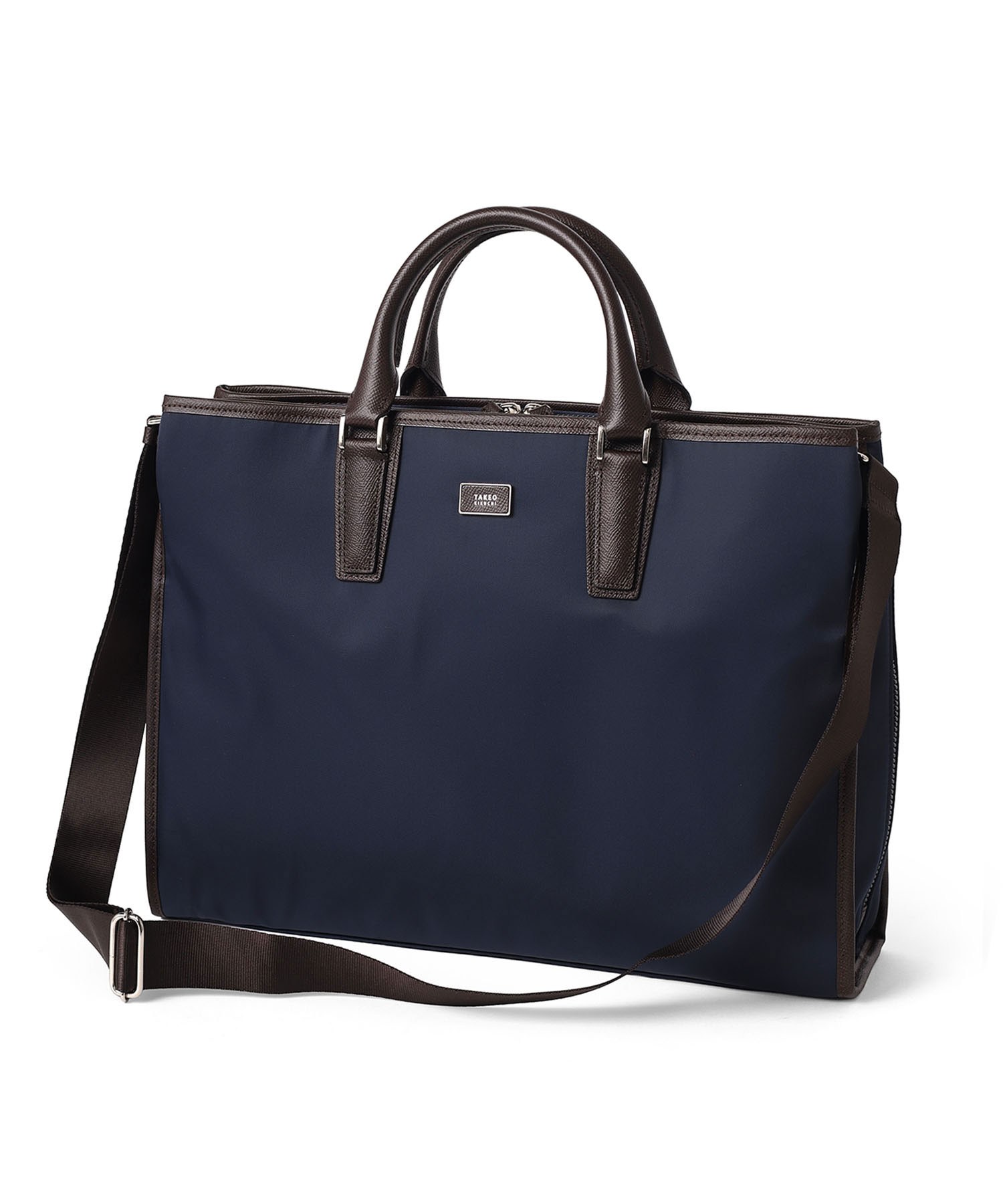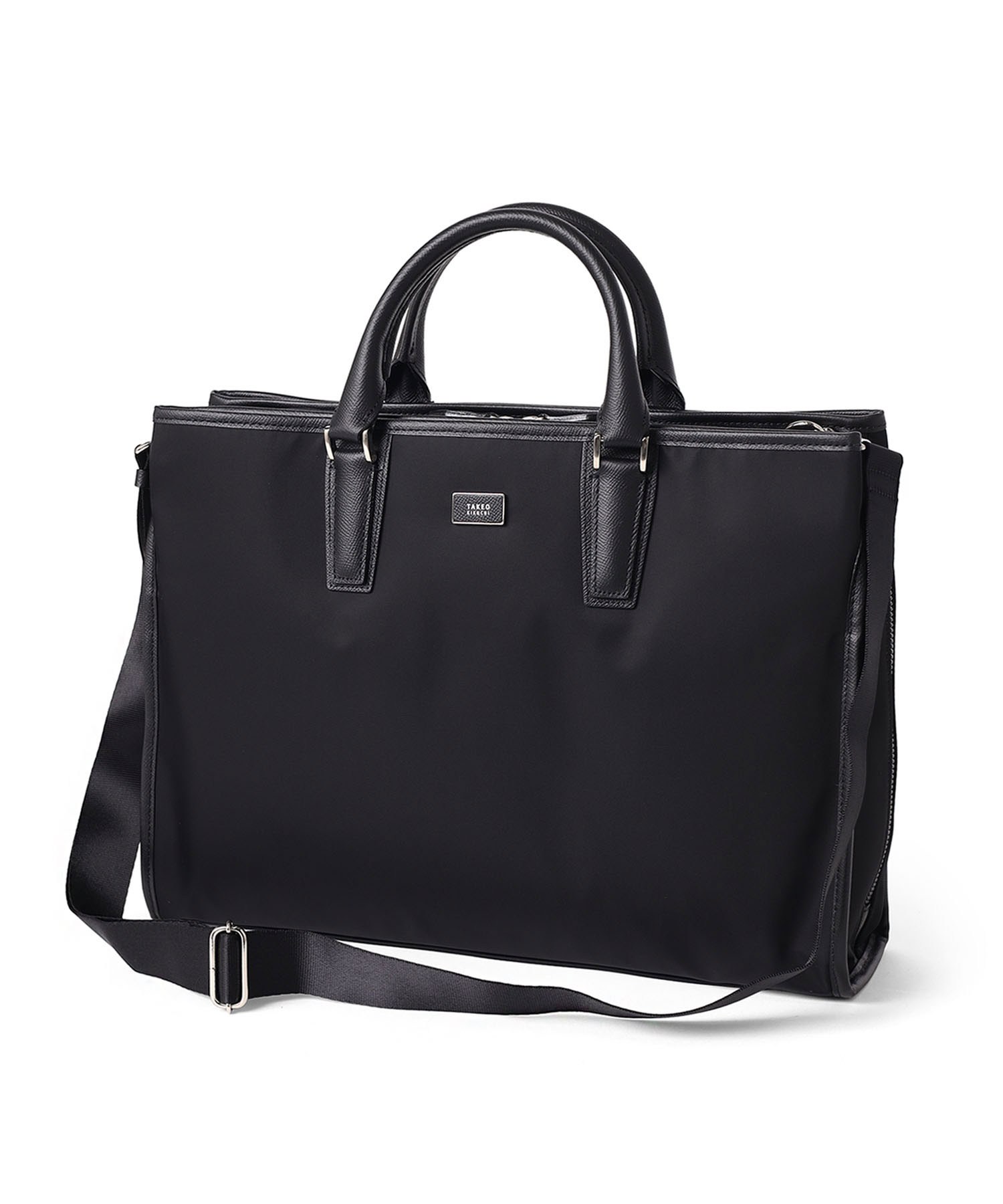 特徴的な両面アオリポケットによる使いやすさがポイントのタケオキクチのB4サイズビジネスバッグ。ショルダーベルト付きで斜め掛けにも対応しています。豊富にあるポケットで収納機能が充実しており、ノートパソコンの持ち運びも可能。ビジネスシーンで活躍するベーシックなビジネスバッグです。