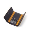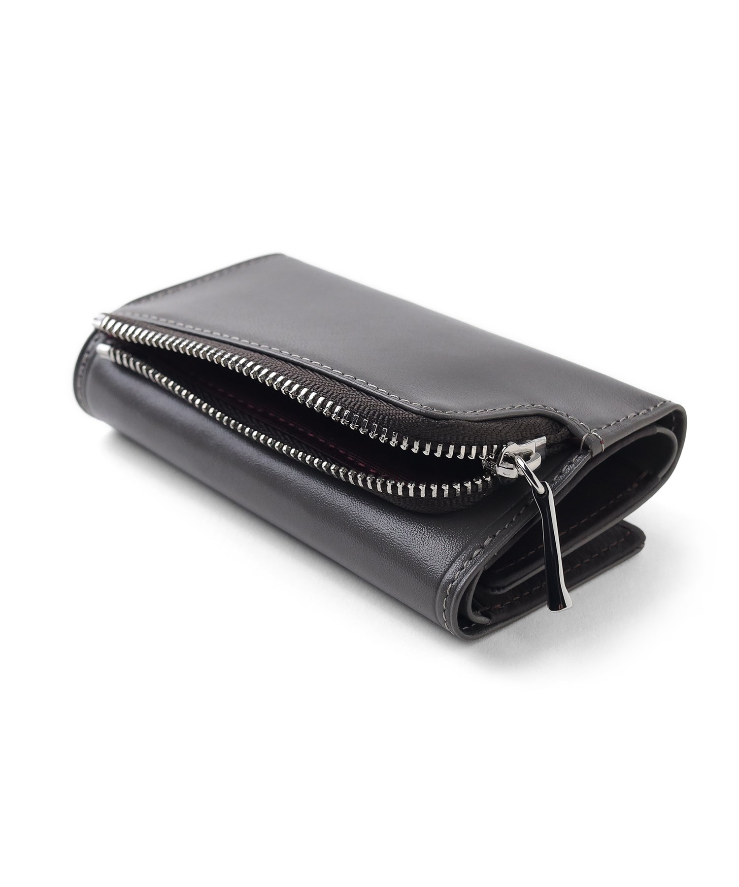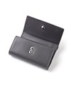 本体素材には、アニリン仕上げによる透き通るような透明感が特徴のキップ調レザーを使用。小さめのスクエア型ロゴプレートは、さりげないながらも存在感があり高級感を高めています。