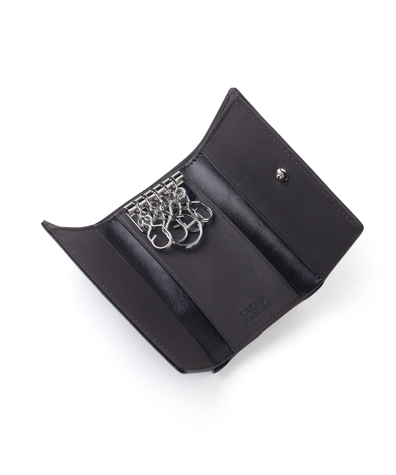革の艶を生かした発色の良いカラーが魅力のタケオキクチのキーケース。札入れ、カードポケット、小銭入れが備わっているのでミニ財布としてもお使いいただけます。