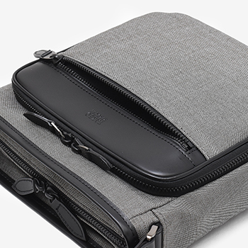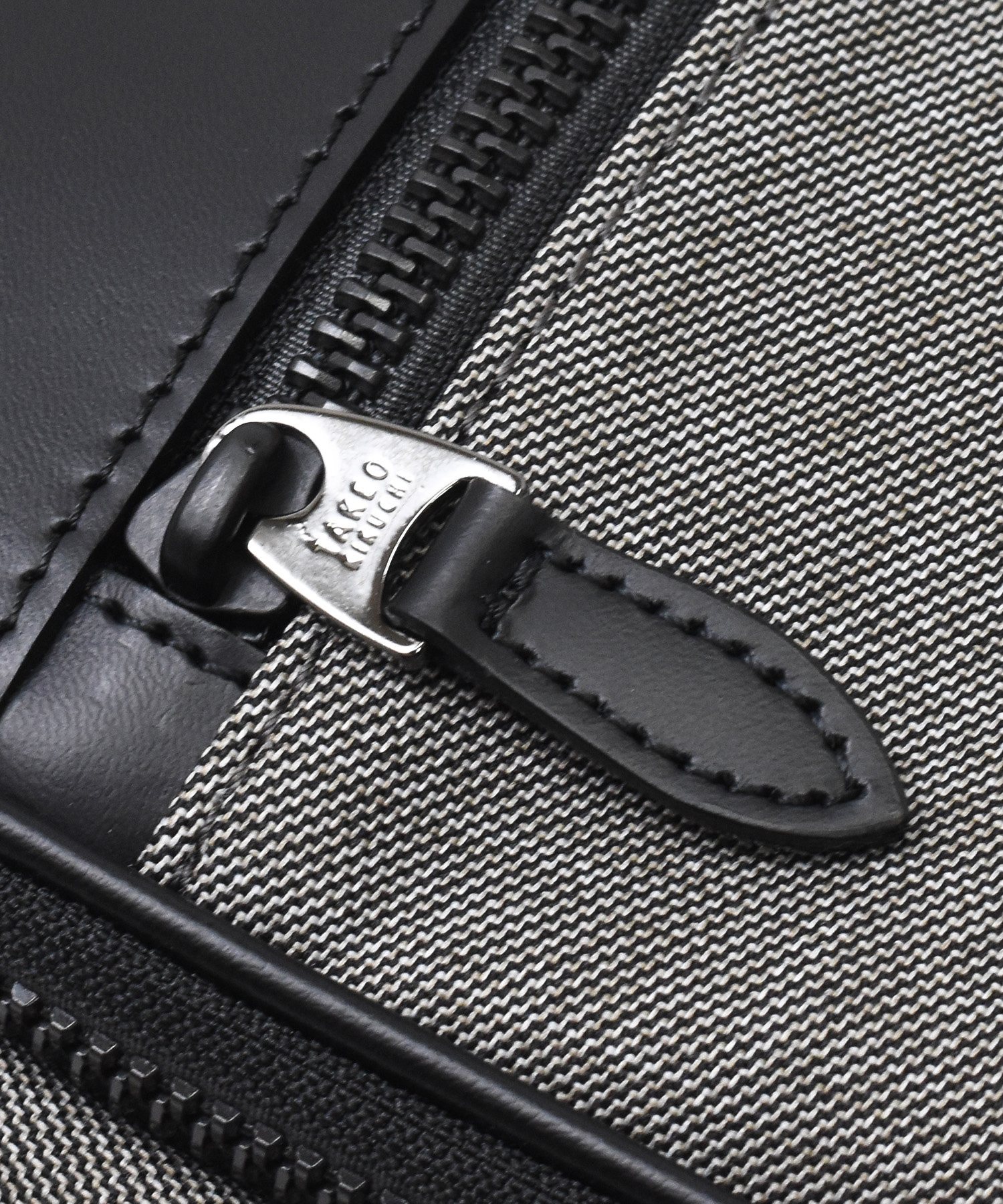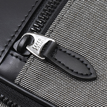 本体素材はスーツやジャケットなどの服地で使われている杢調ポリエステルを使用しています。フォーマルに近いこの素材は上品な雰囲気を演出することができます。また表面に撥水加工を施しているので安心して気軽に使えるので様々なシーンで活躍できる素材です。