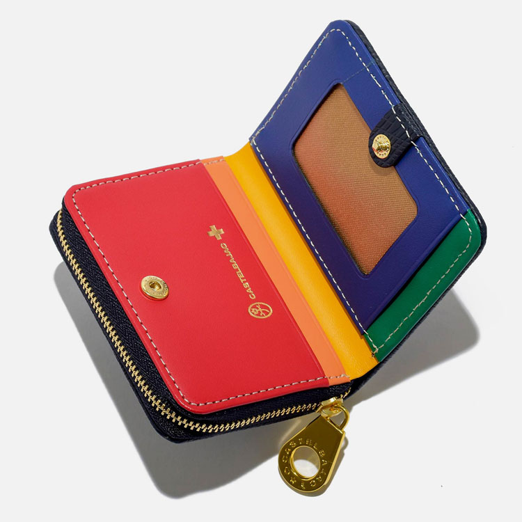 更に小銭入れ端にレインボーカラーのテープをワインポイント使いし、よりカステルバジャックらしい雰囲気を演出しました。