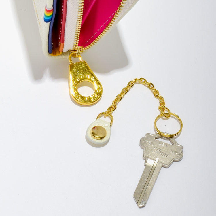小銭入れ内部に設けられた2つのカードポケットの他、取り外し可能なキーチェーンも付いています。