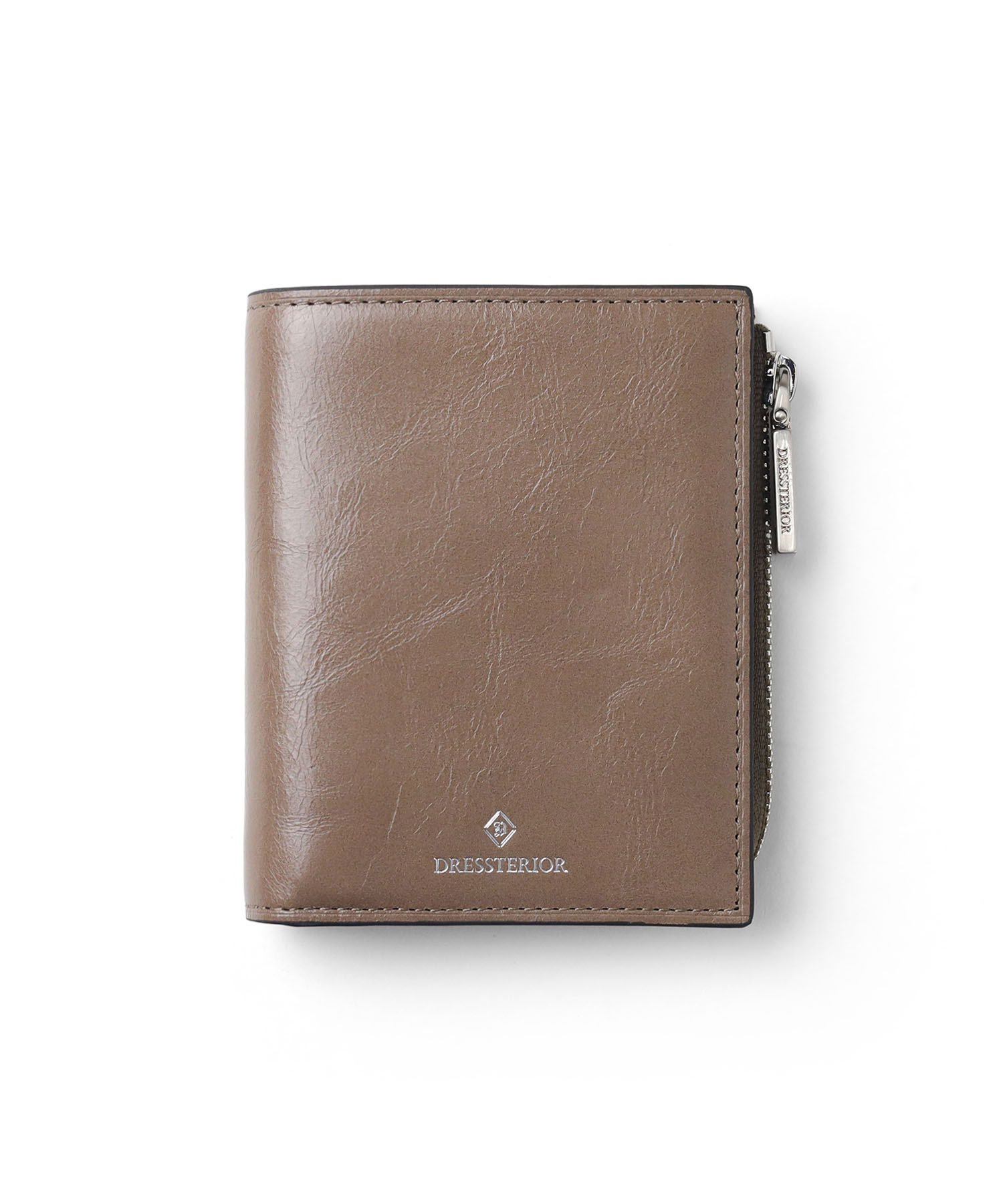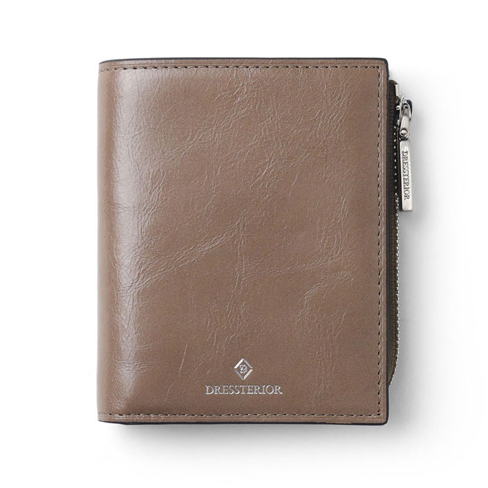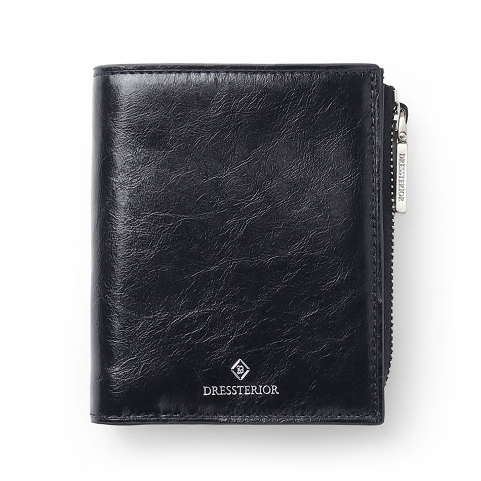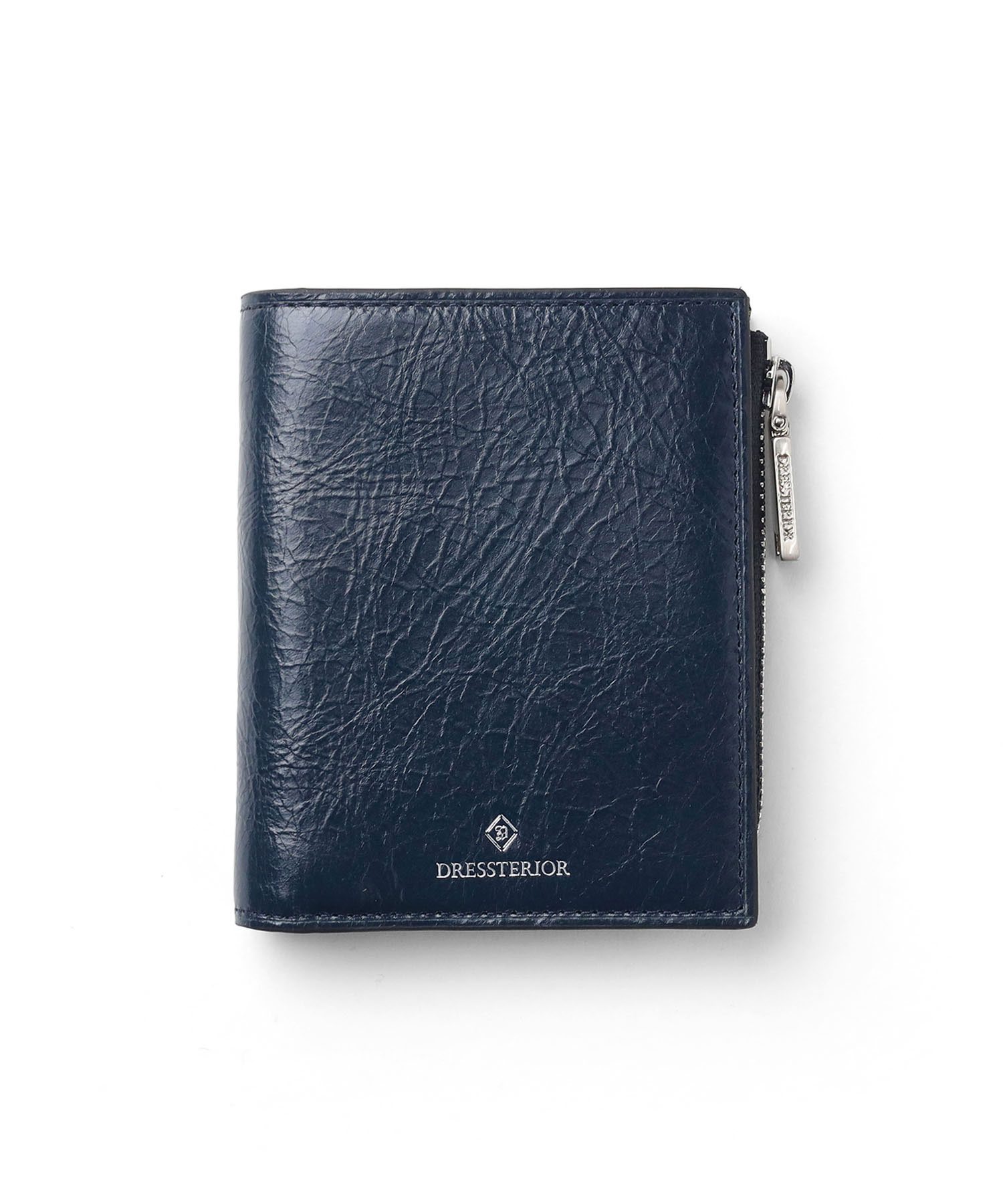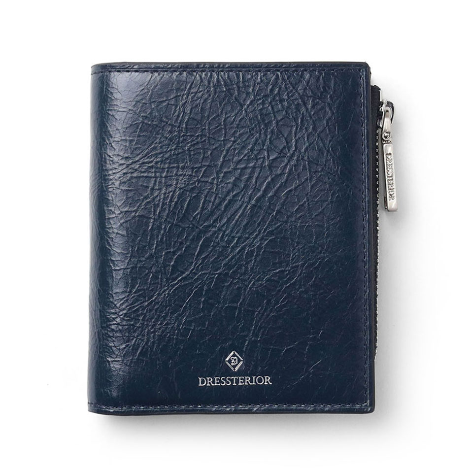 国産原皮にワックスを加えた特殊加工によって、大小ランダムなシワを際立たせているドレステリアのオリジナルリンクルレザーを使用した二つ折り財布です。コンパクトで堅苦しすぎないデザインのため、カジュアルに使用できます。