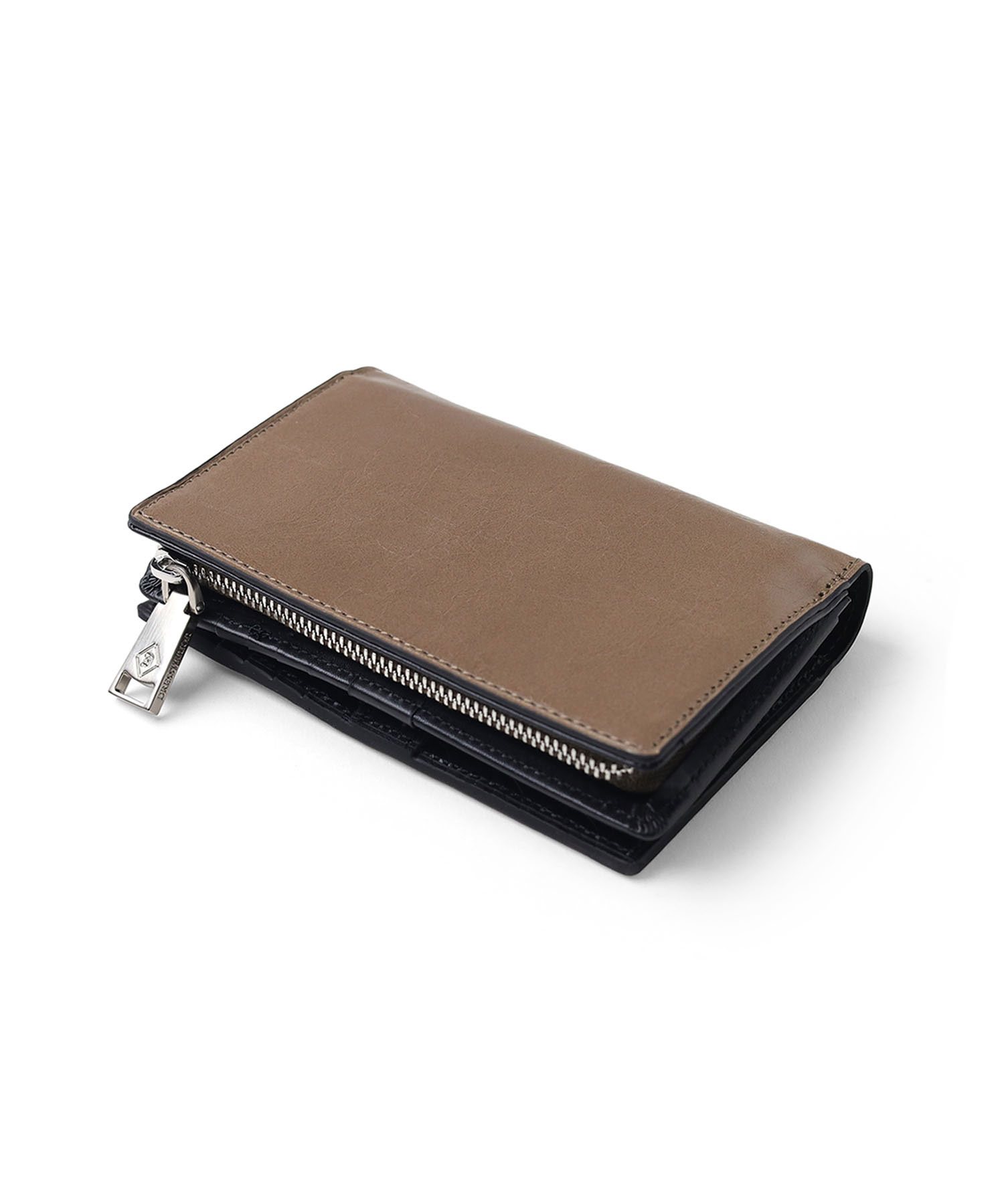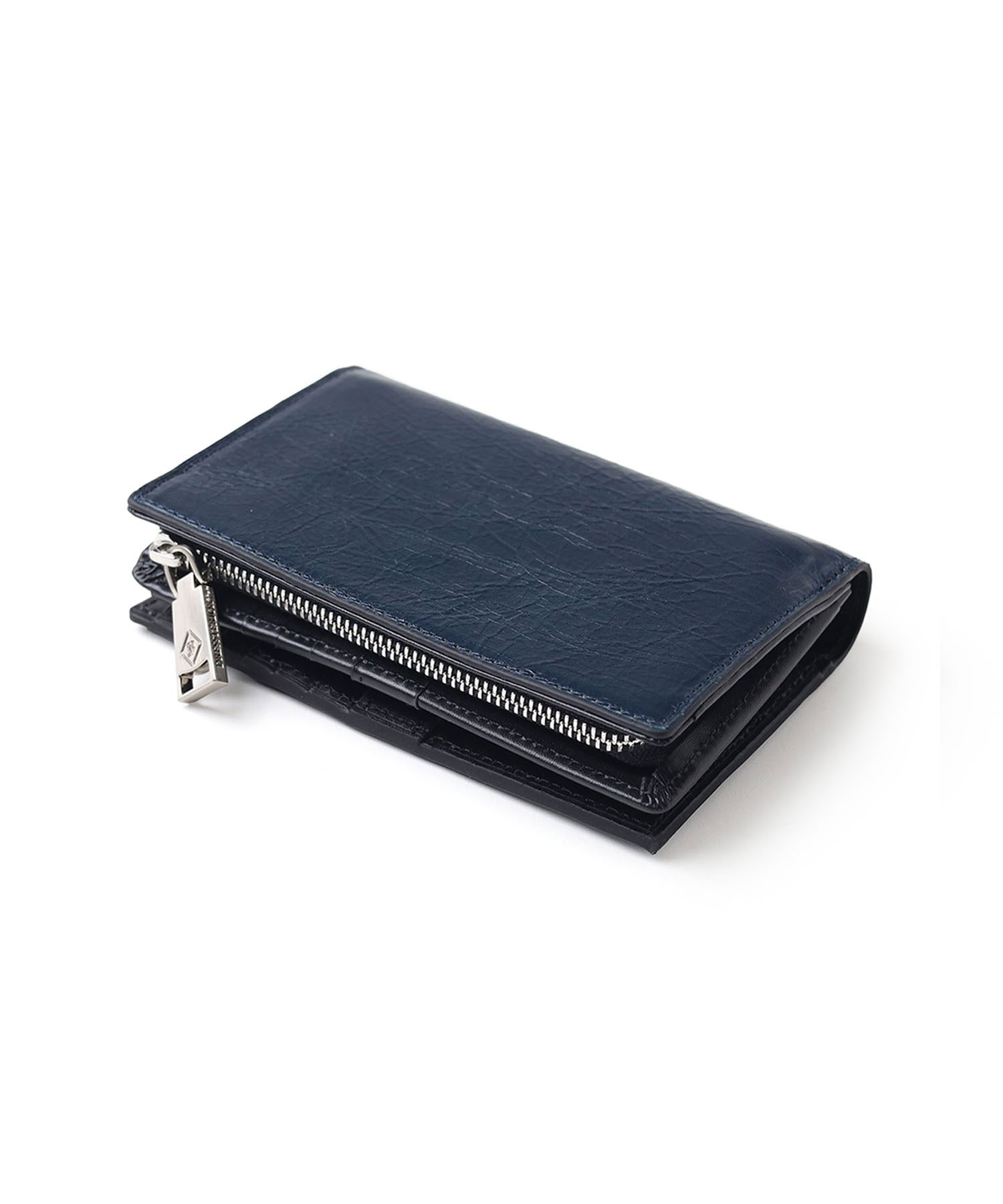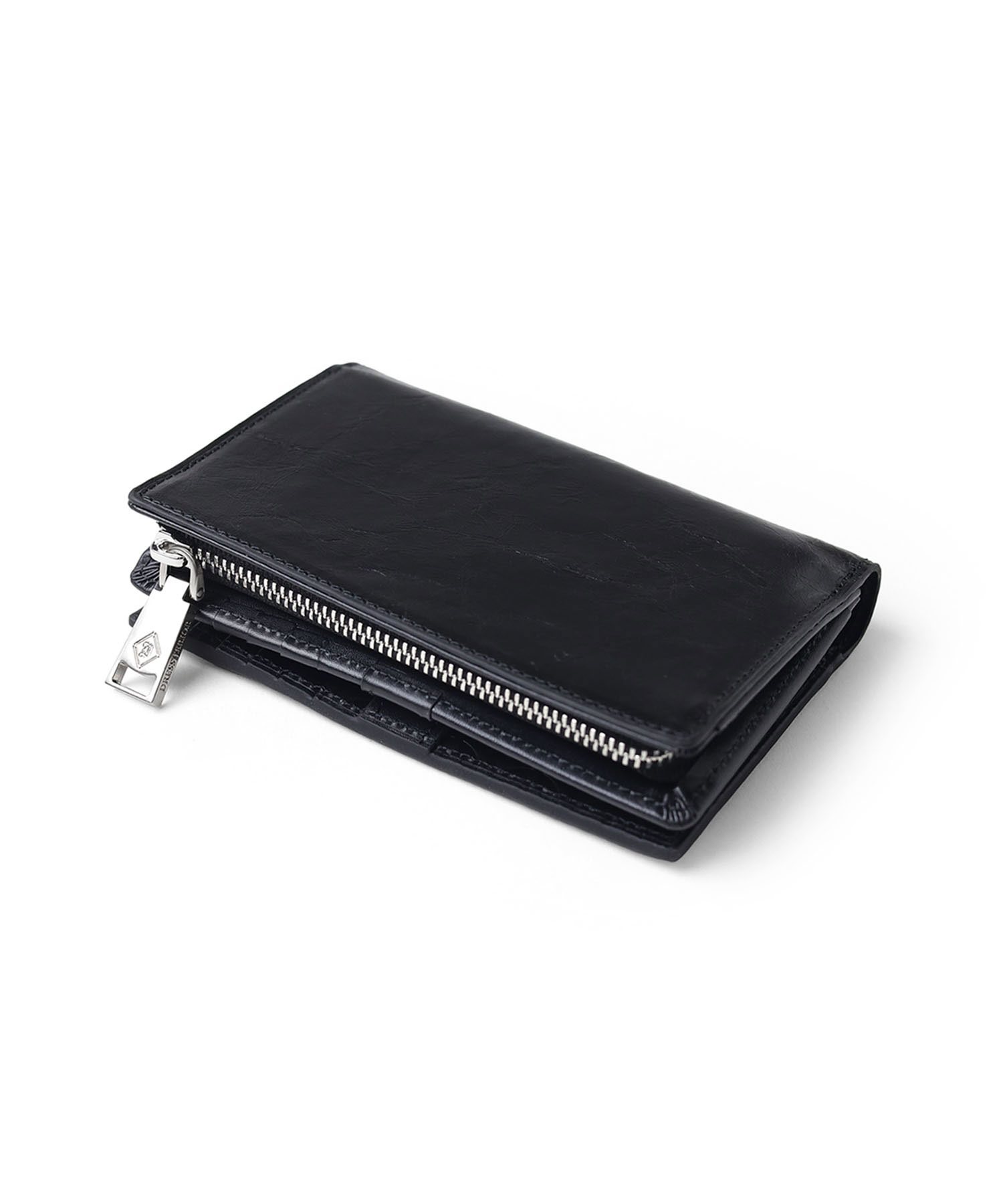 国産原皮にワックスを加えた特殊加工によって、大小ランダムなシワを際立たせているドレステリアのオリジナルリンクルレザーを使用したセミ長財布です。大きすぎないサイズ感で収納力があり、堅苦しすぎないデザインのため、カジュアルに使用できます。