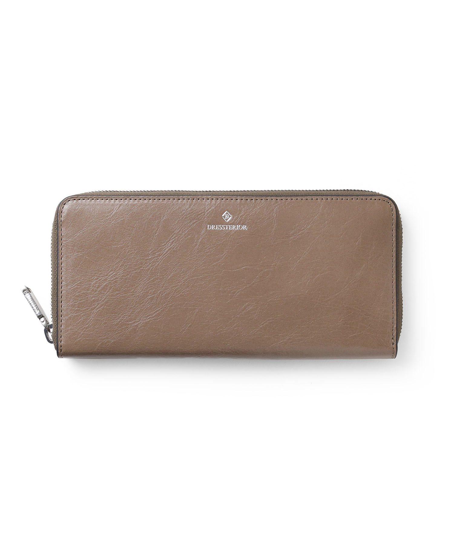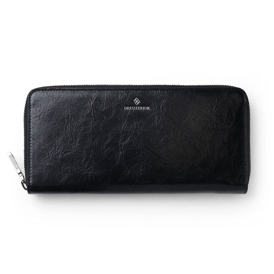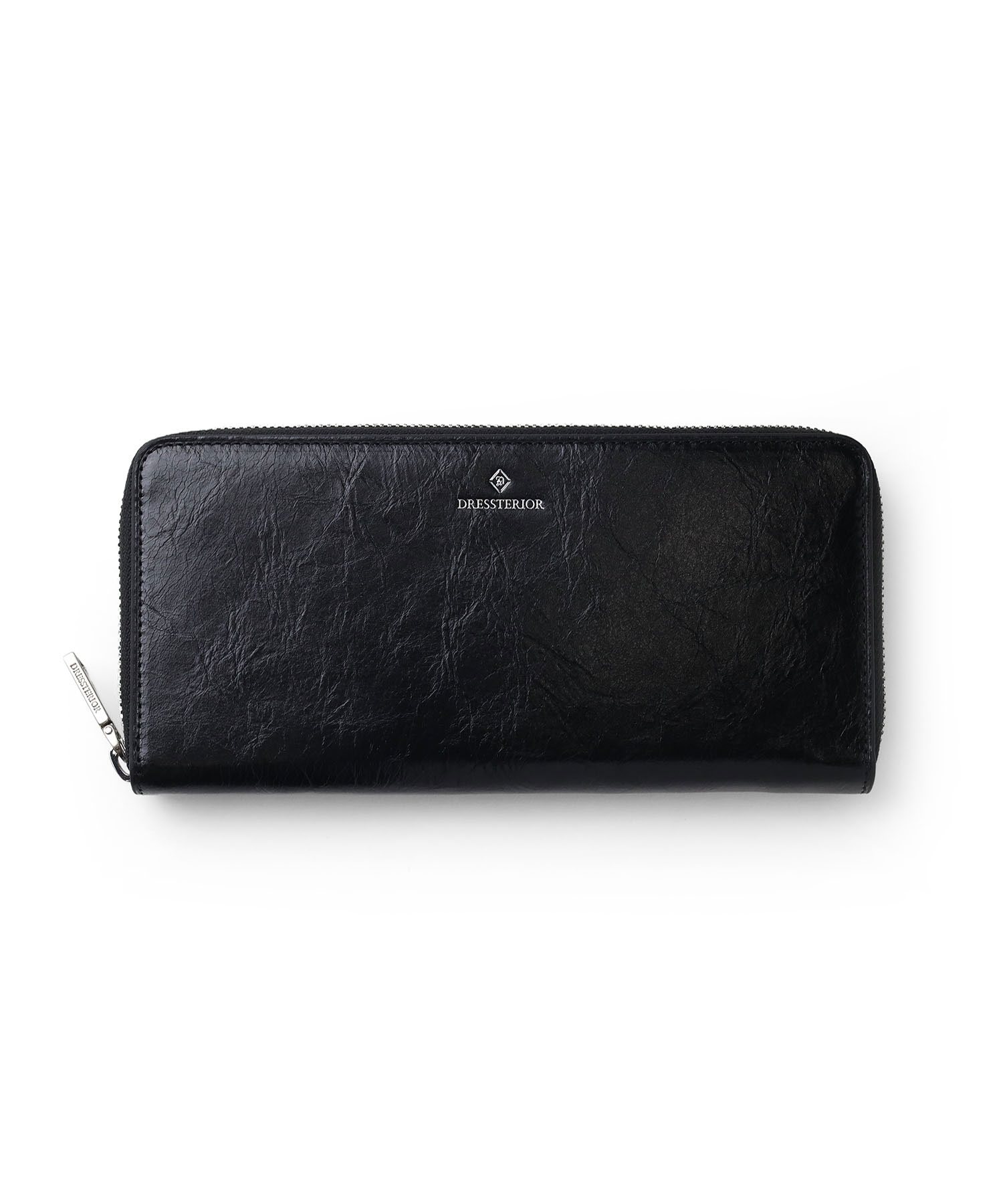 国産原皮にワックスを加えた特殊加工によって、大小ランダムなシワを際立たせているドレステリアのオリジナルリンクルレザーを使用したラウンドファスナー型長財布です。大容量かつ堅苦しすぎないデザインのため、カジュアルに使用できます。