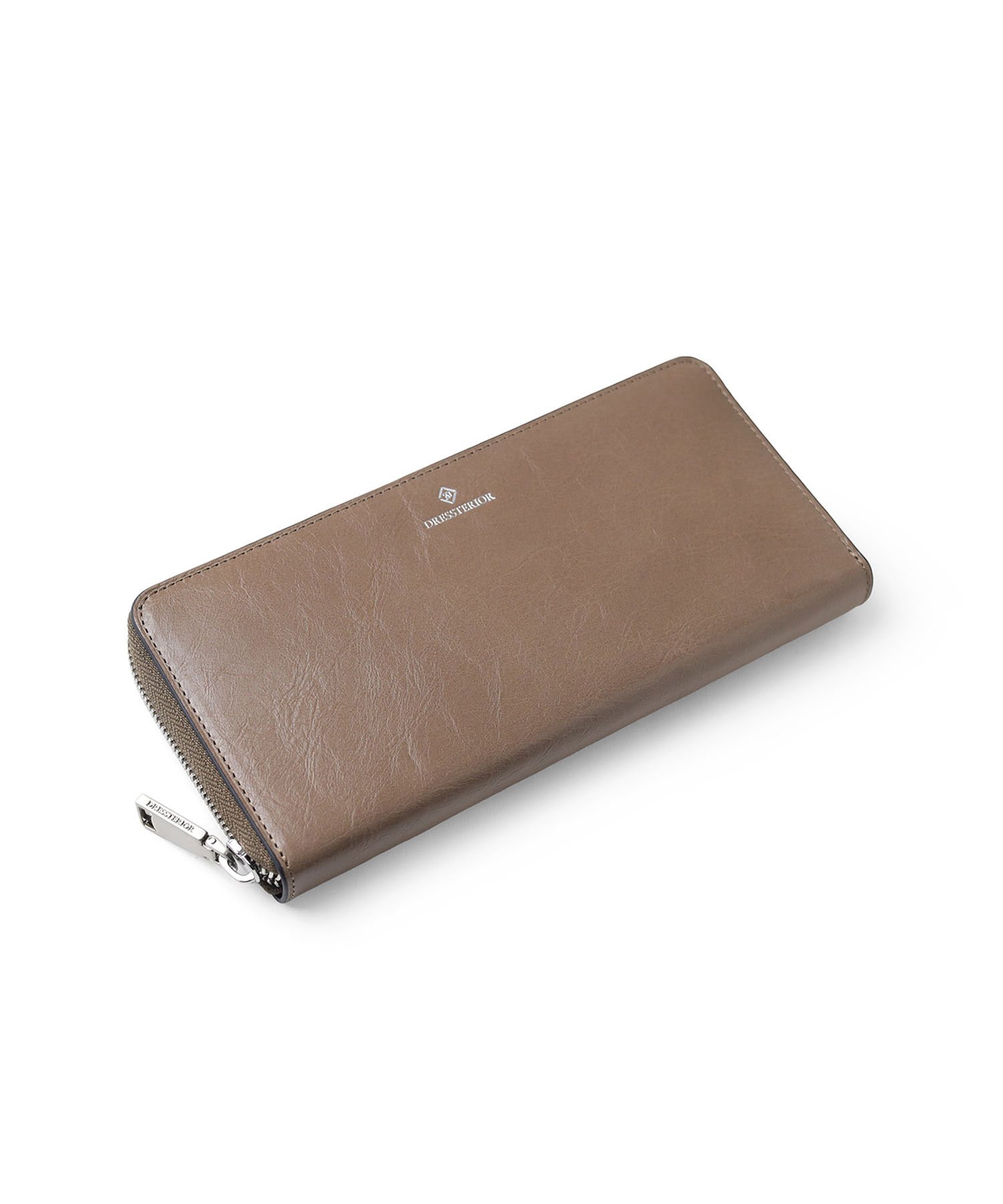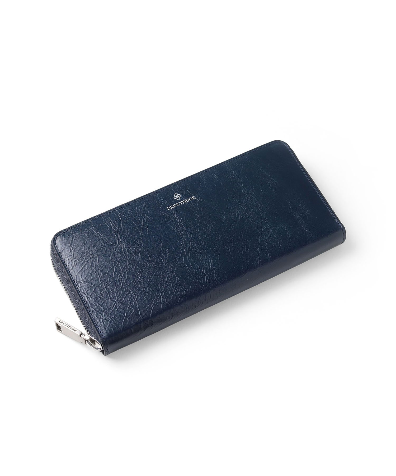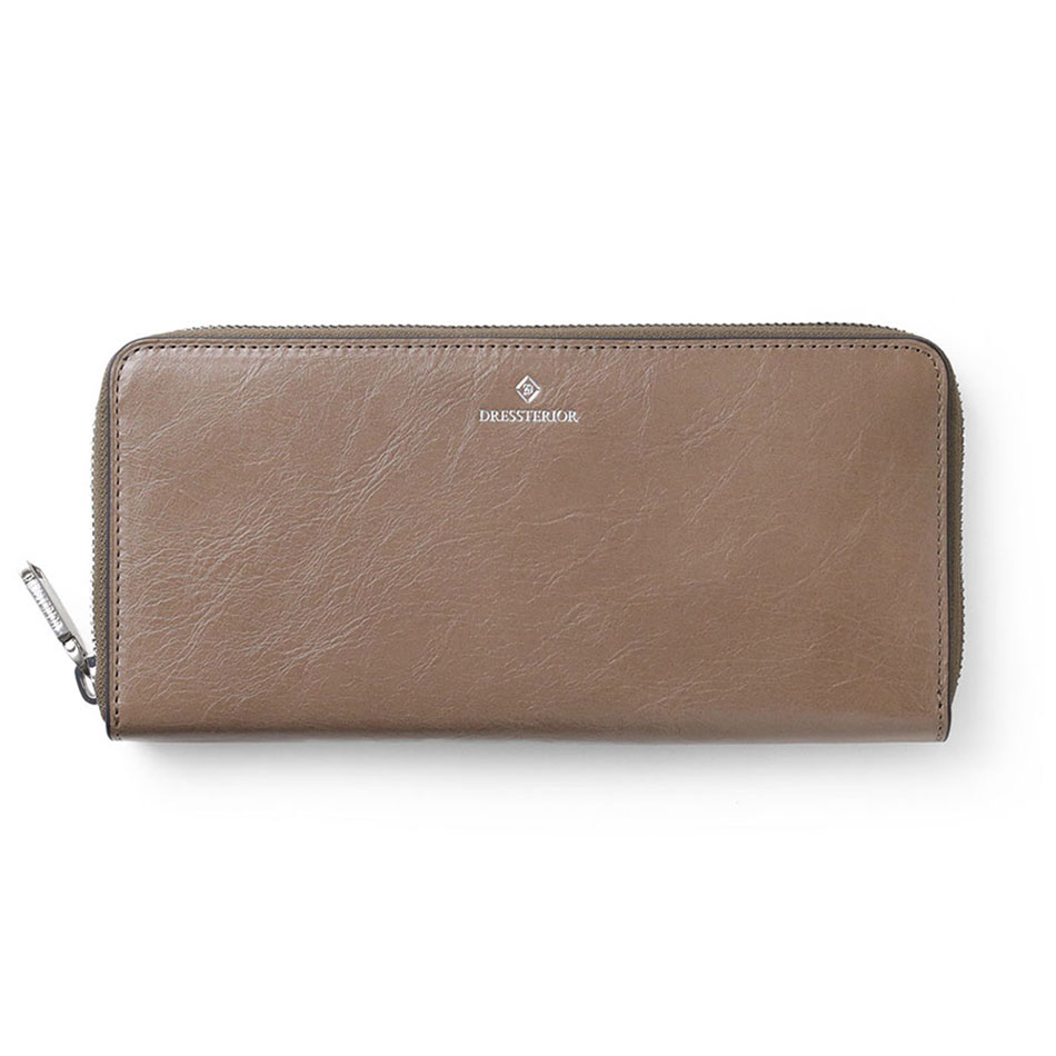 国産原皮にワックスを加えた特殊加工によって、大小ランダムなシワを際立たせているドレステリアのオリジナルリンクルレザーを使用したラウンドファスナー型長財布です。大容量かつ堅苦しすぎないデザインのため、カジュアルに使用できます。
