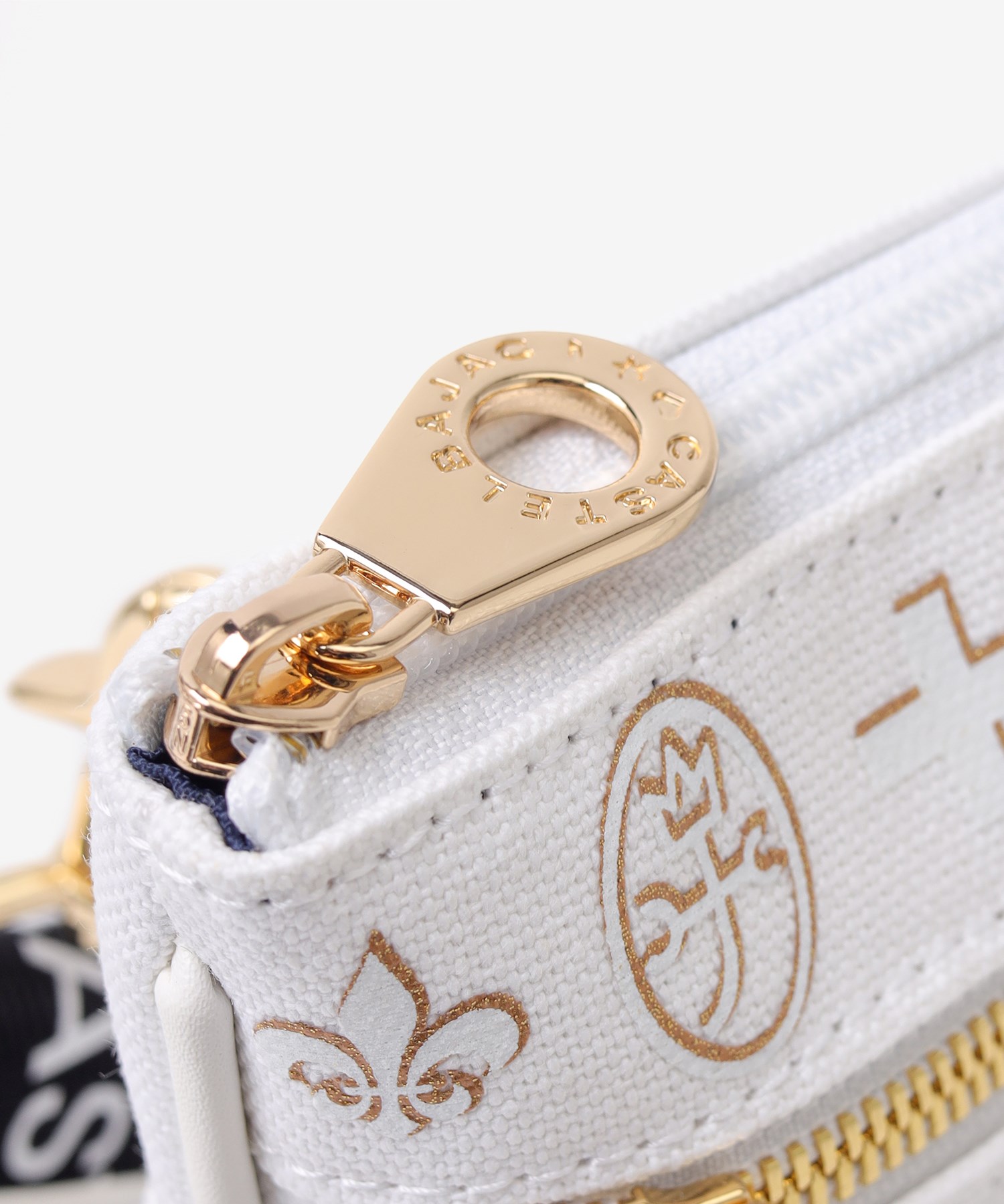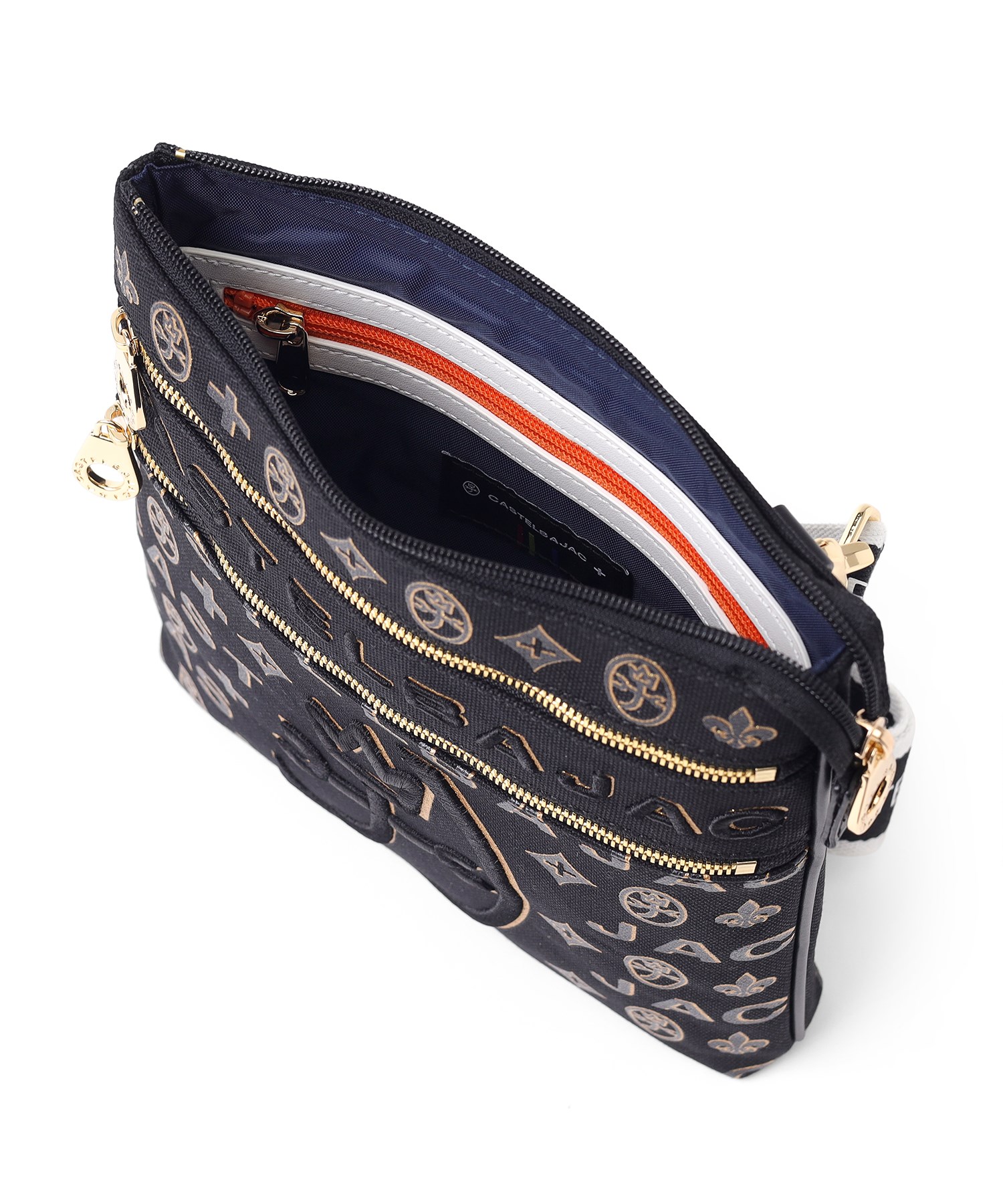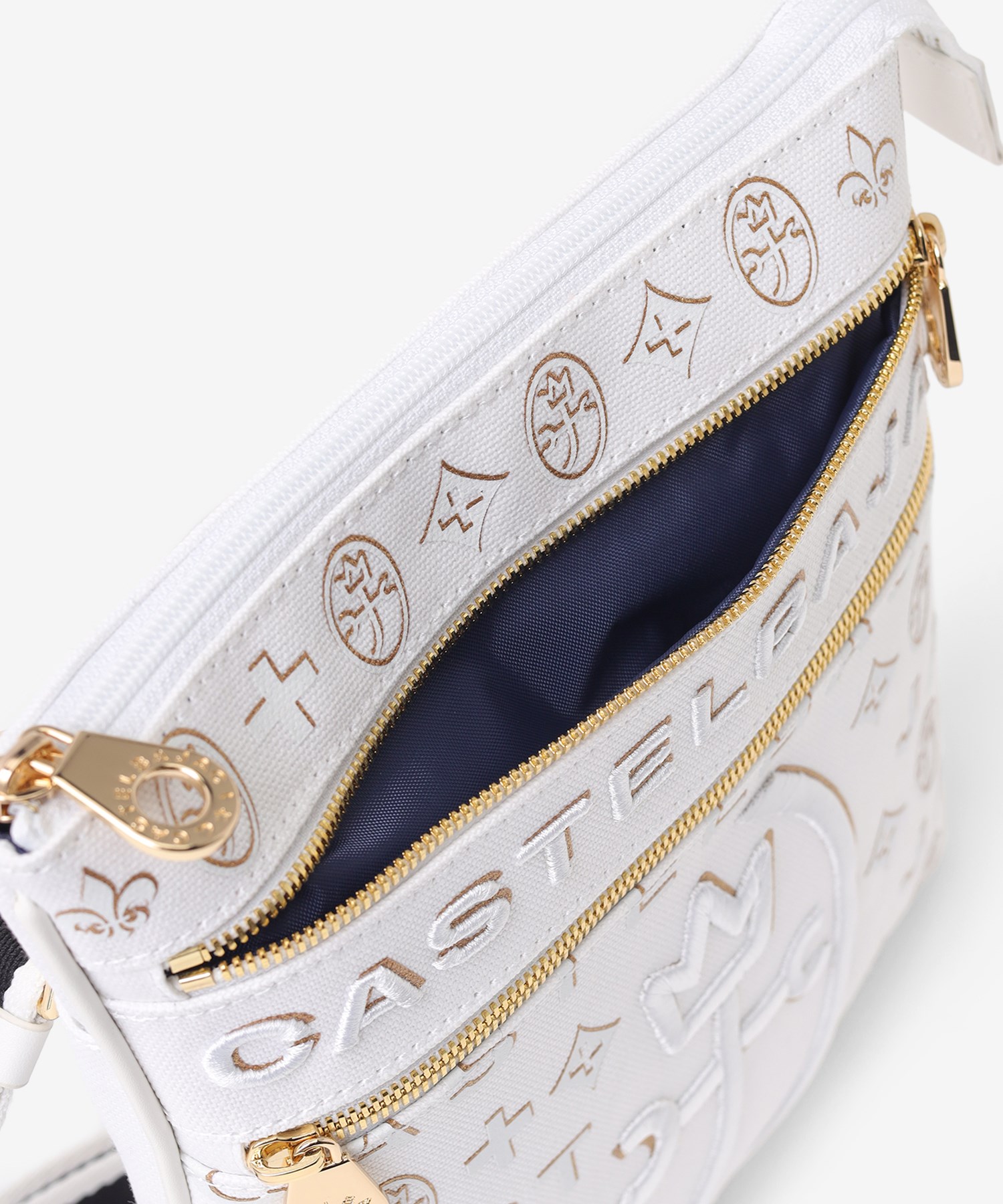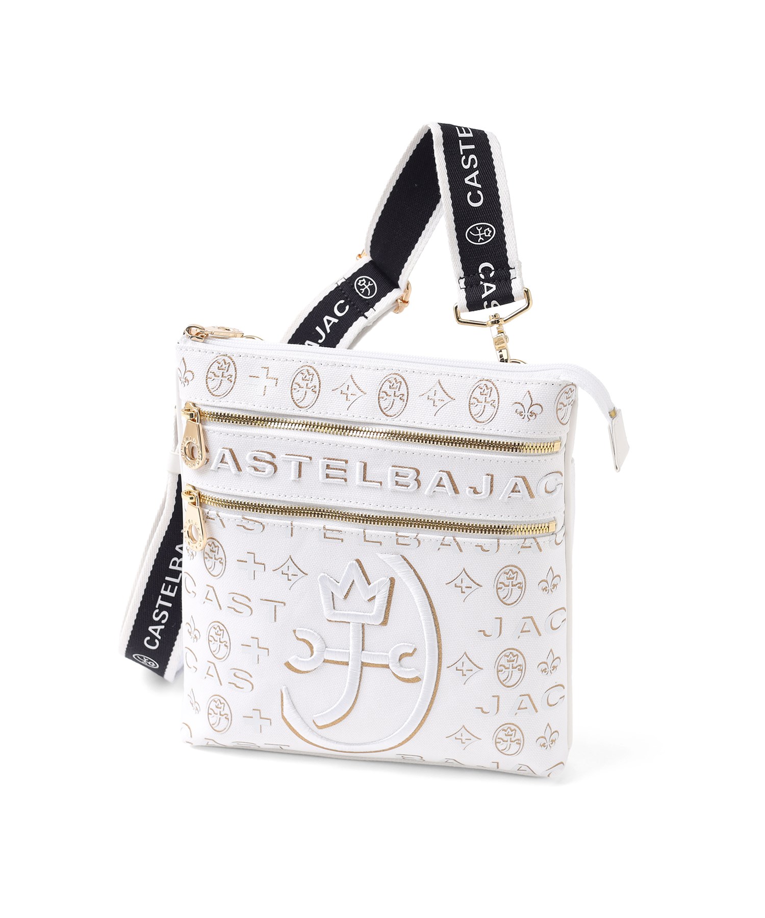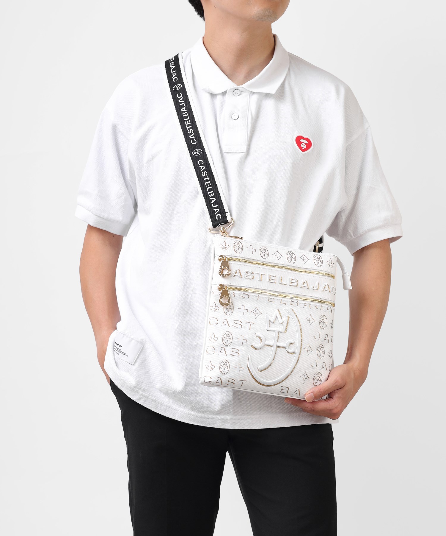 まるでゴールドの星屑が散りばめられたような、華やかなデザインのCASTELBAJACの薄マチショルダーバッグ。華やかな印象のシロに、強いインパクトを与えるクロの2色展開で、どちらの色もシャイニーで煌びやかさを演出してくれます。