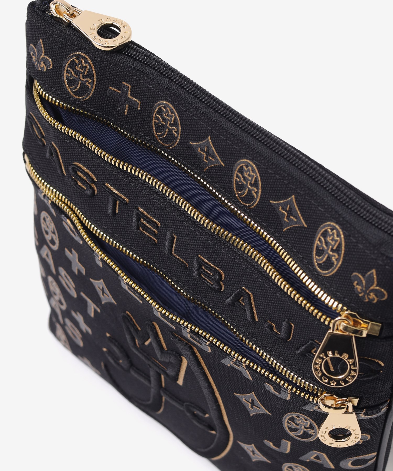 まるでゴールドの星屑が散りばめられたような、華やかなデザインのカステルバジャックの薄マチショルダーバッグ。華やかな印象のシロに、強いインパクトを与えるクロの2色展開で、どちらの色もシャイニーで煌びやかさを演出してくれます。