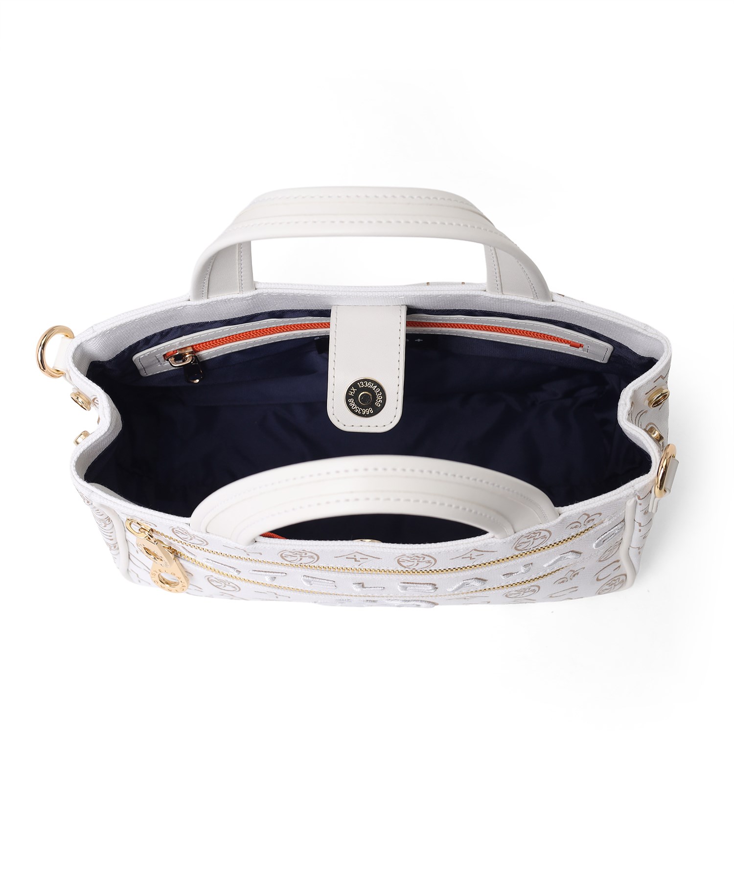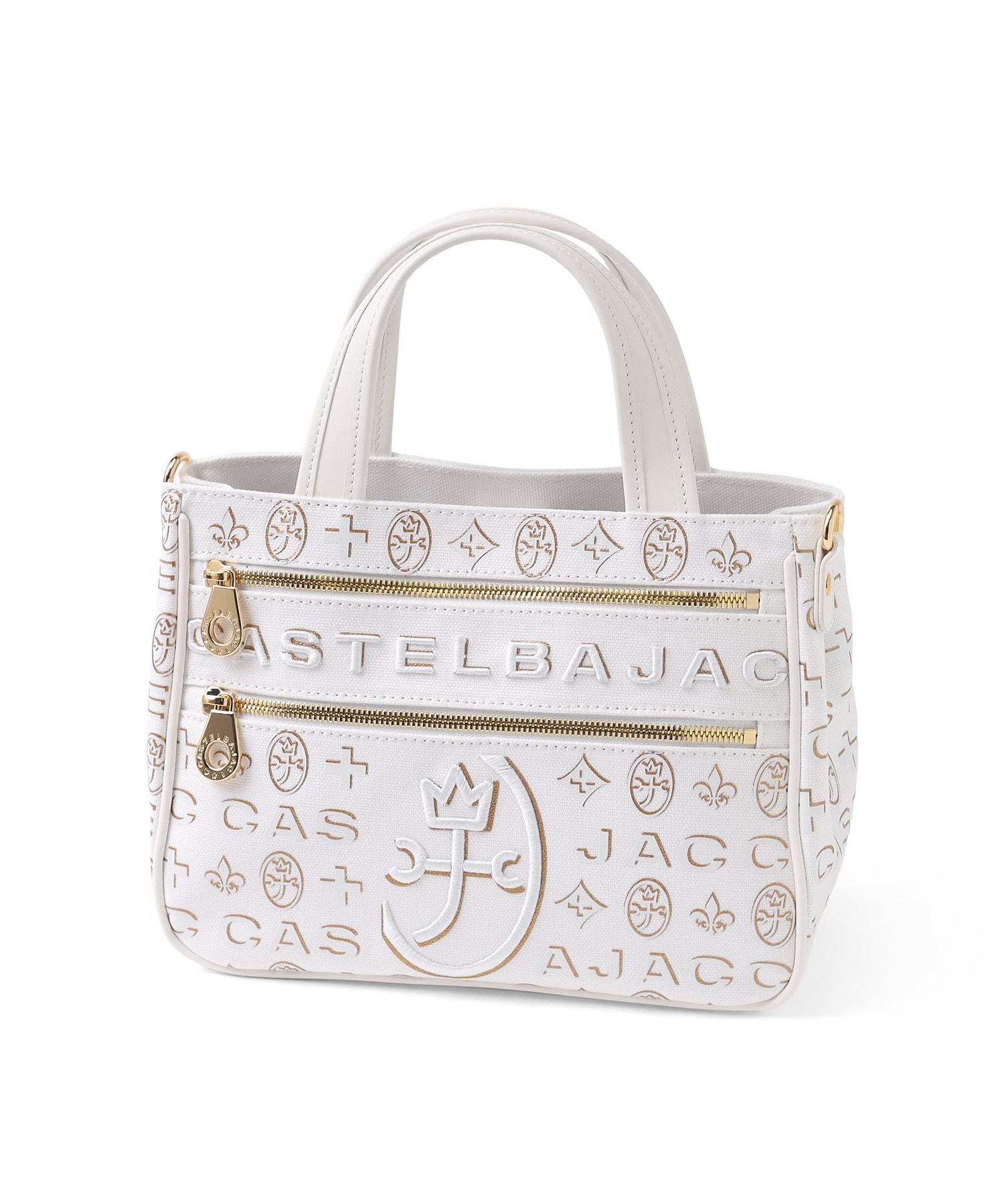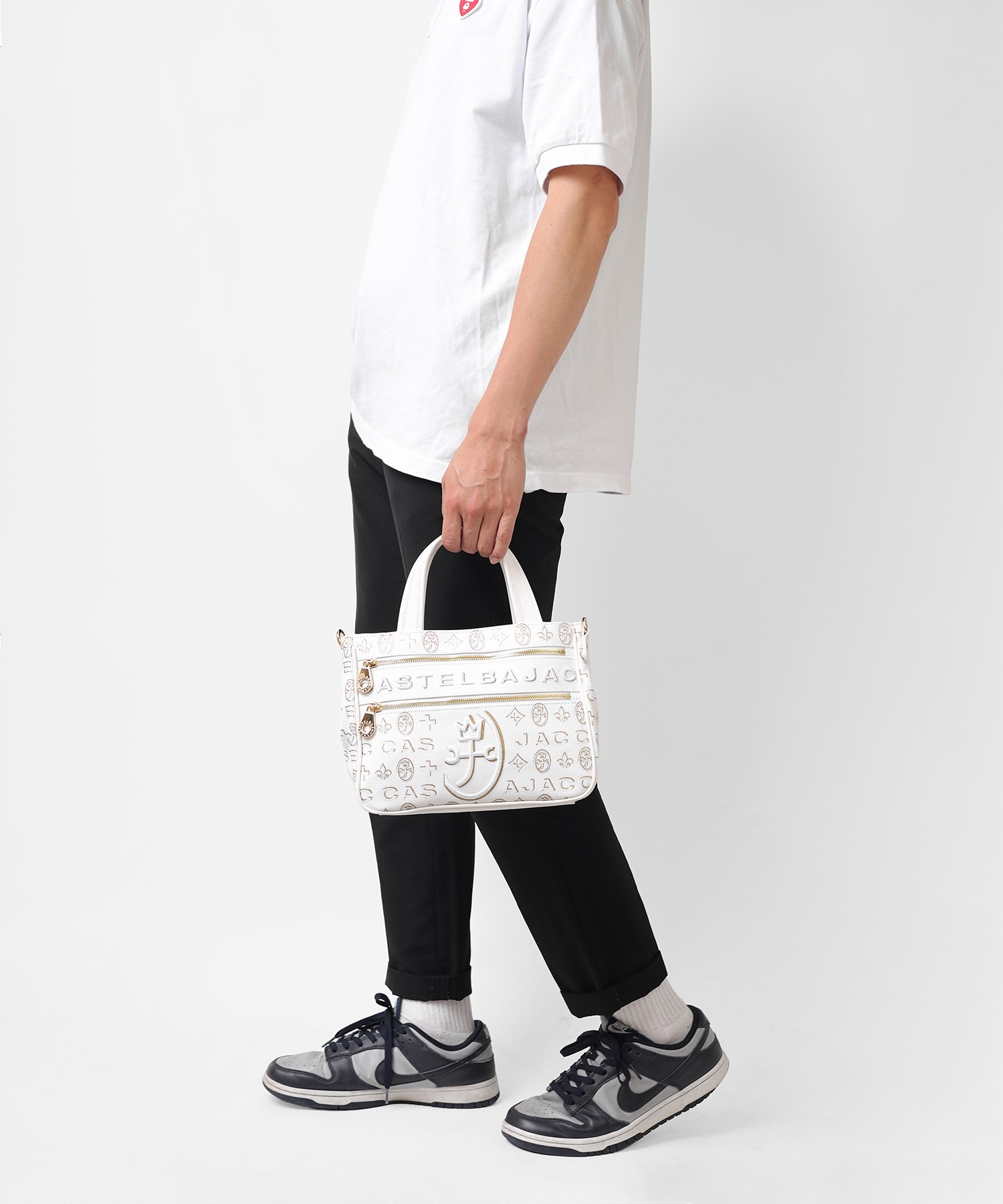 まるでゴールドの星屑が散りばめられたような、華やかなデザインのカステルバジャックのミニトートバッグ。華やかな印象のシロに、強いインパクトを与えるクロの2色展開で、どちらの色もシャイニーで煌びやかさを演出してくれます。