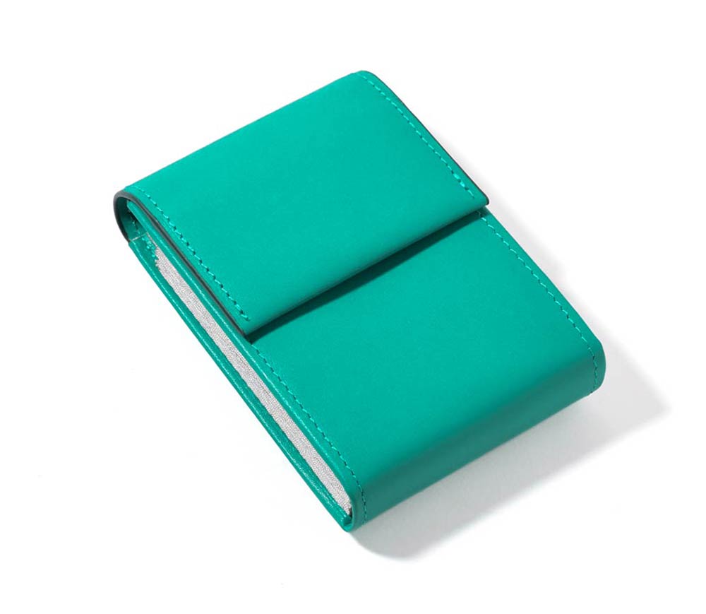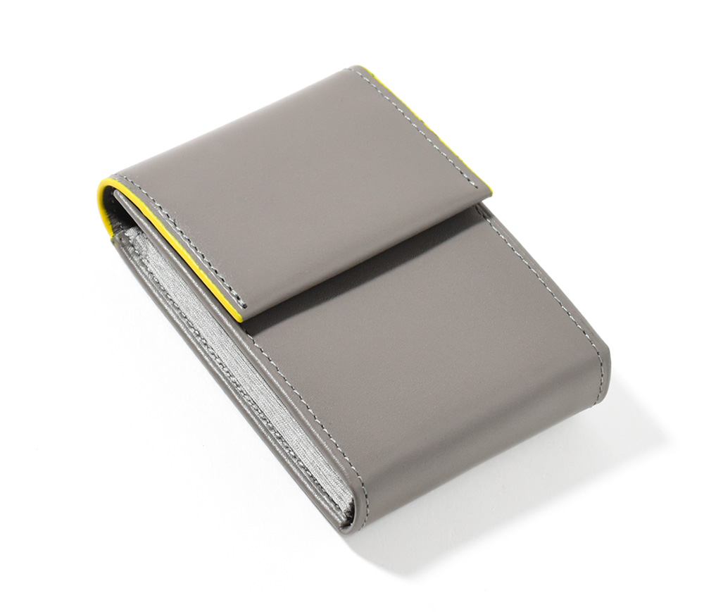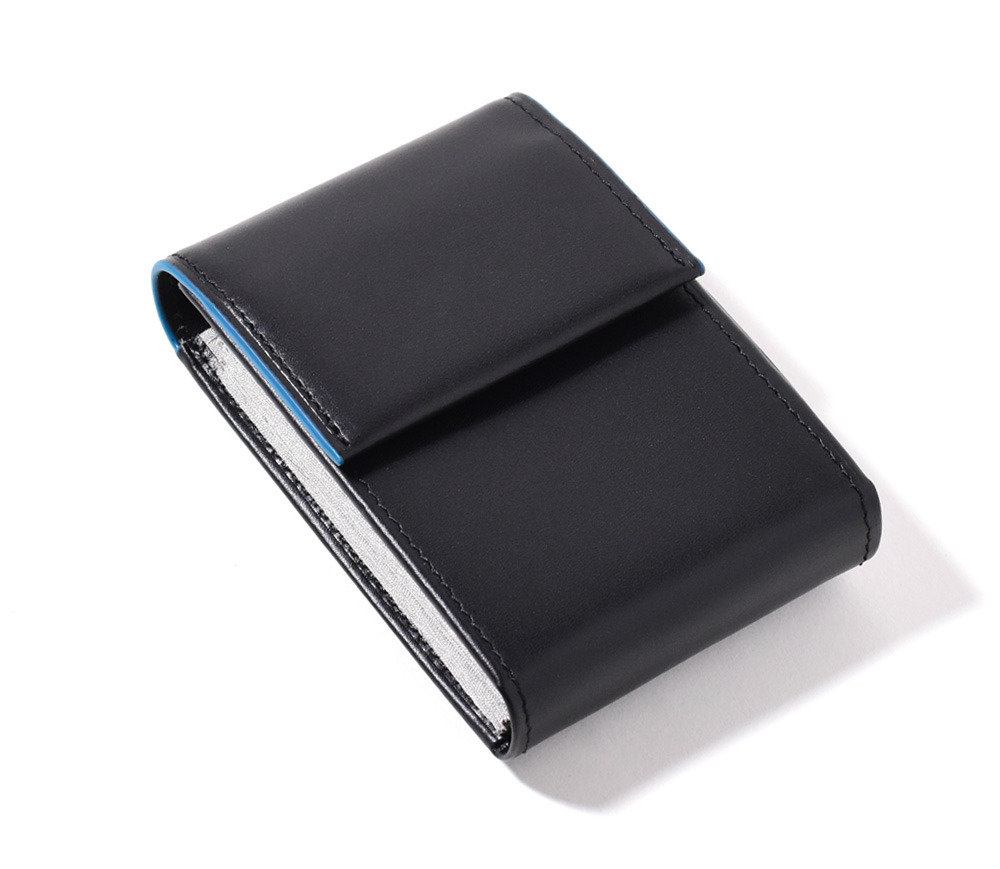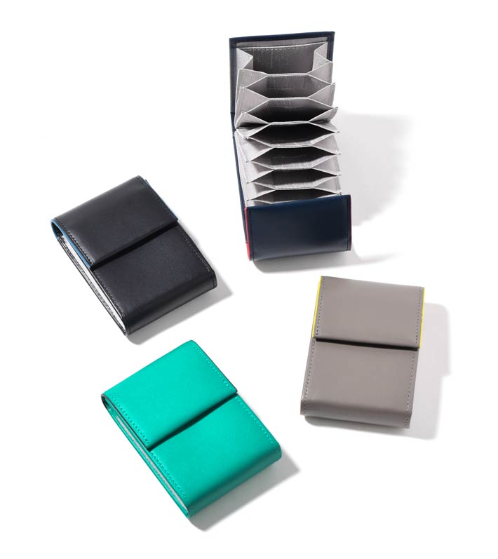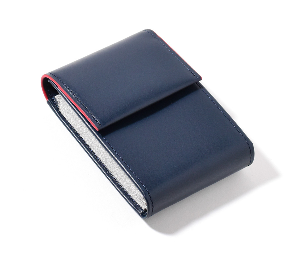 キャッシュレス派から現金派まで多様に使えるカードケース。多くのカードの収納を可能にし、更には折りたたんだお札がジャストサイズに入るよう設計しました。小銭を入れてもこぼれないようフラップタイプのデザインに仕上げています。普段キャッシュレス派でも、少し現金を持ち歩く際にもう1つ小さい財布を用意するのは面倒…。そんな声を参考に、「小さいのに全て1つにまとめれる」そんな財布を作りました。