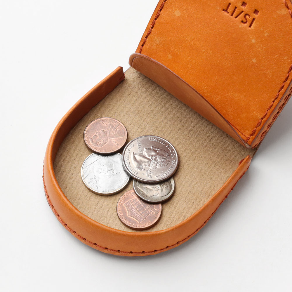 天然皮革ならではのナチュラルな風合いが特徴のイズイットの小銭入れ。馬蹄型ならではの大きく開く構造で、中身がひと目で確認できます。