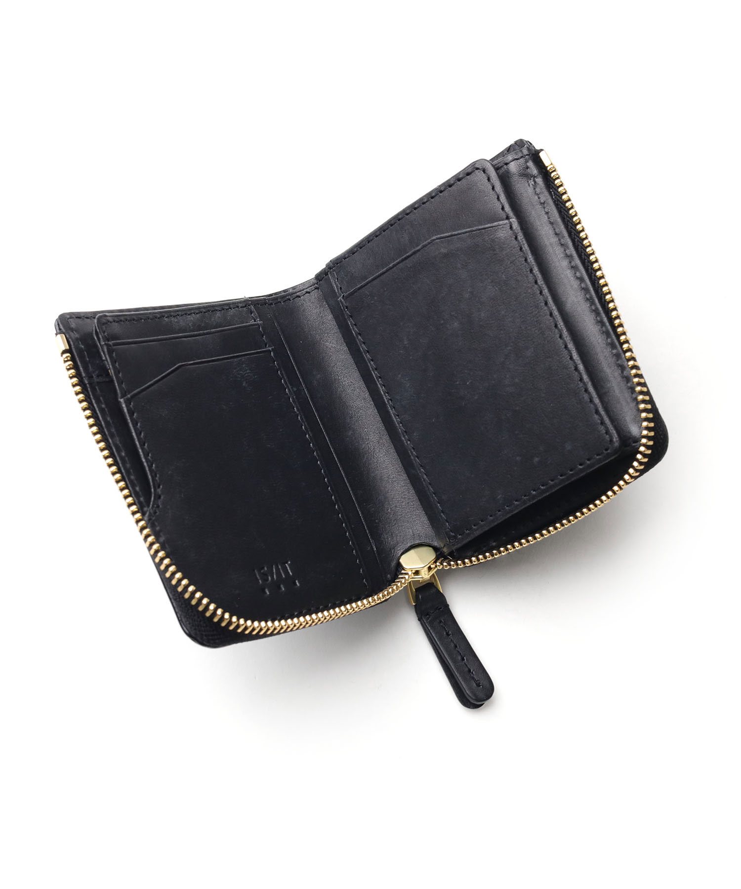 天然皮革ならではのナチュラルな風合いが特徴のイズイットのL字ファスナー型の二つ折り財布。革本来の風合いを活かすため、必要以上の加工は施さず仕上げており、色ムラやシワなど一点一点異なる表情を持つのもこの二つ折り財布の魅力です。