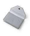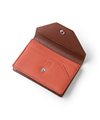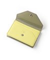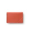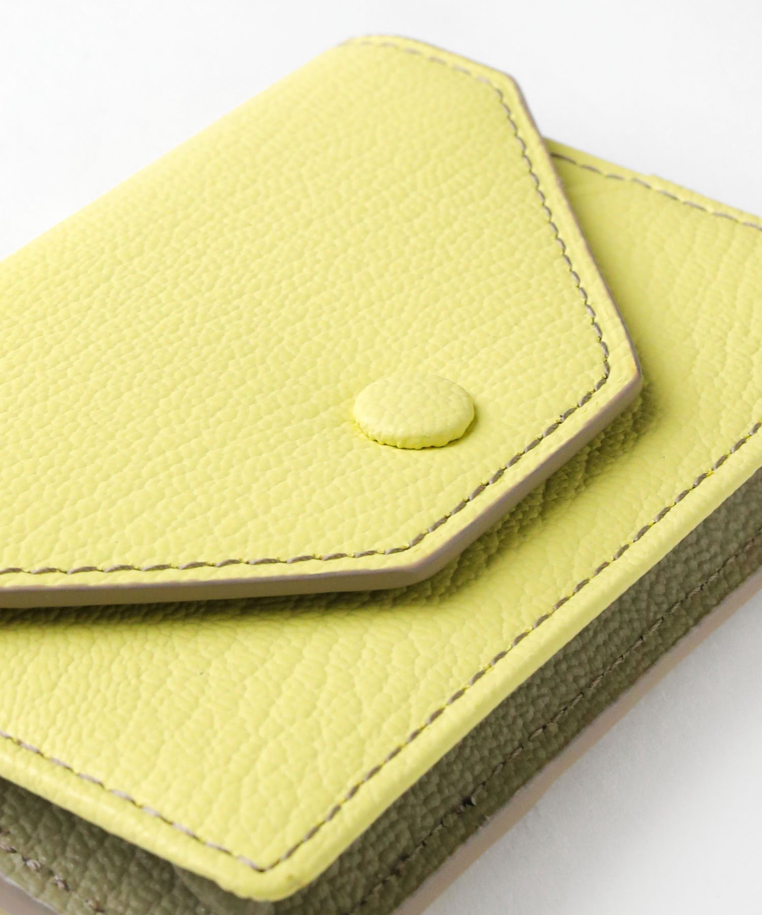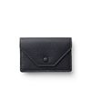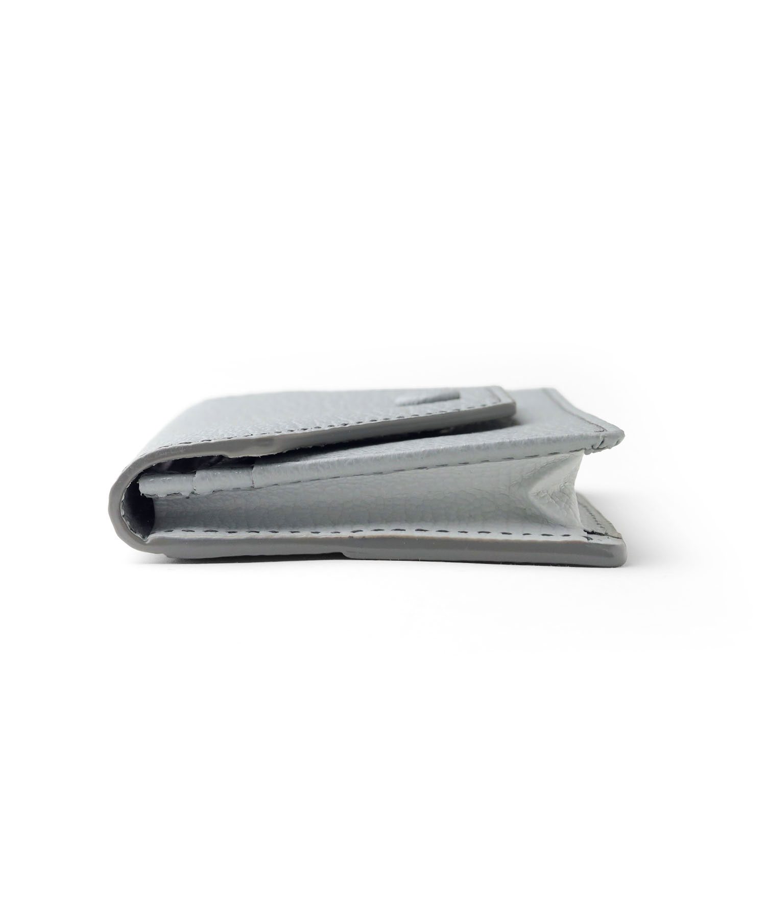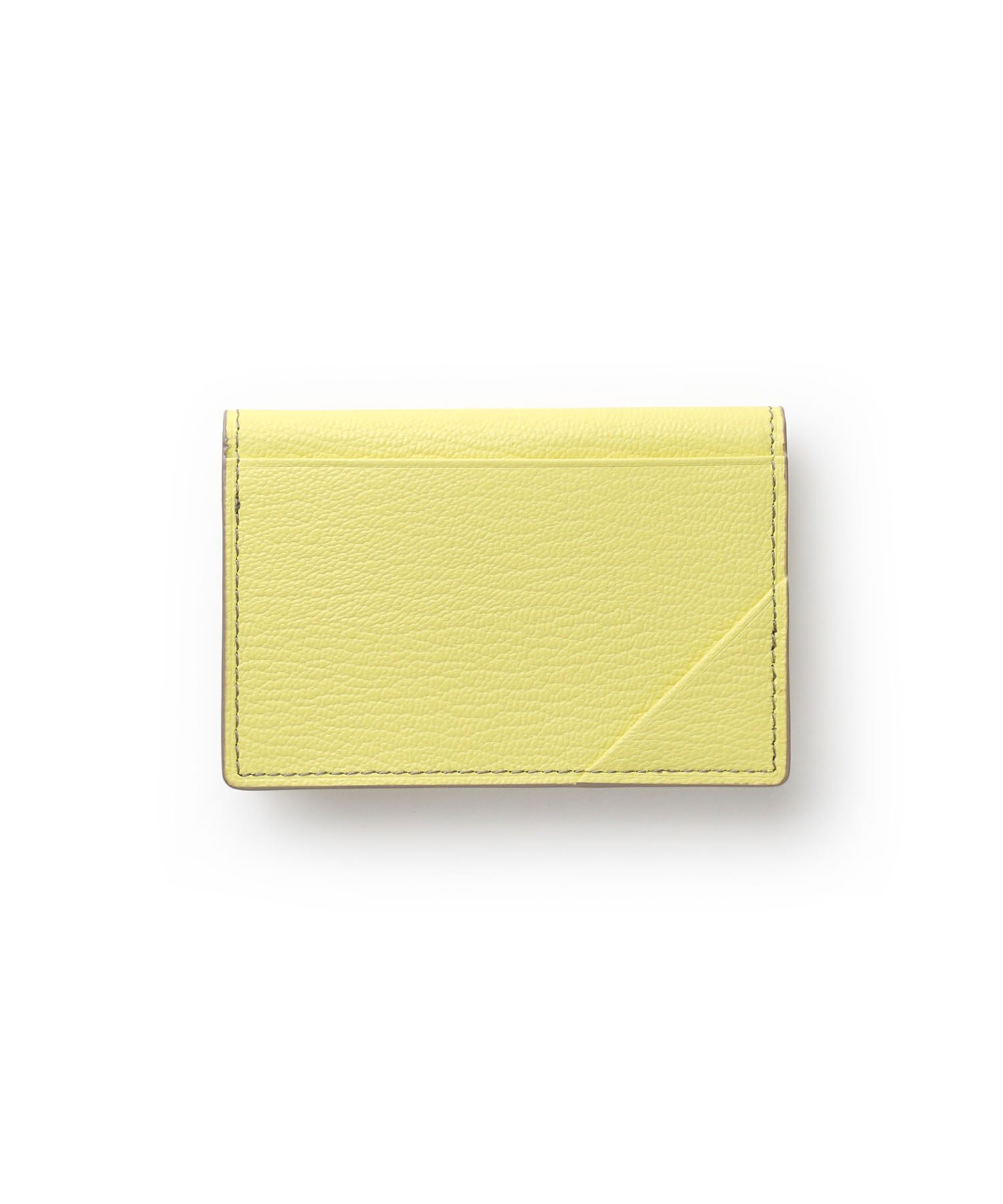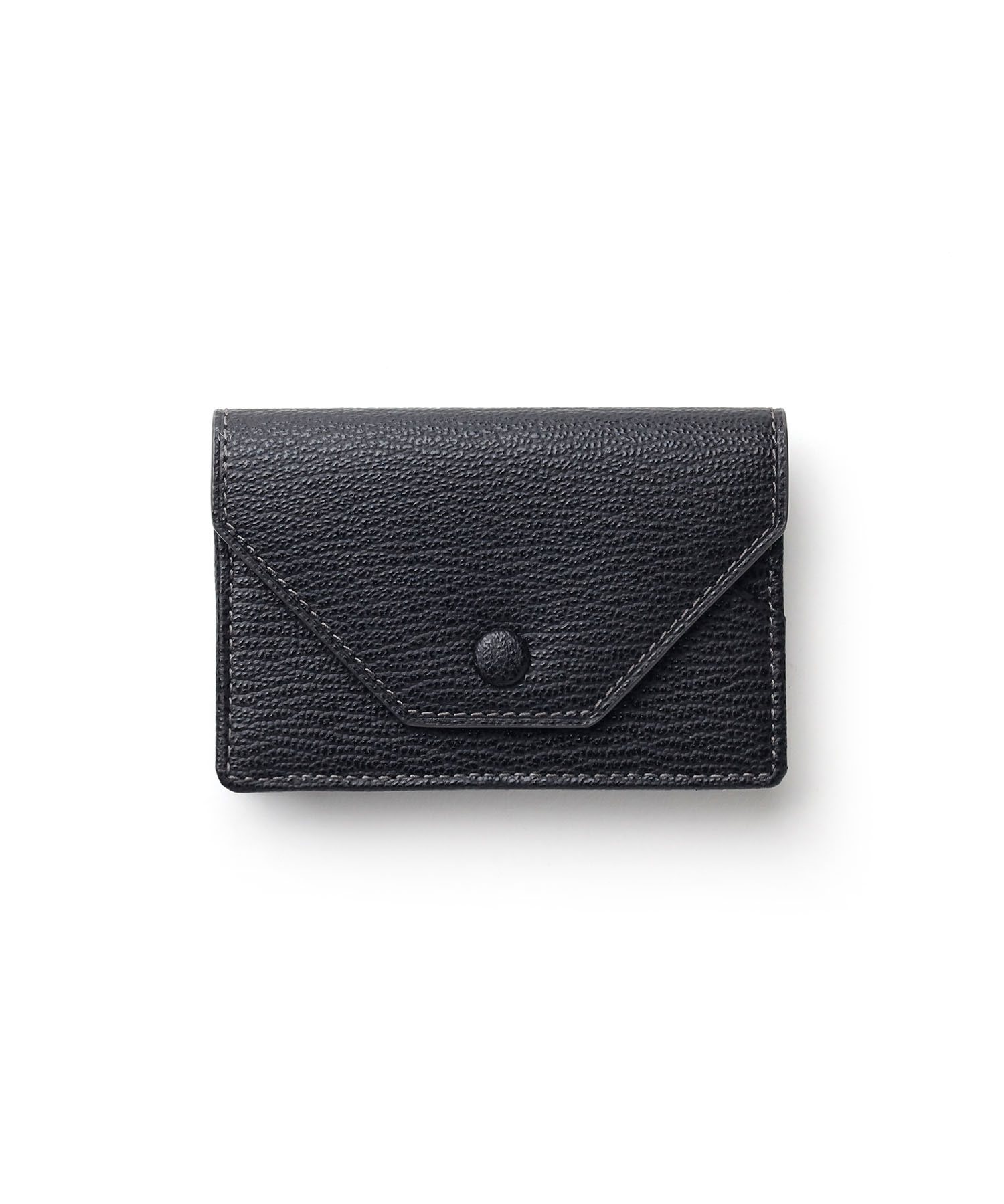 ゴートエンボス加工を施した牛革を使用した、洗練されたデザインの名刺入れ。繊細なニュアンスカラーと内外で異なるカラーコンビネーションが魅力です。男女問わず使いやすいカラーバリエーションで、ホック部分をレザーで包み込んだ「包みホック」がポイントとなっています。