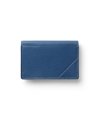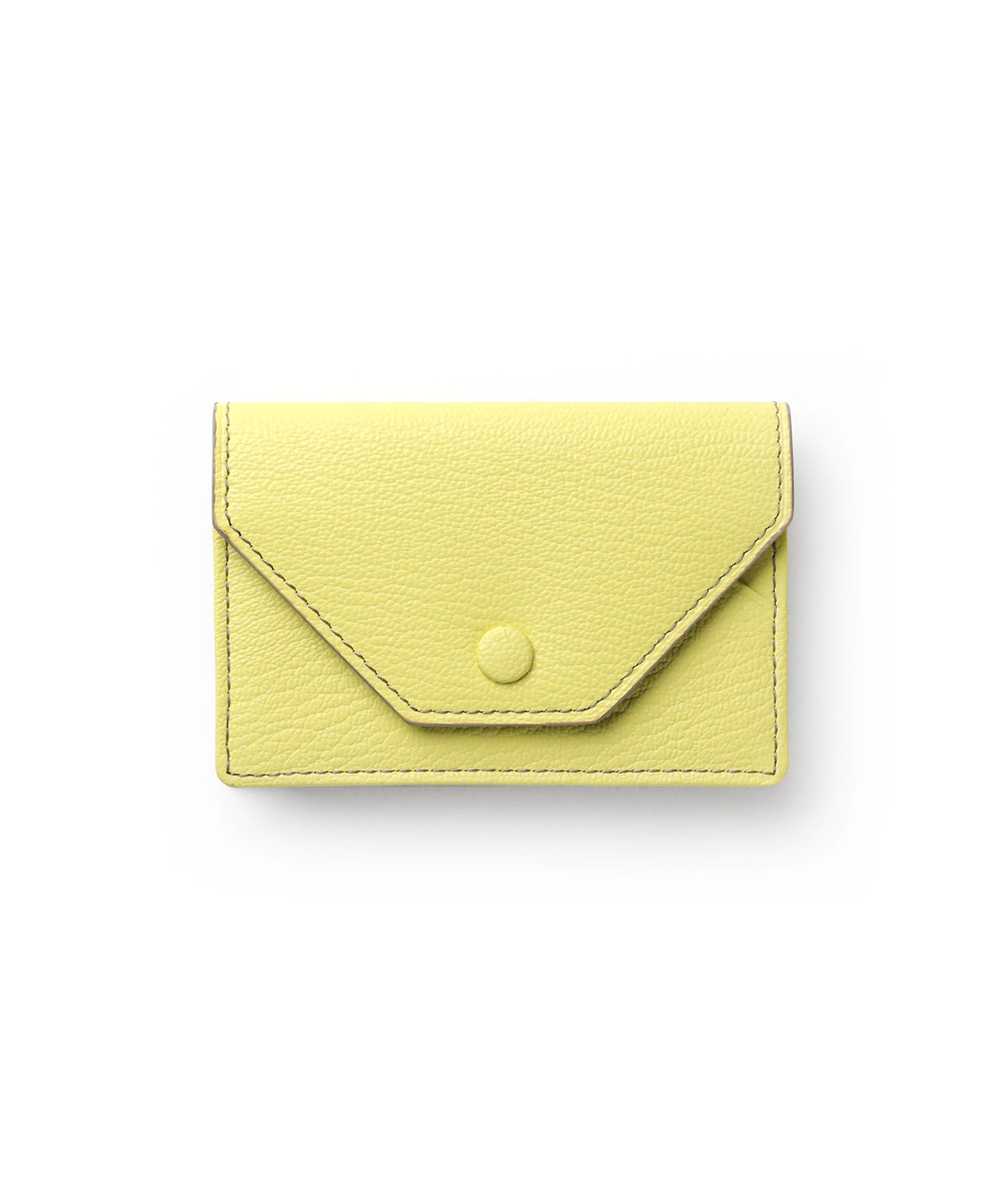 上質なゴートエンボスレザーを使用した、洗練されたデザインの名刺入れ。繊細なニュアンスカラーと内外で異なるカラーコンビネーションが魅力です。男女問わず使いやすいカラーバリエーションで、ホック部分をレザーで包み込んだ「包みホック」がポイントとなっています。