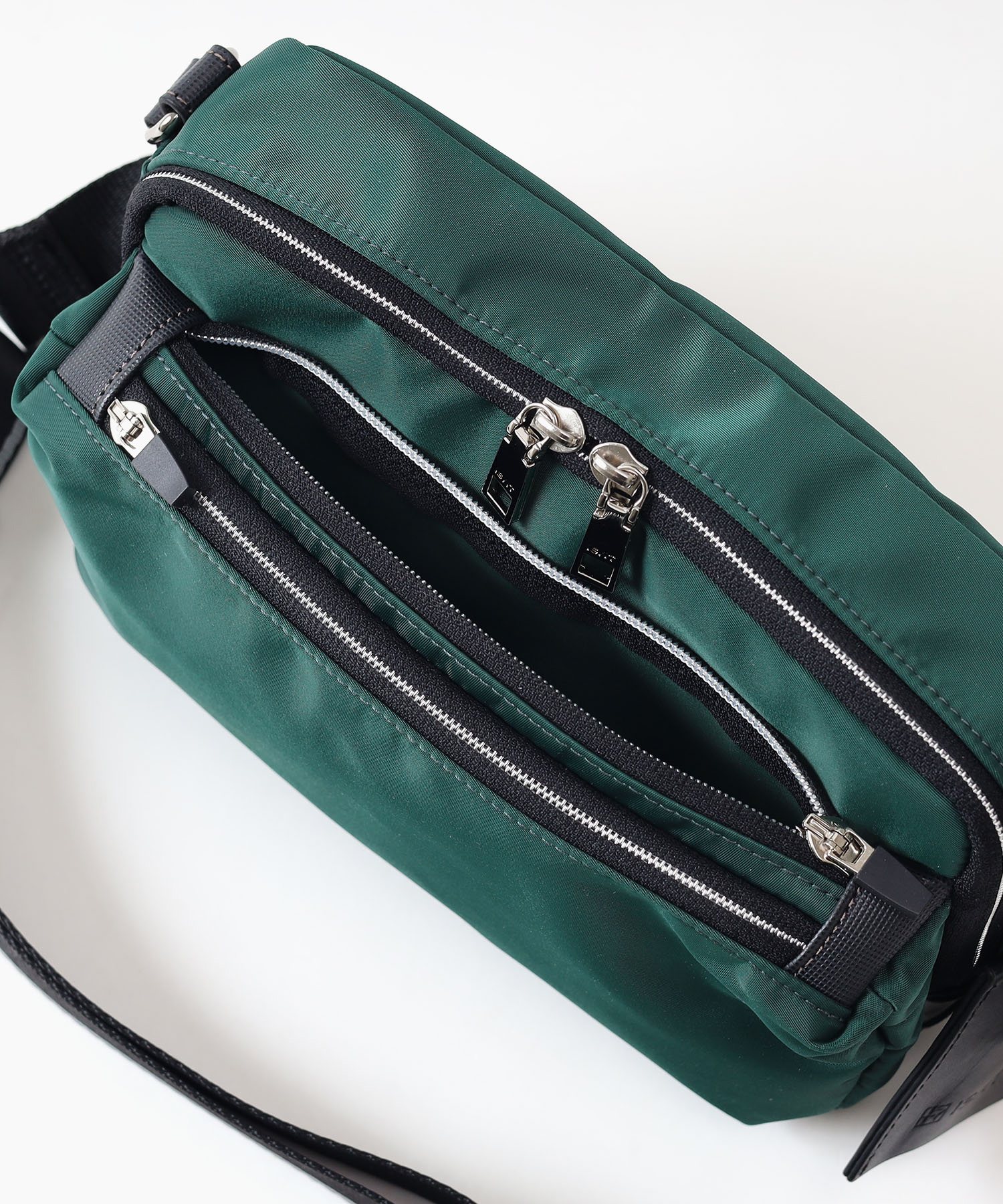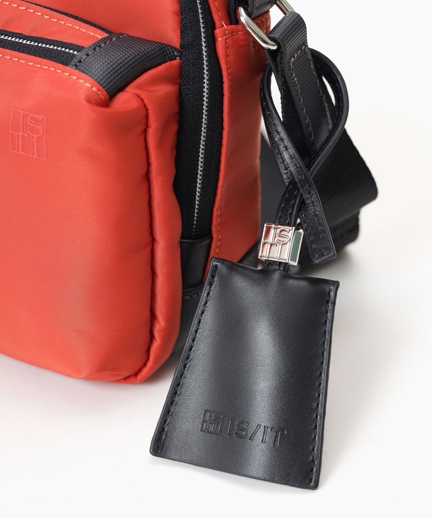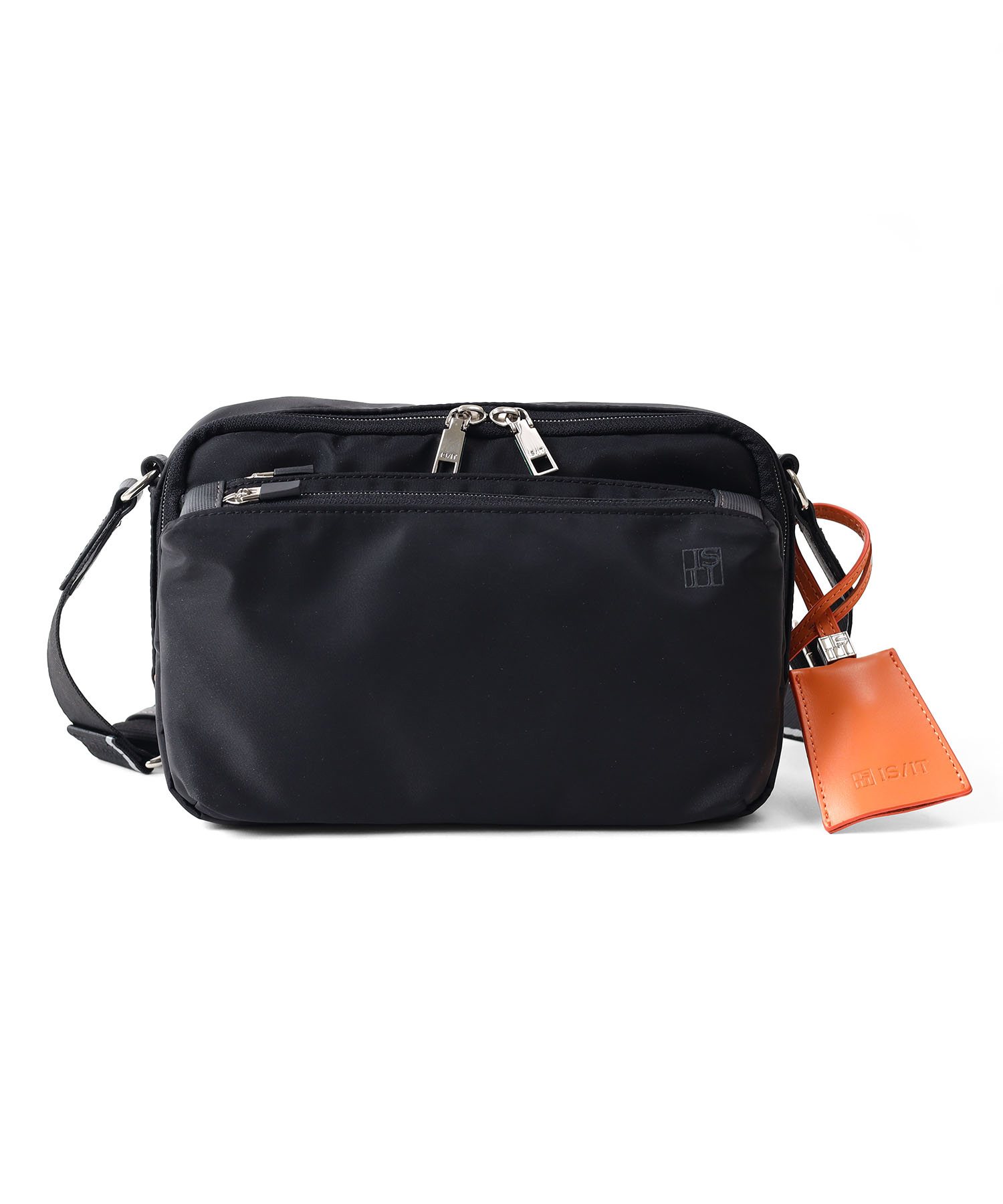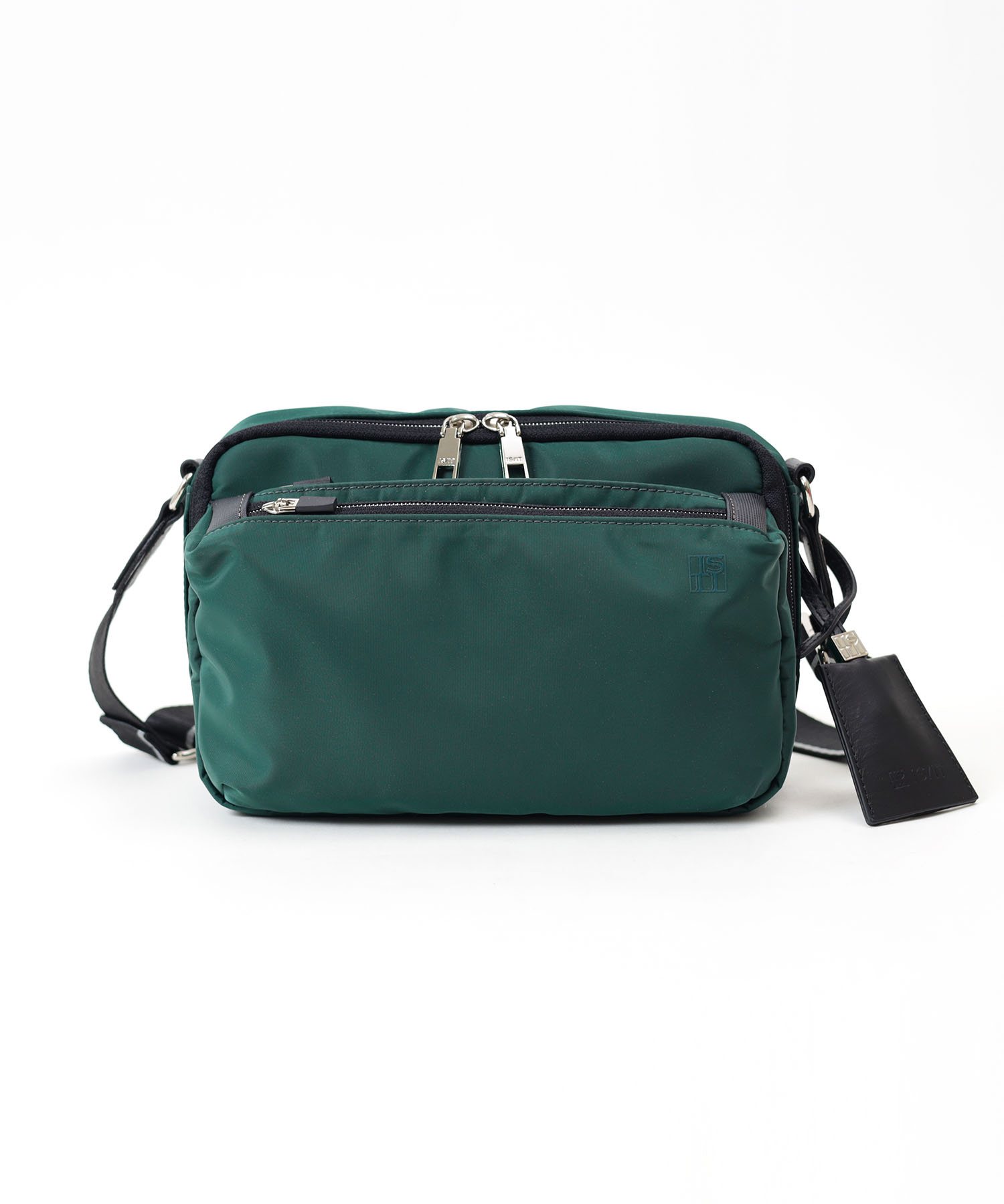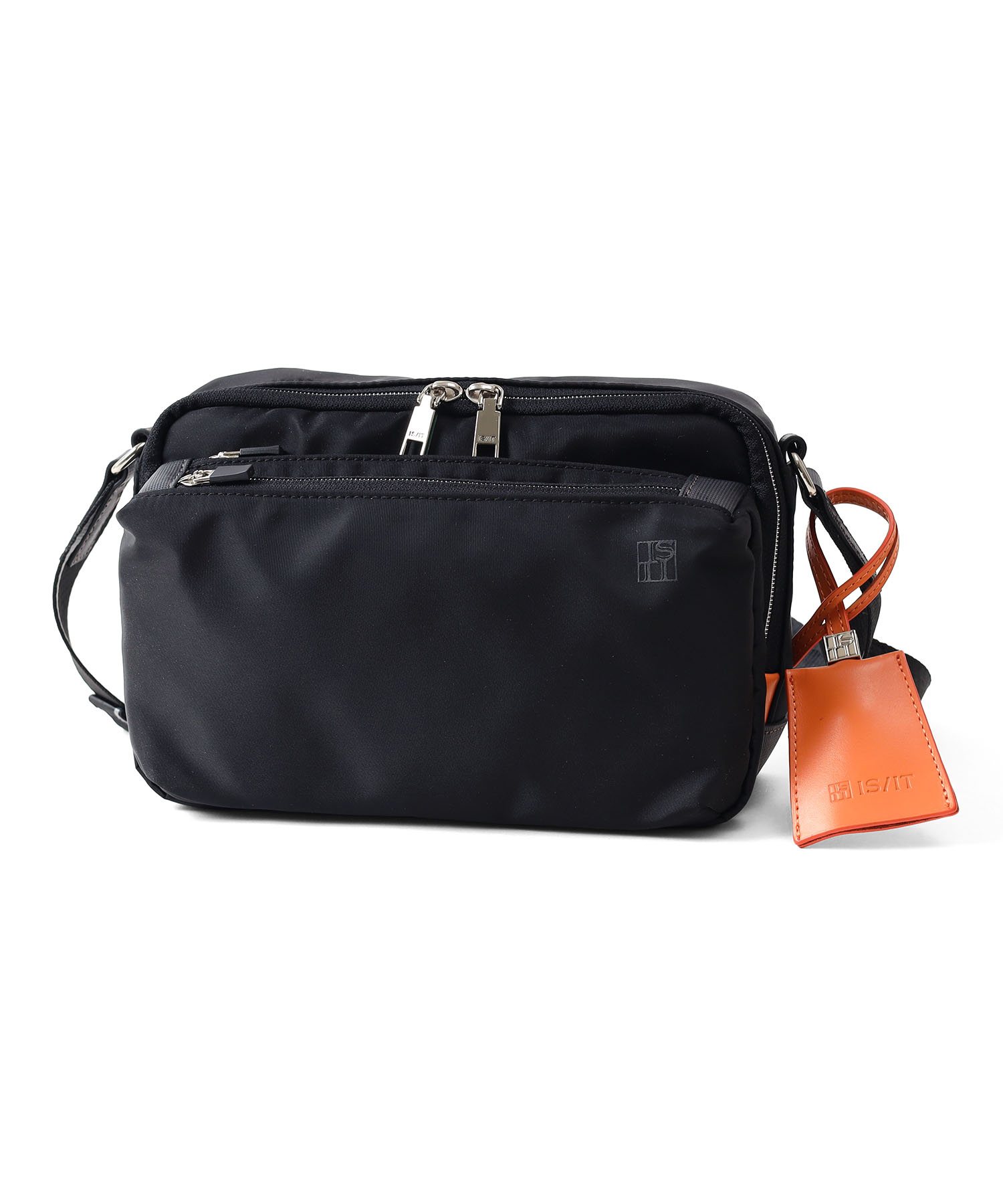 「収納しやすい」を追求し完成した、イズイットのミニショルダーバッグ。フロントにある機能的な2層式のポケットがポイント。スマホや財布類など、使用頻度の高いアイテムが収納しやすいようデザインしました。