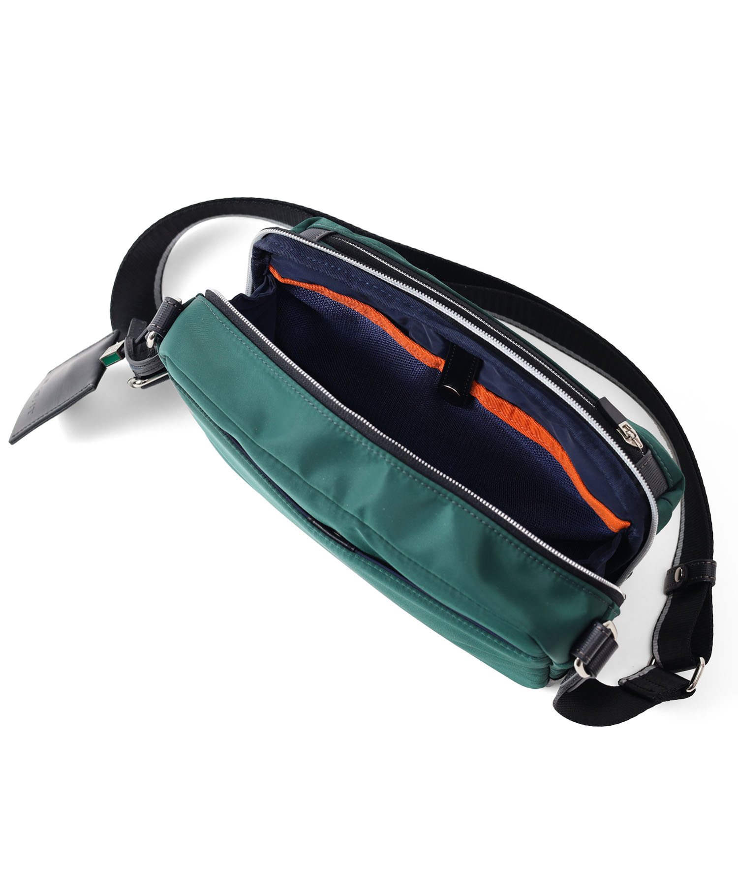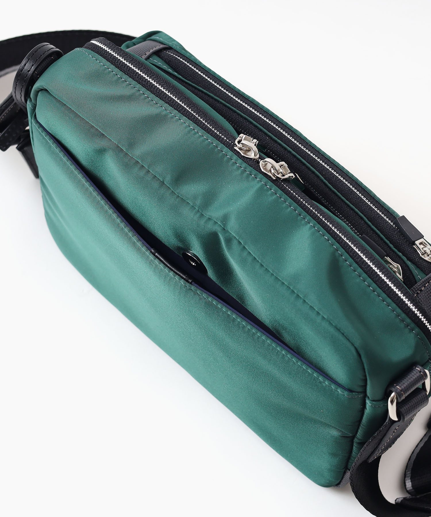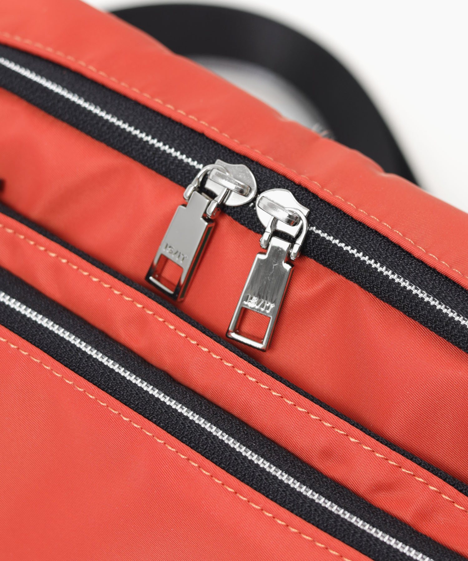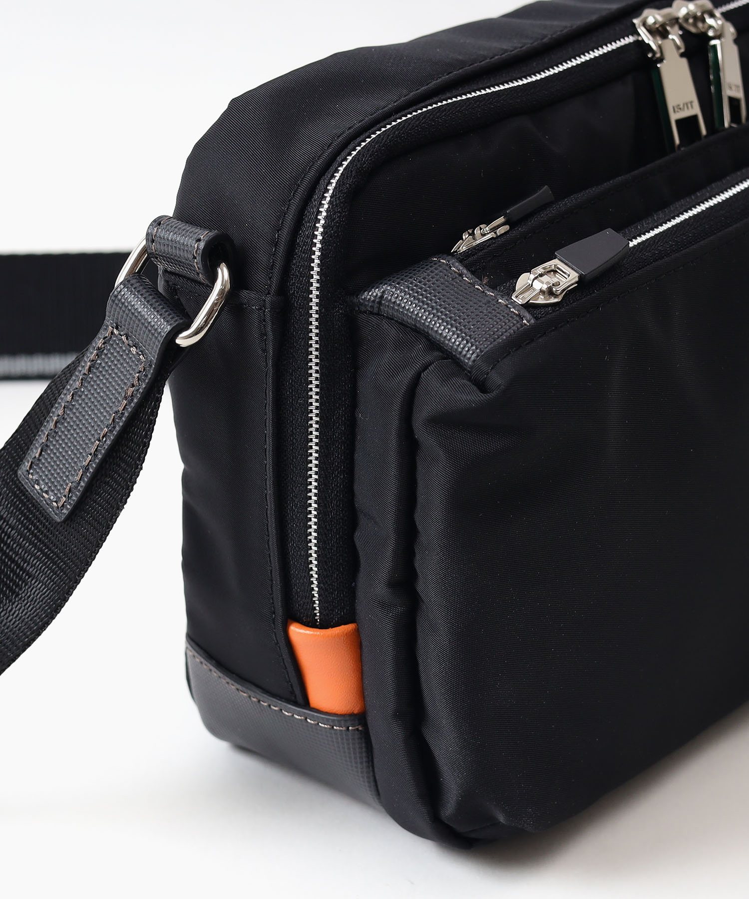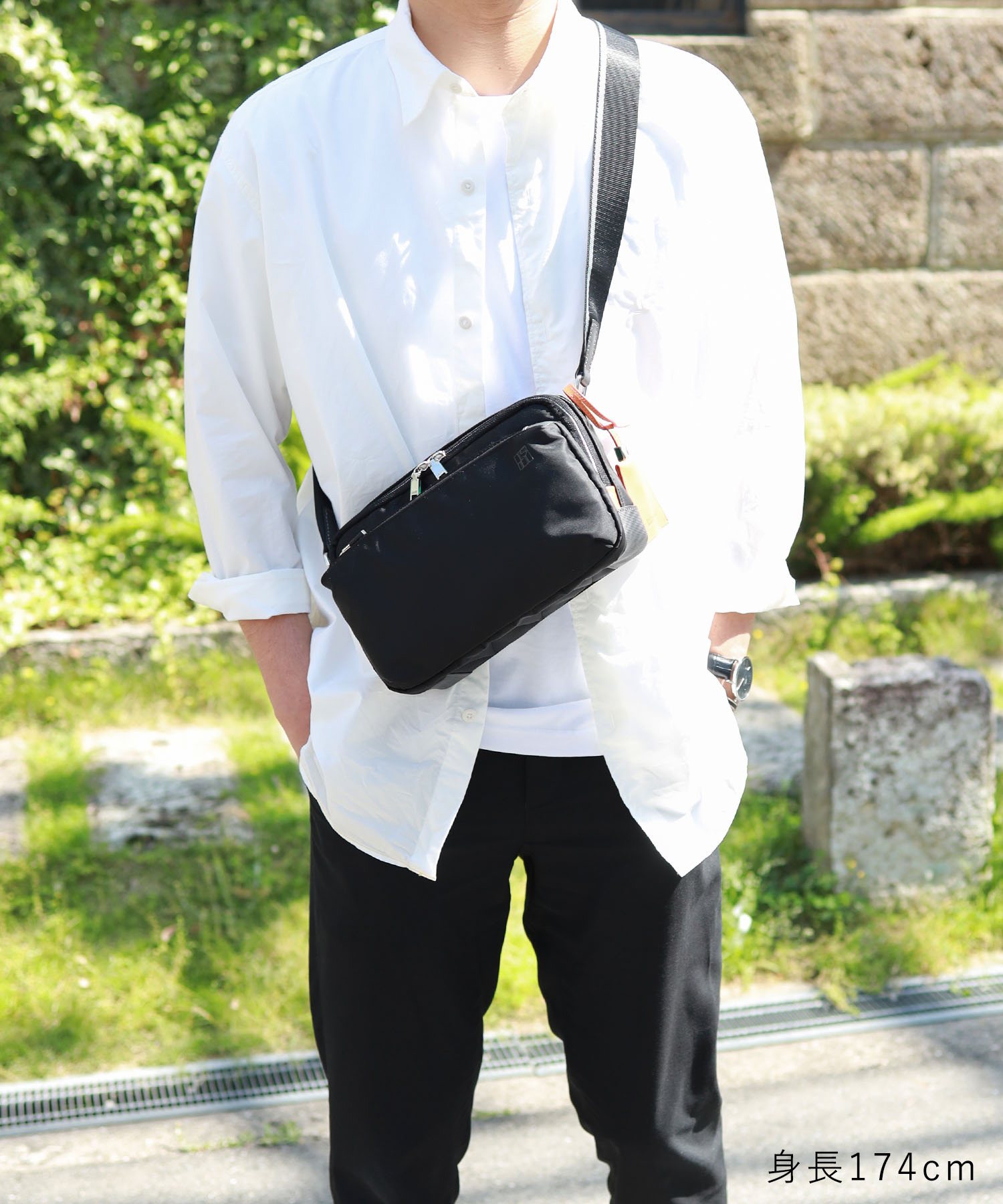 「収納しやすい」を追求し完成した、イズイットのミニショルダーバッグ。フロントにある機能的な2層式のポケットがポイント。スマホや財布類など、使用頻度の高いアイテムが収納しやすいようデザインしました。