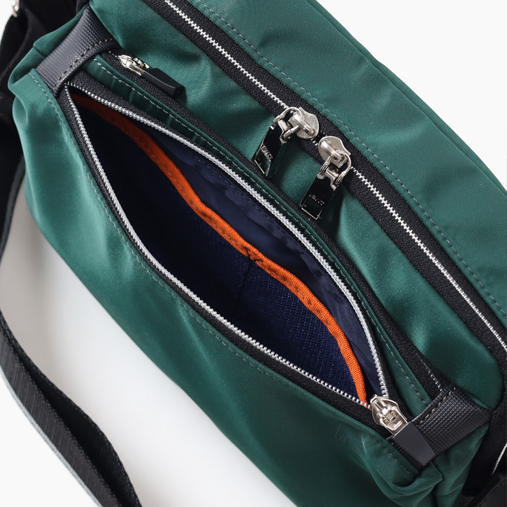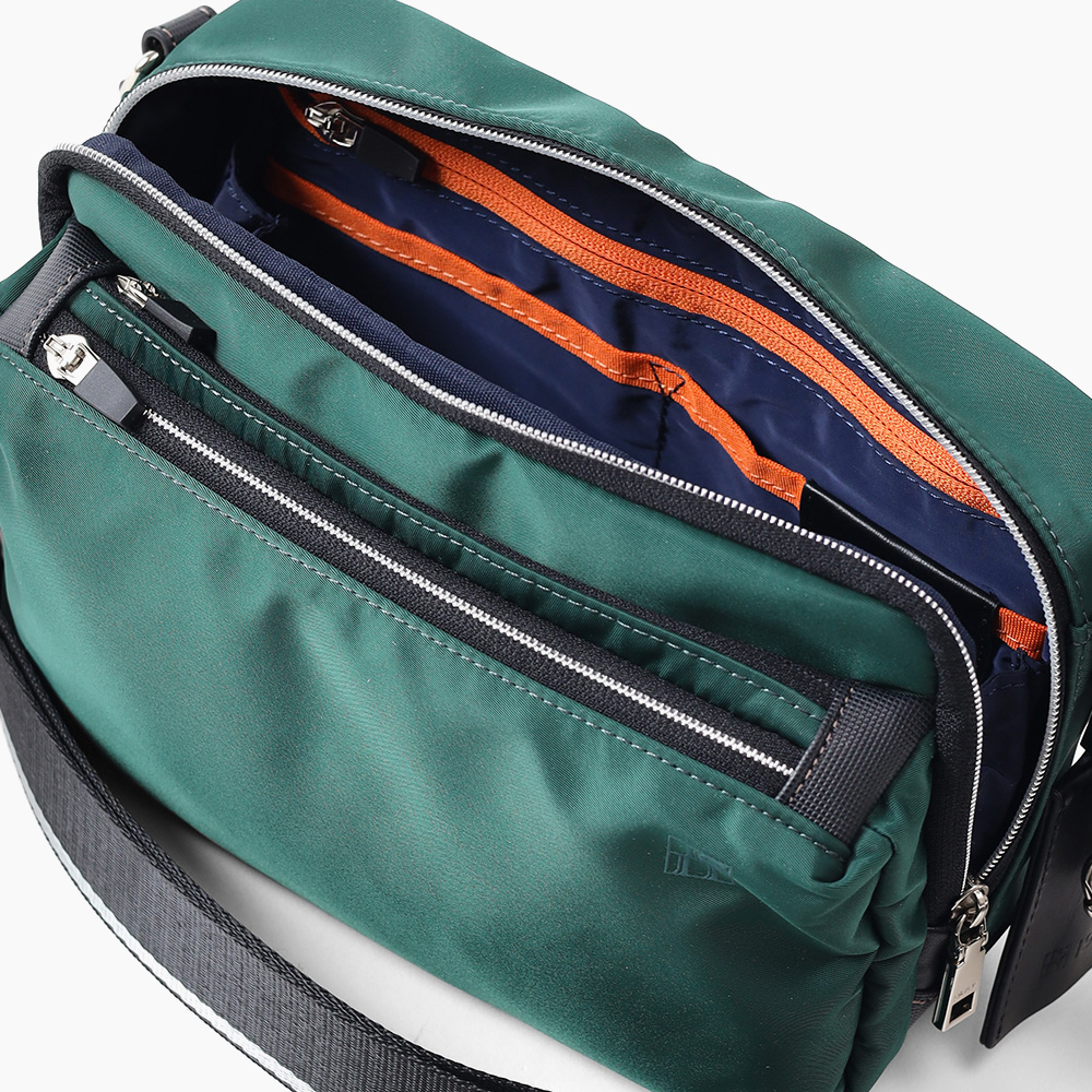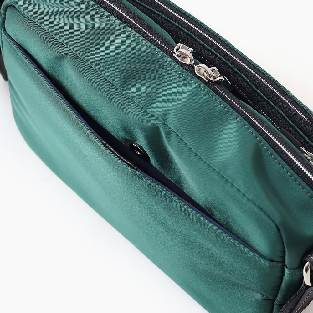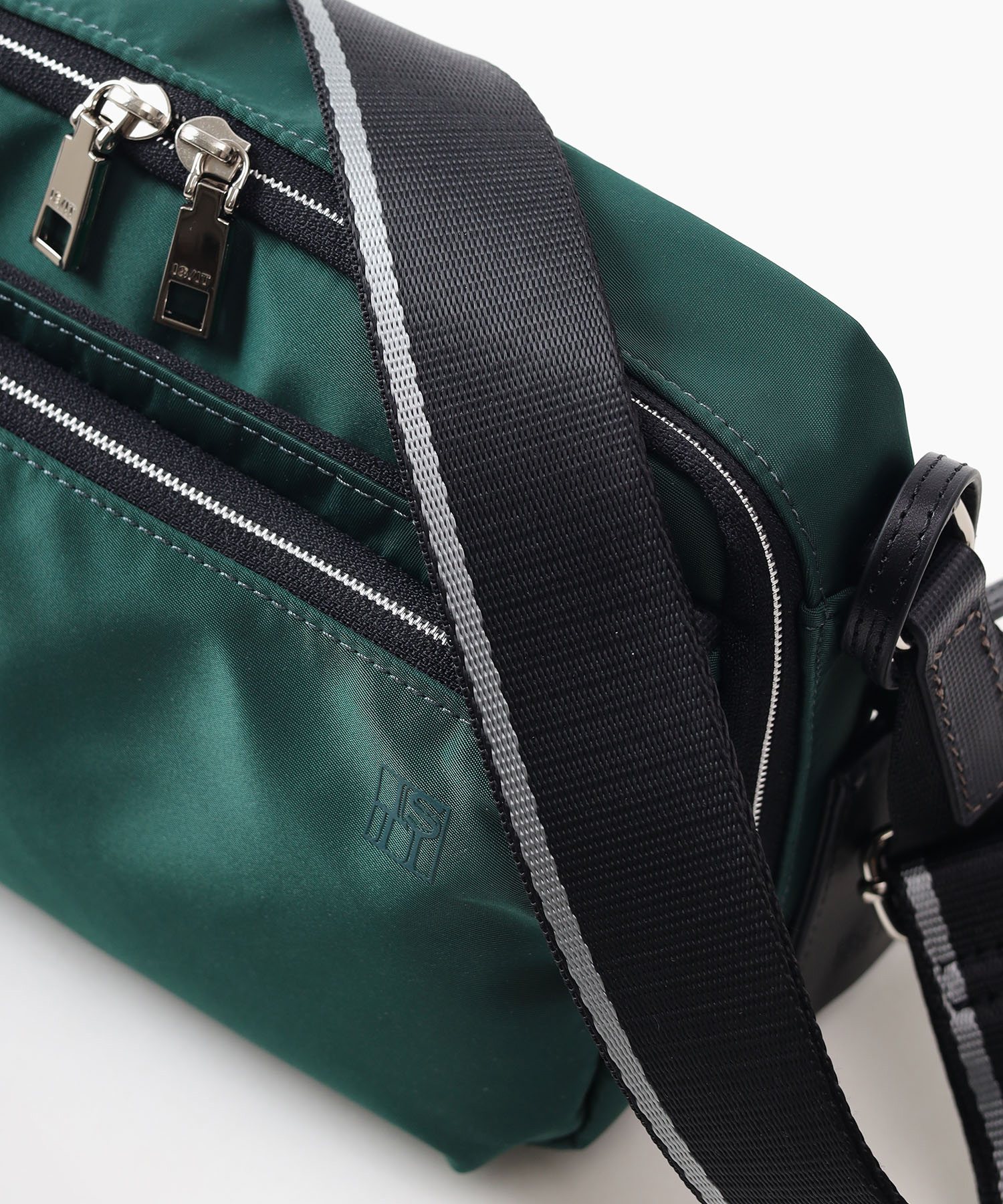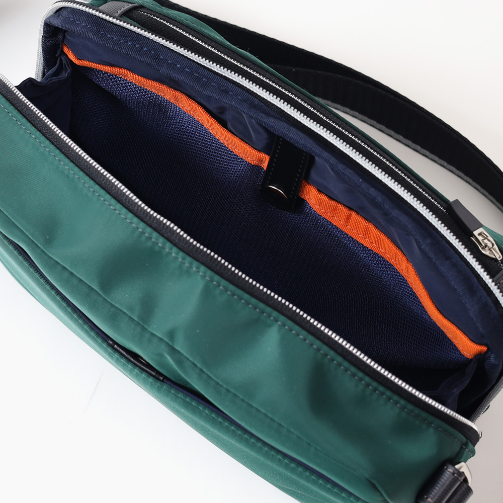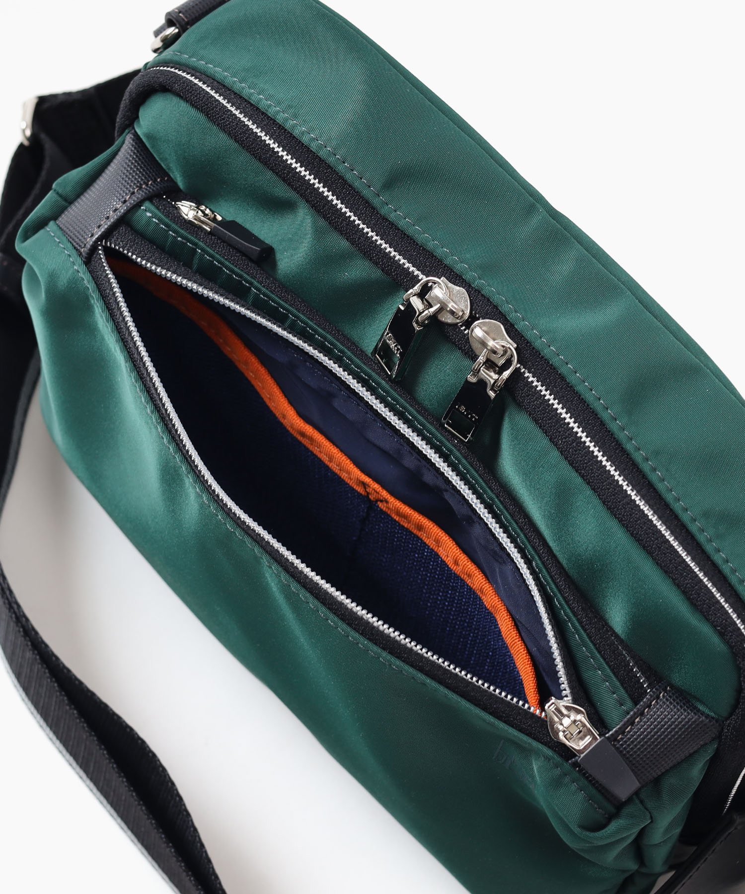 「収納しやすい」を追求し完成した、イズイットのミニショルダーバッグ。フロントにある機能的な2層式のポケットがポイント。スマホや財布類など、使用頻度の高いアイテムが収納しやすいようデザインしました。