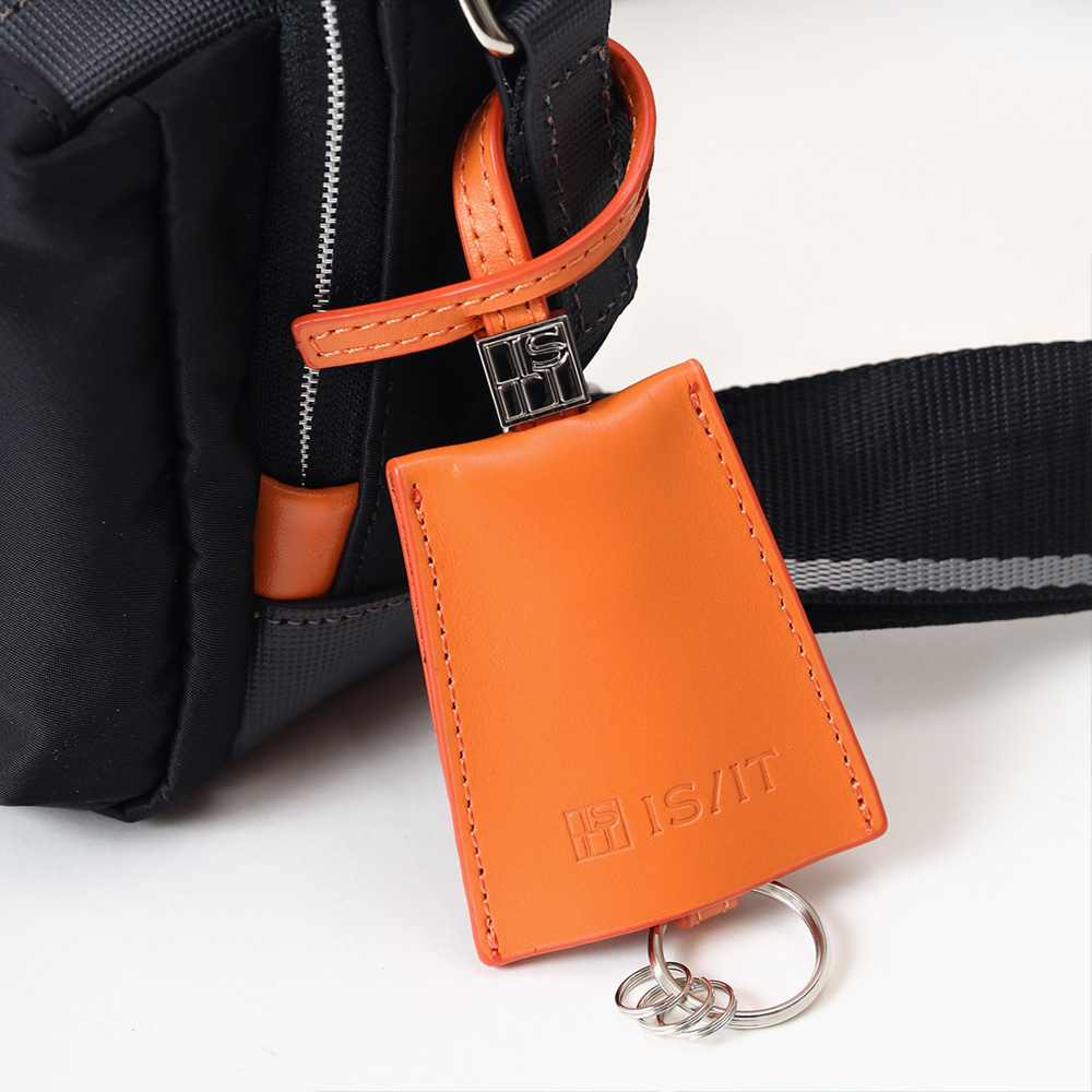 チャームとしての役割を果たすブランのロゴ入りキーサック。中にはリングが3つ付いているので、鍵を付けておけば鞄の中から鍵を探す手間が省けます。