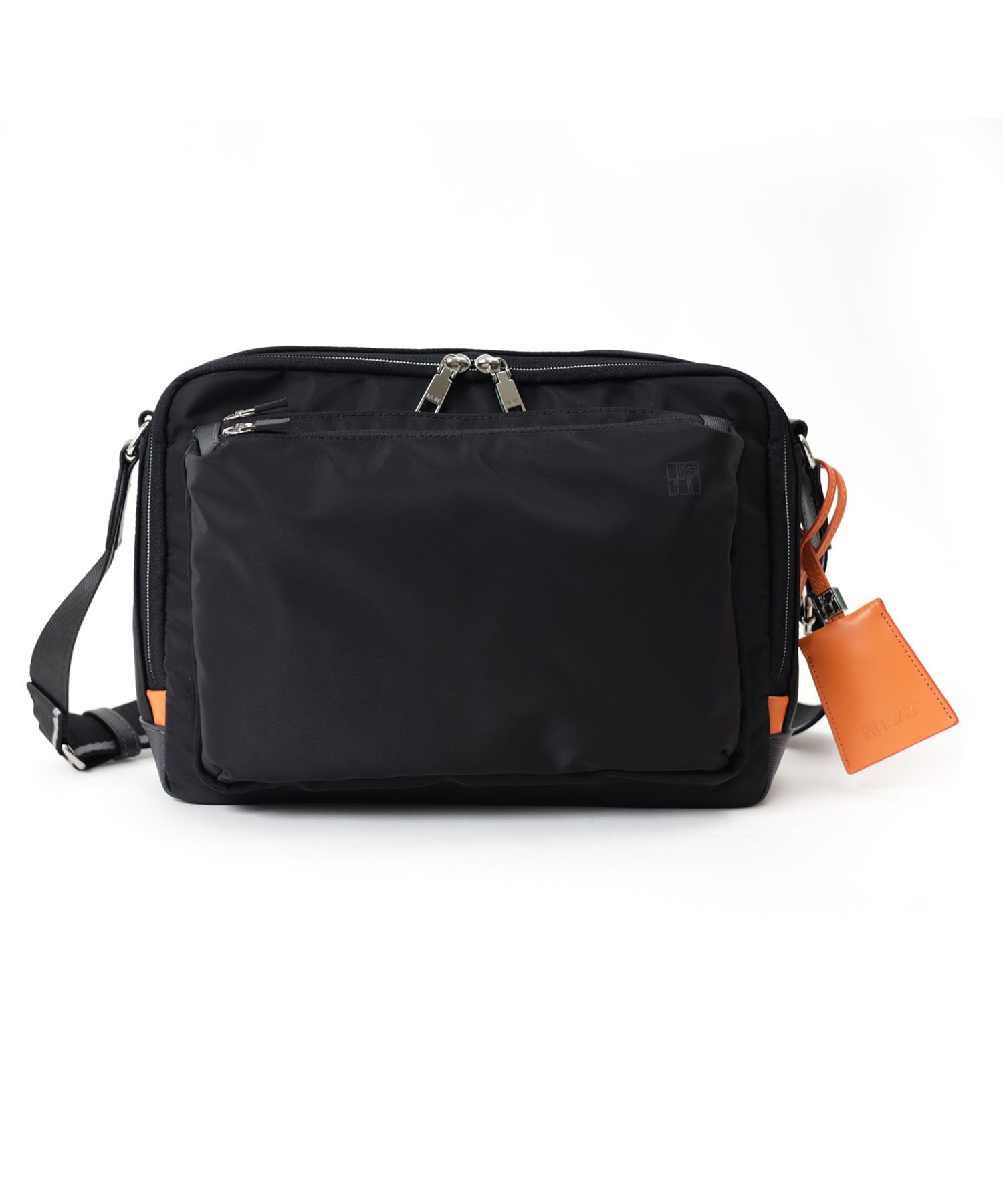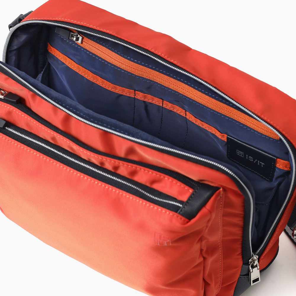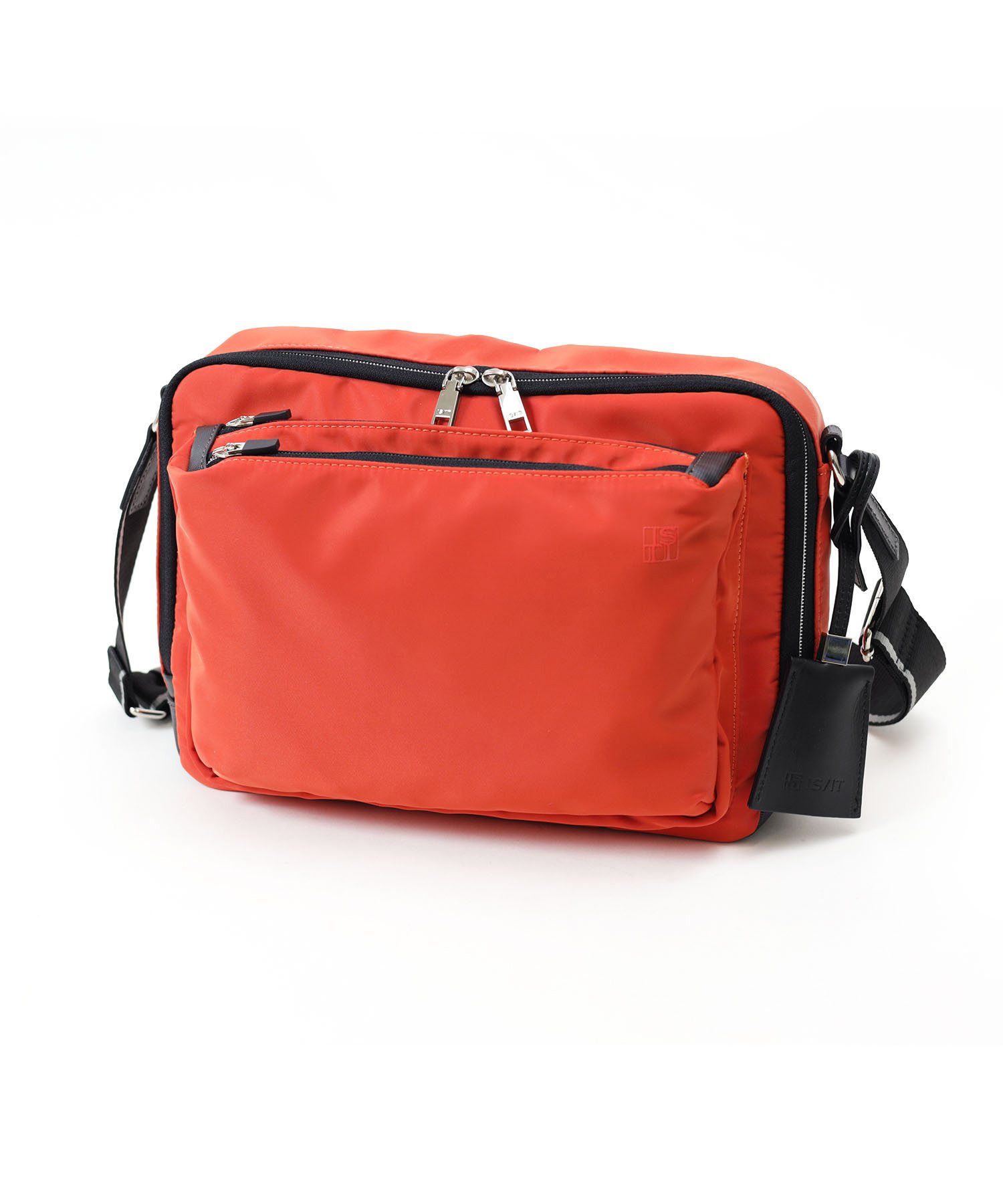 「収納しやすい」を追求し完成した、イズイットのB5サイズのショルダーバッグ。フロントにある機能的な2層式のポケットがポイント。スマホや財布類など、使用頻度の高いアイテムが収納しやすいようデザインしました。