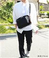 2層式のフロントポケットは、前面は厚マチ仕様になっています。そのため、使用頻度の高いお財布を入れてもフォルムが崩れずに収納できます。また、ラウンドファスナー型の長財布が入るほどの幅感があります。