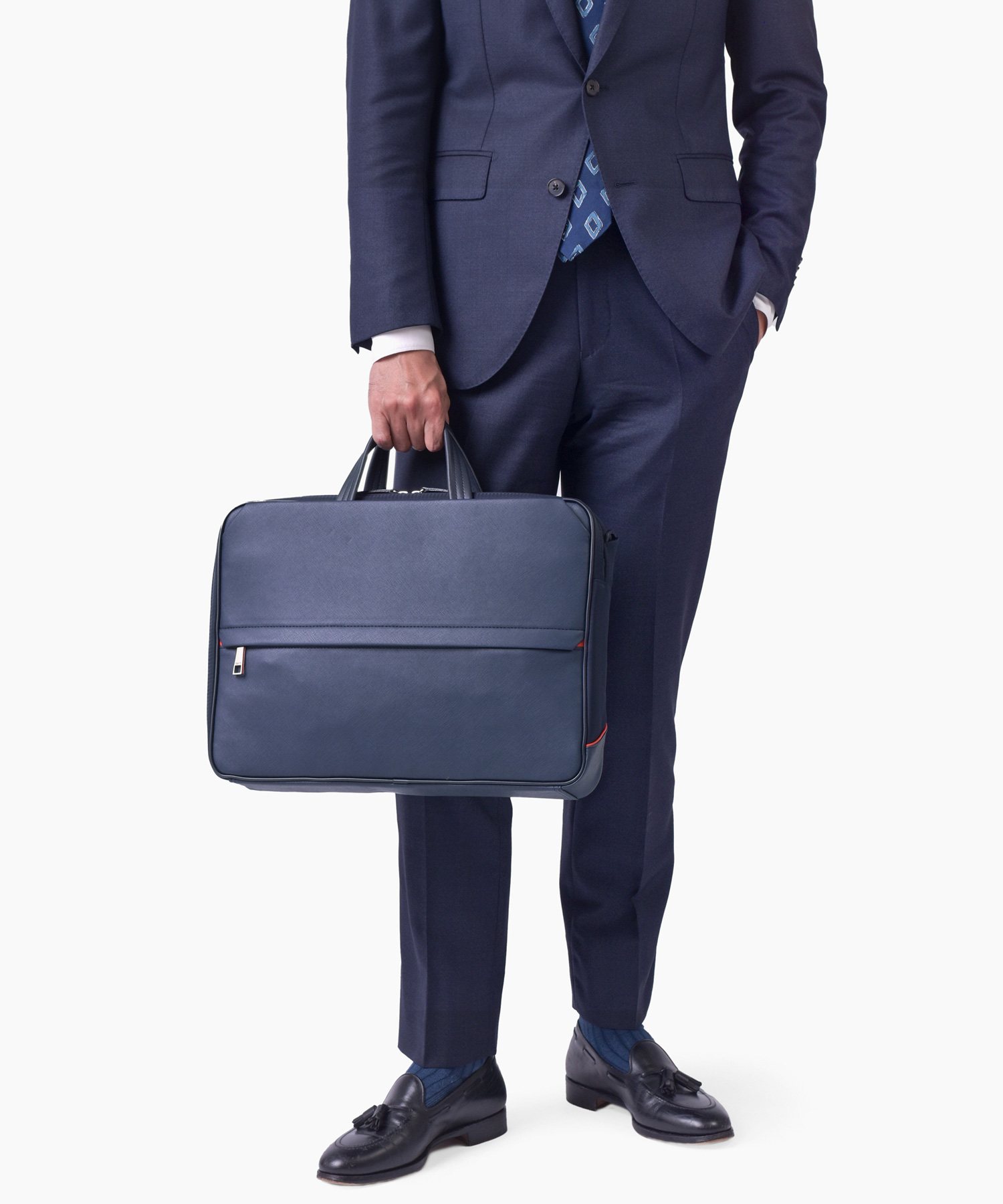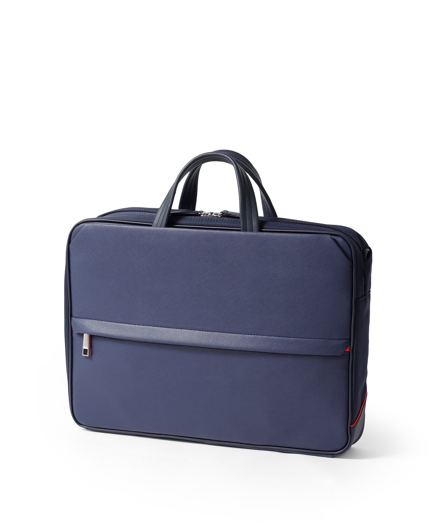 牛革のハンドル、前面にはサフィアーノ型合成皮革を、そしてマチと背面にはナイロンを使用した異素材コンビでスッキリとしたデザインのA4サイズの3WAYビジネスバッグ。