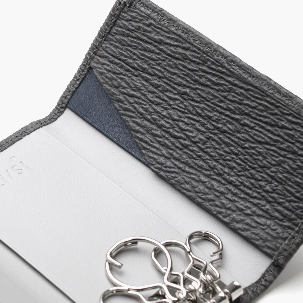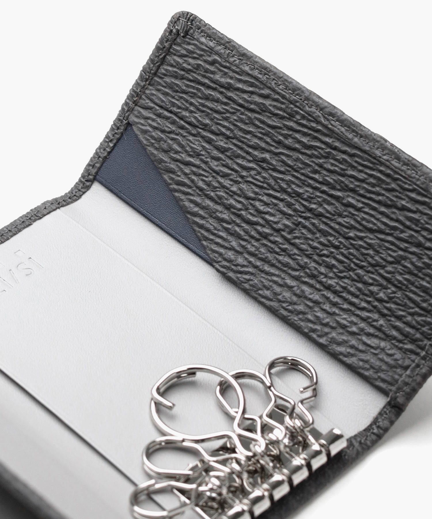 シャークスキン(サメ革)を使用した、IS/ITのキーケース。素材から縫製まで、すべて日本製にこだわりました。上質な素材が引き立つ、シンプル・ベーシックなデザインに仕上げています。