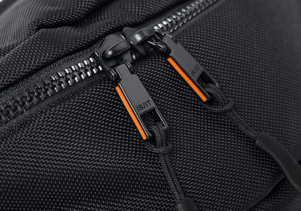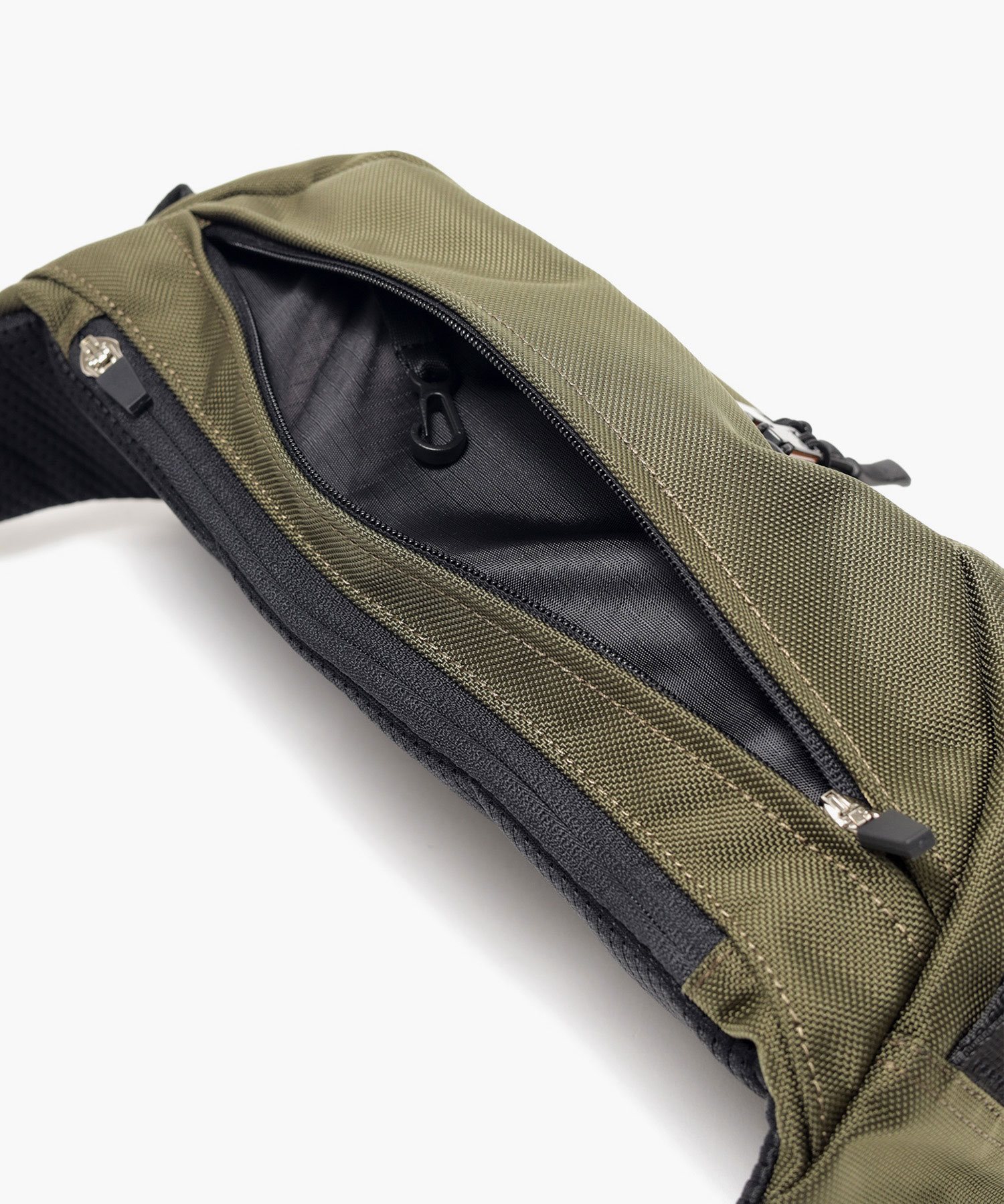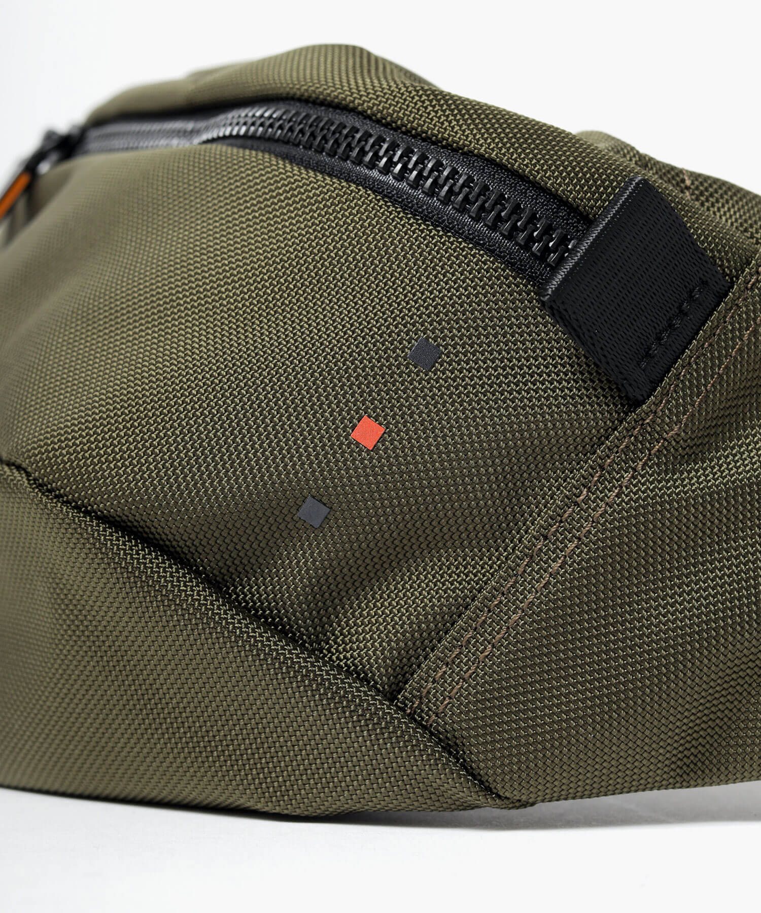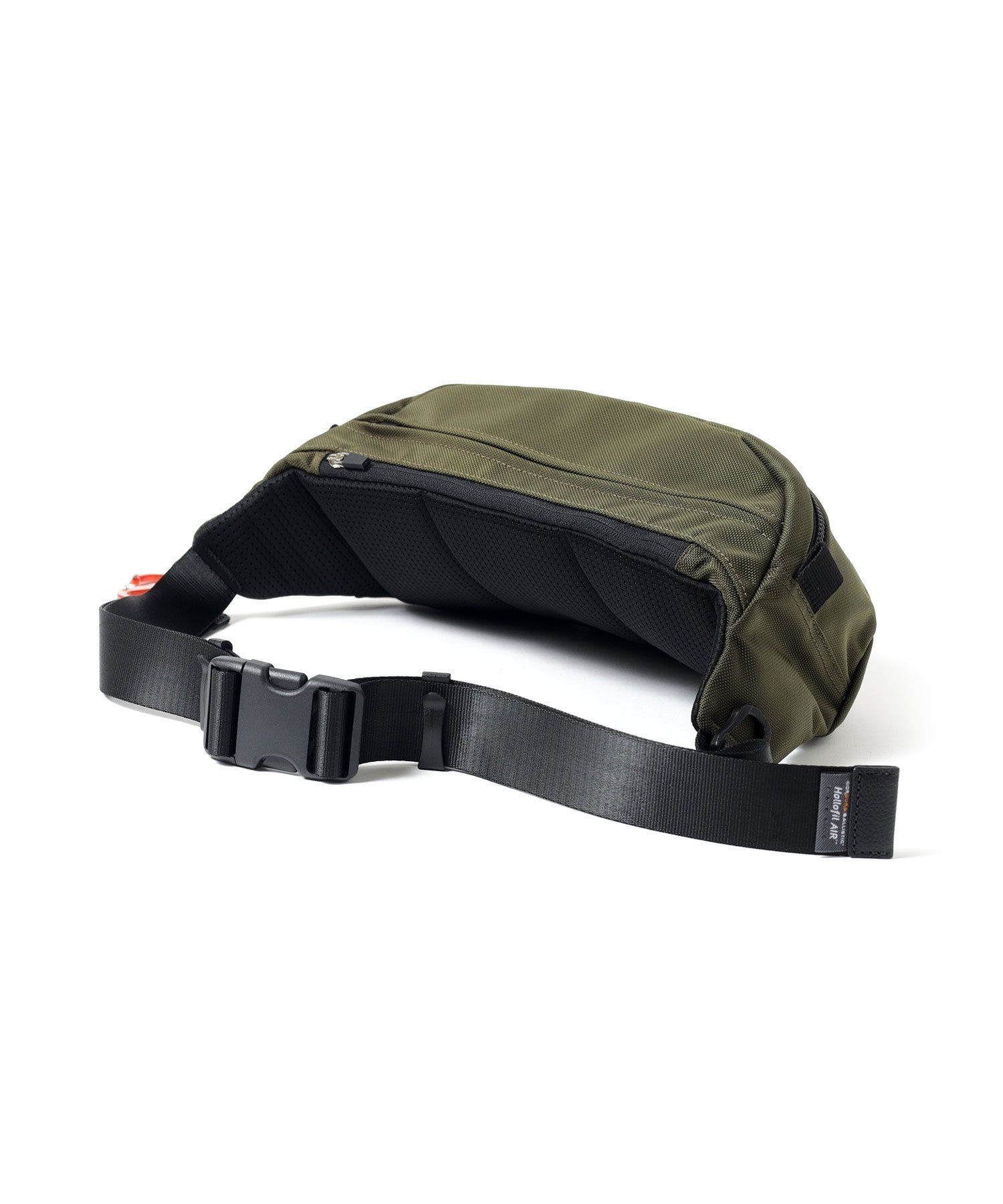 本体生地には、引き裂きに強く耐摩耗性に優れたCORDURA Hollofil AIR(Ballistic Nylon)を使用。表面には撥水加工が施されており、中空糸を使用することで軽量化を実現しています。金具にはプラ金具、ファスナーにはYKKメタルックスタフ(強化ビスロン)を採用し、全体的に素材から軽量化を目指しました。また、付属革にはスコッチガードレザーを使用しており、耐水性と耐久性を兼ね備えています。さらにパーツやブランド表現などディティールにもこだわり、機能的で使い勝手の良い仕様を実現しました。