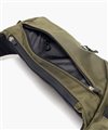メインルームは500mlのペットボトルが横向きに収納可能なサイズで、メッシュファスナーポケットが1つあります。外側の上部にはファスナーポケットがあり、内側には鍵をつけることができるキーサックが付いています。背面にもファスナーポケットがあり、ポケット類が豊富に備わっています。