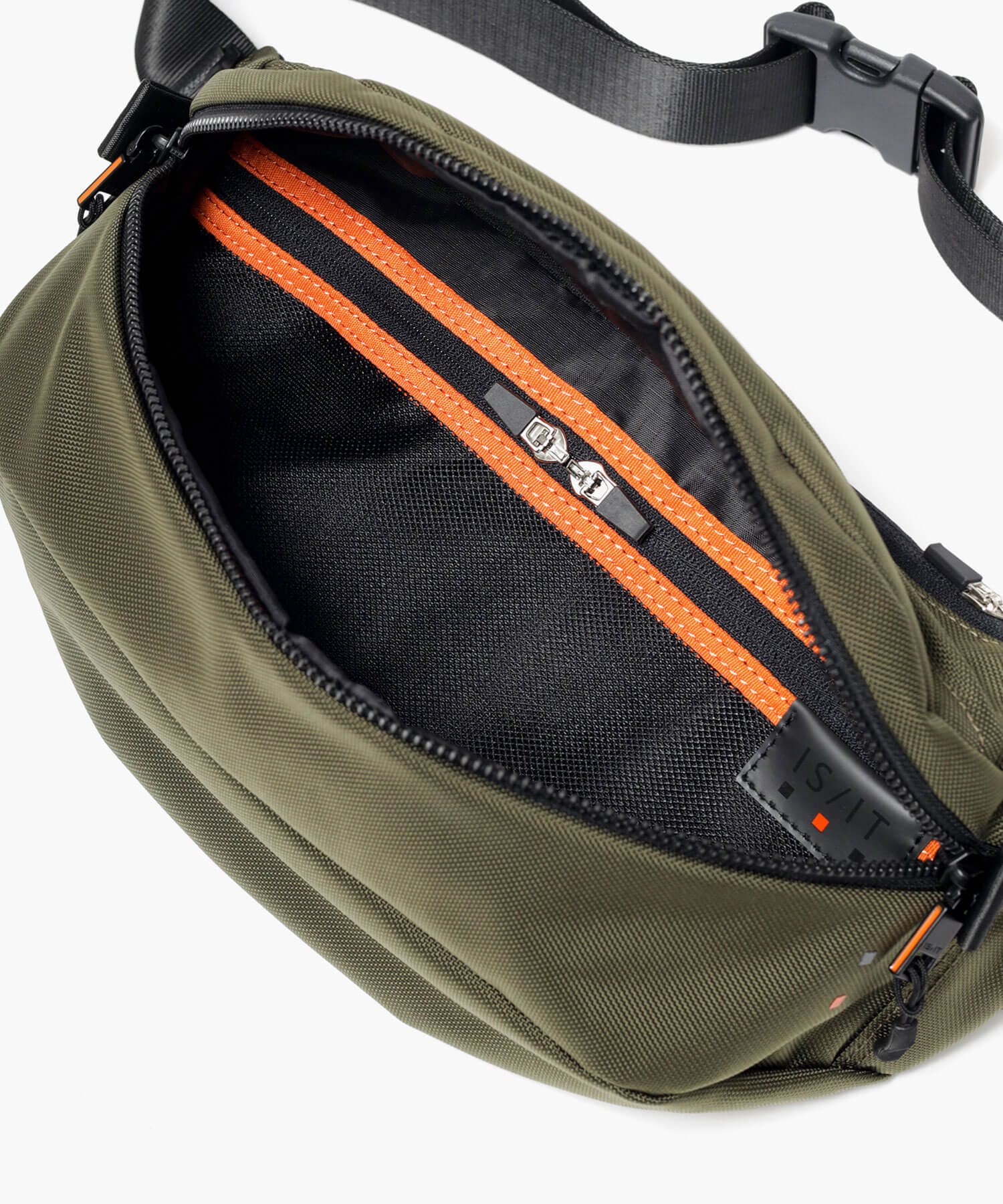 アーバンミリタリーを意識したジェンダーフリーな、IS/ITのナイロンカジュアルワンショルダーバッグ。豊富な収納ポケットを備え、機能的でありながらシンプルな見た目にもこだわりました。本体生地には、引き裂きに強く耐摩耗性に優れたCORDURA Hollofil AIR(Ballistic Nylon)を使用しています。