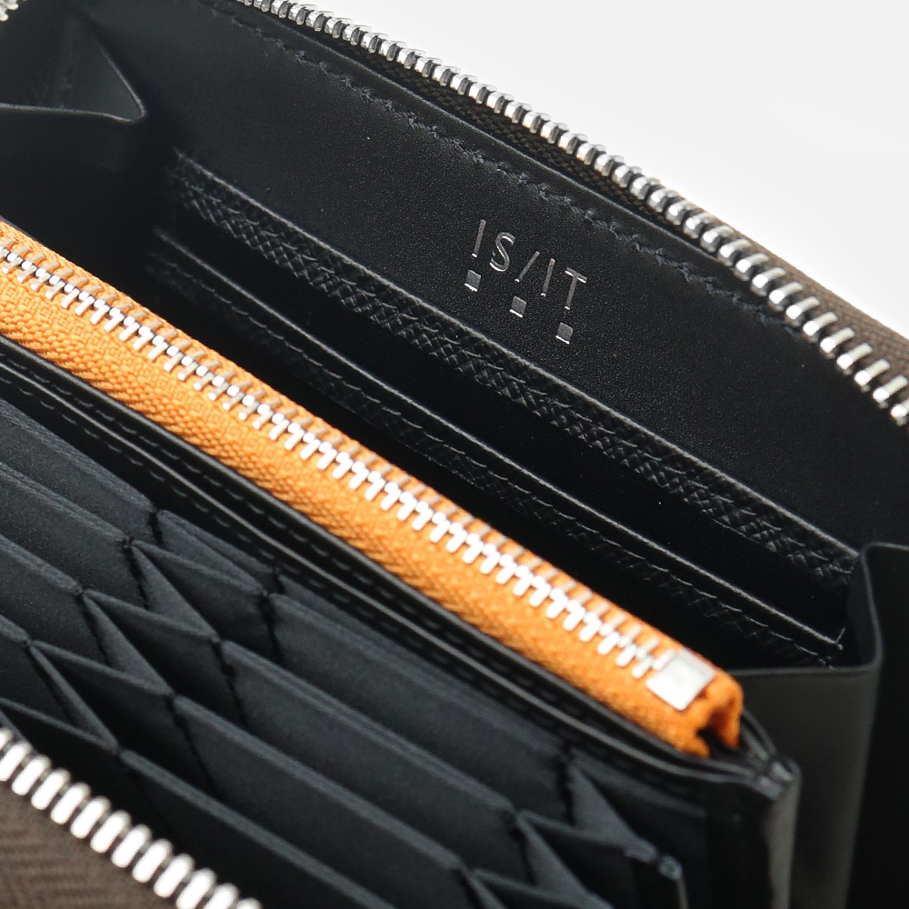 特殊な縫製のカード収納が 魅力のラウンドファスナーセミ長財布