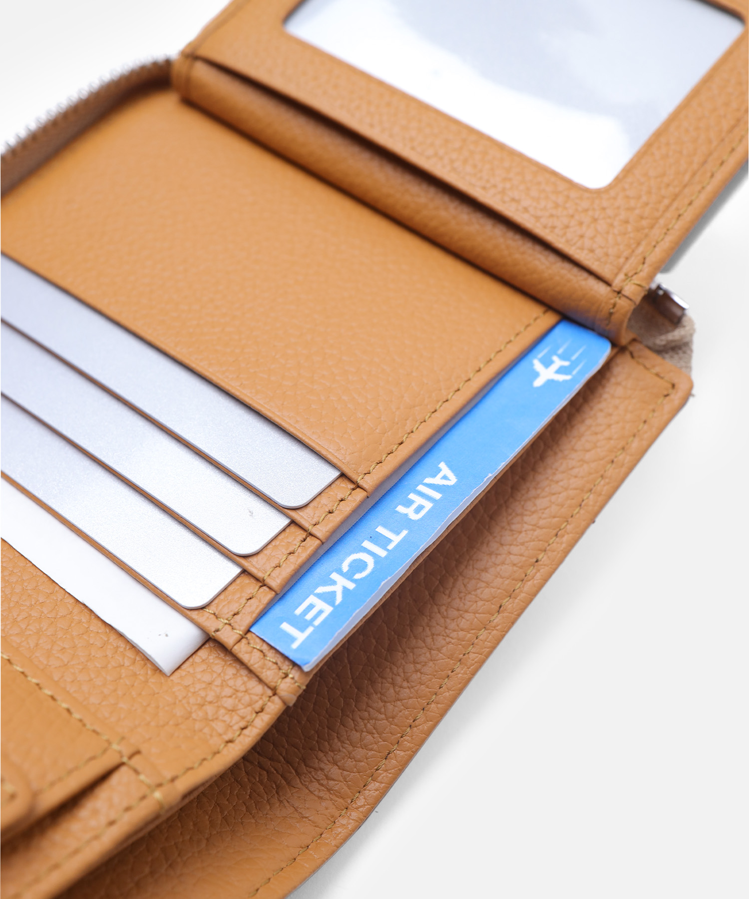 内装はカードポケットが7つと領収書などを収納できるポケットが2つあります。また、札入れが2つとBOX型の小銭入れがあり、コンパクトながらも沢山の収納ポケットが備わっています。