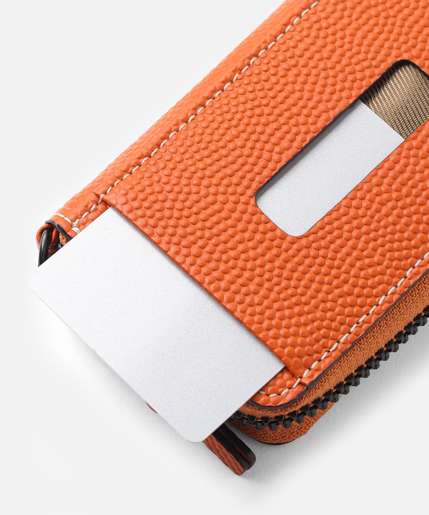 実際のバスケットボールで使用されるレザーを使用した小銭入れ。プレー中のドリブルやシュートにも耐えるこの素材は摩擦や熱、傷等に強く細かな凹凸が手に吸い付くように馴染みます。