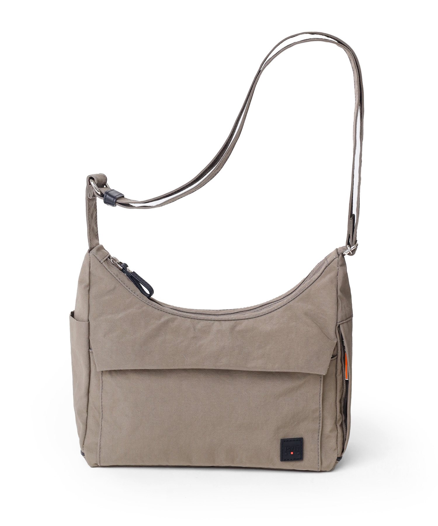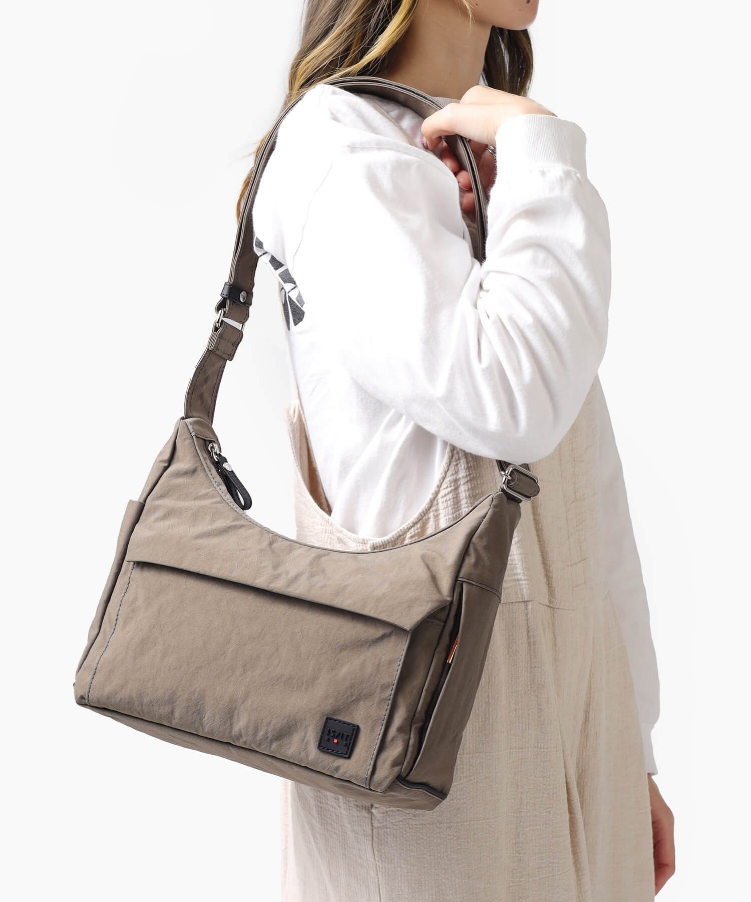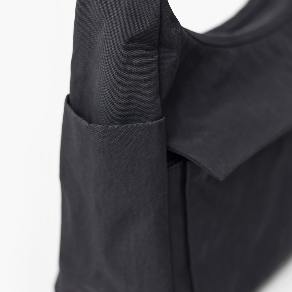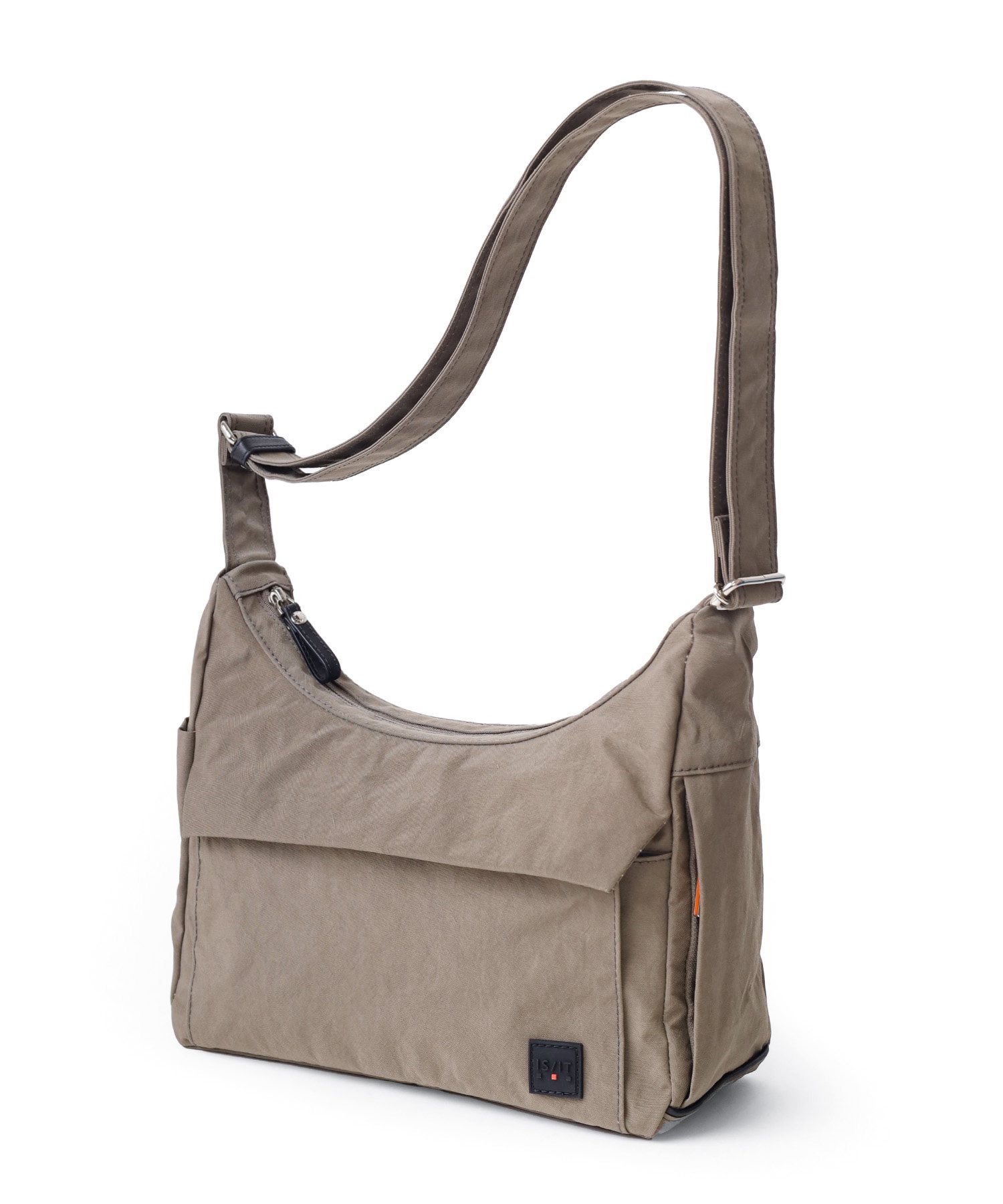 明るいカラーバリエーションが魅力的な風合いの良いシワナイロンを使用した舟形ショルダーバッグ。 充実した内装ポケットや両サイドのそれぞれ仕様の違うポケットなど、IS/ITらしい機能性と軽さを両立させたジェンダーニュートラルなデザインの軽量タウンカジュアルバッグです。