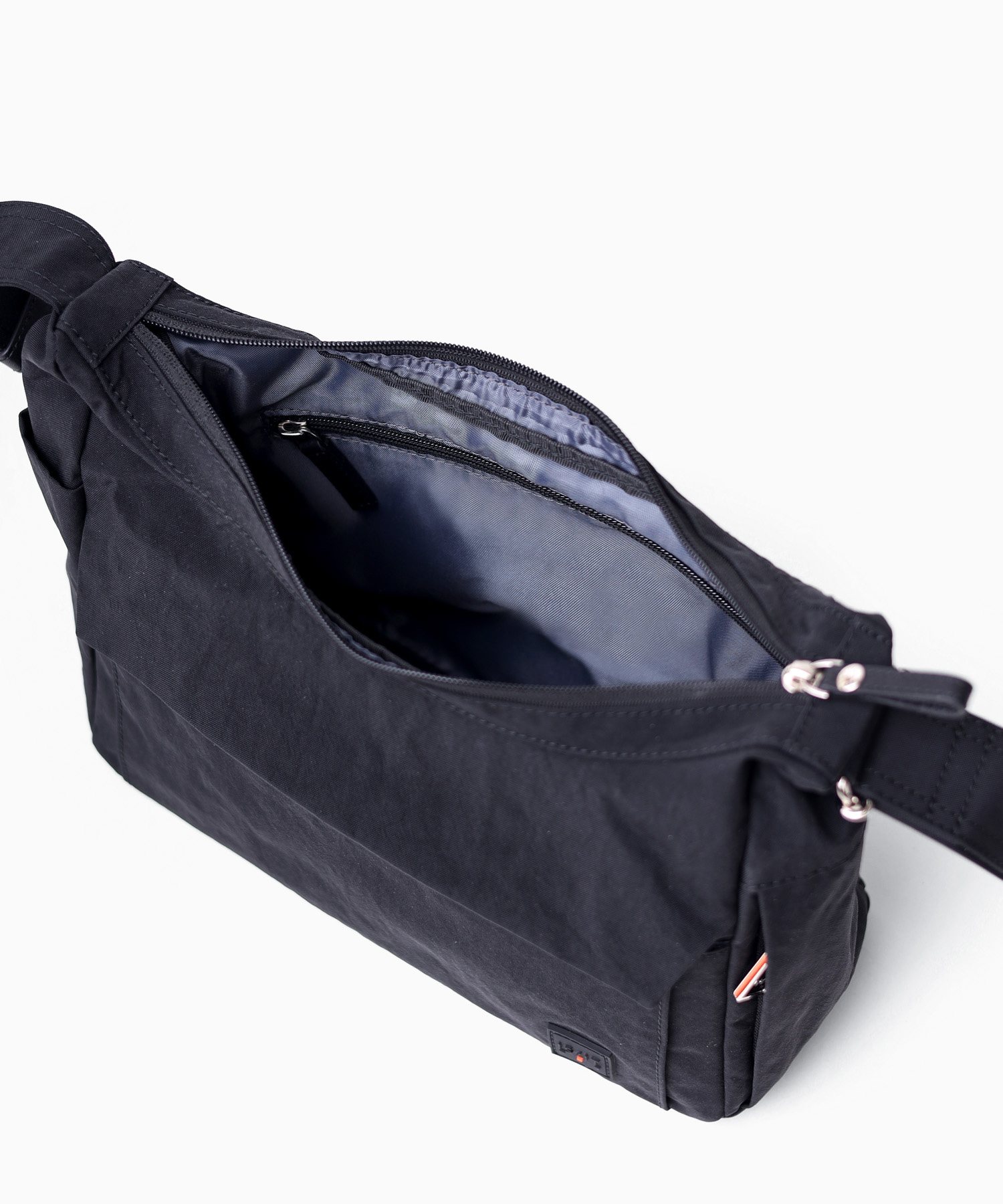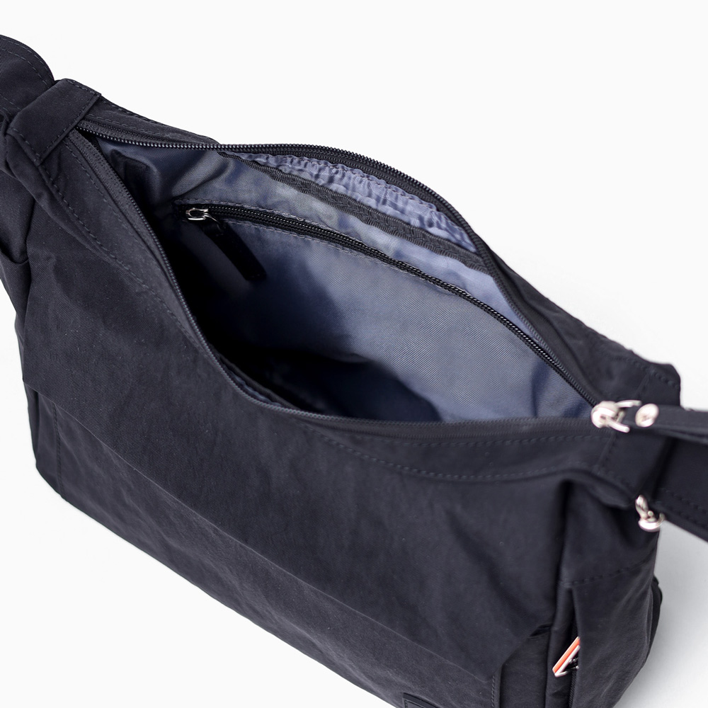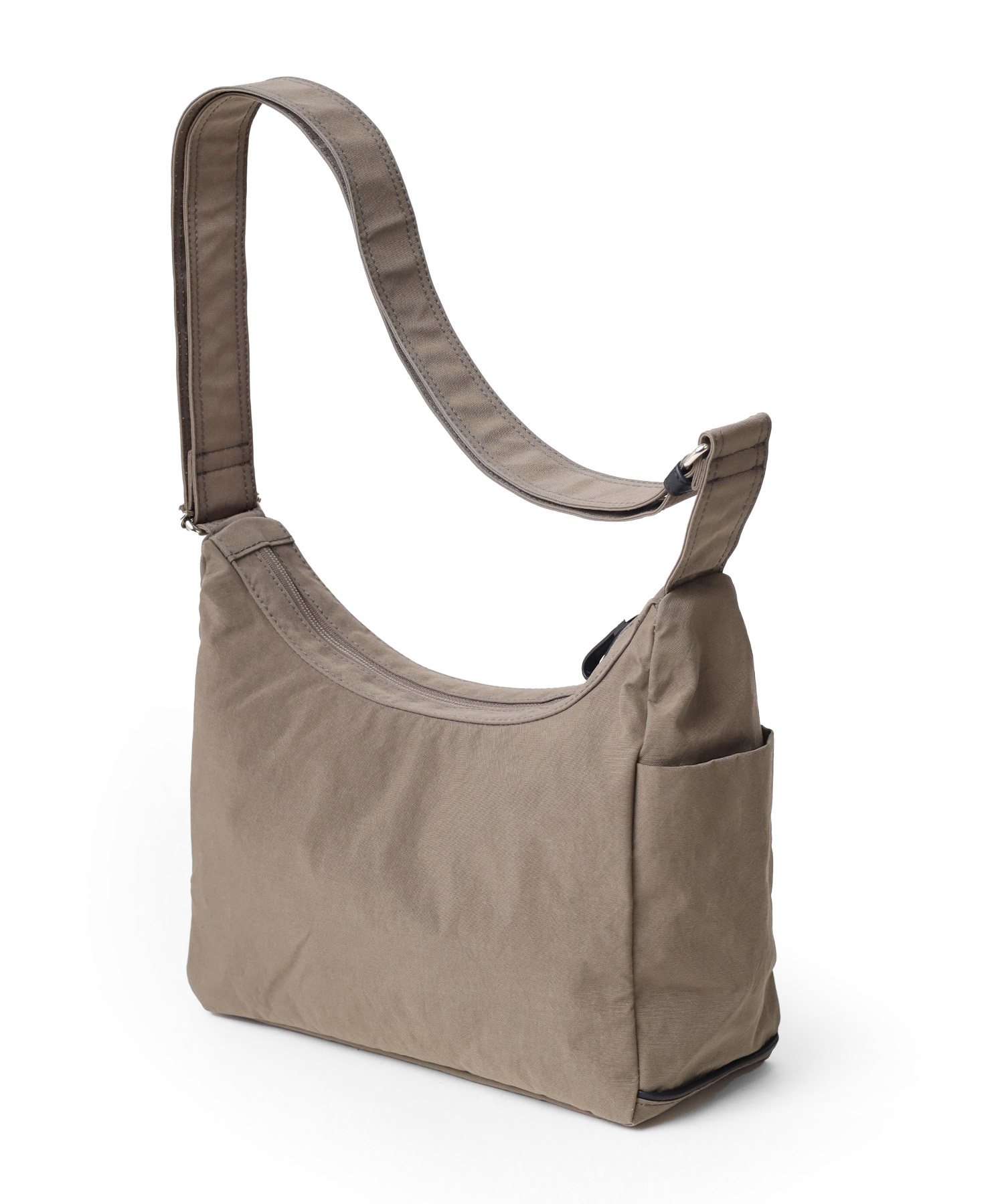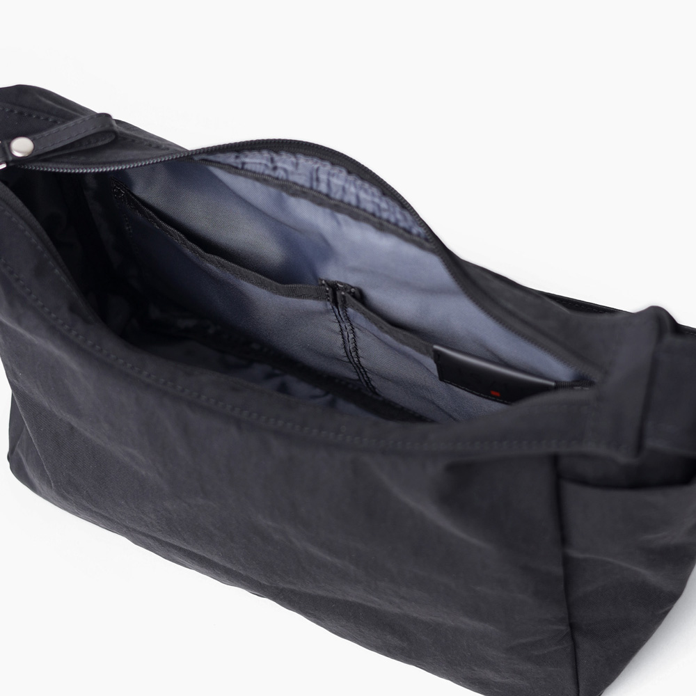 明るいカラーバリエーションが魅力的な風合いの良いシワナイロンを使用した舟形ショルダーバッグ。 充実した内装ポケットや両サイドのそれぞれ仕様の違うポケットなど、IS/ITらしい機能性と軽さを両立させたジェンダーニュートラルなデザインの軽量タウンカジュアルバッグです。