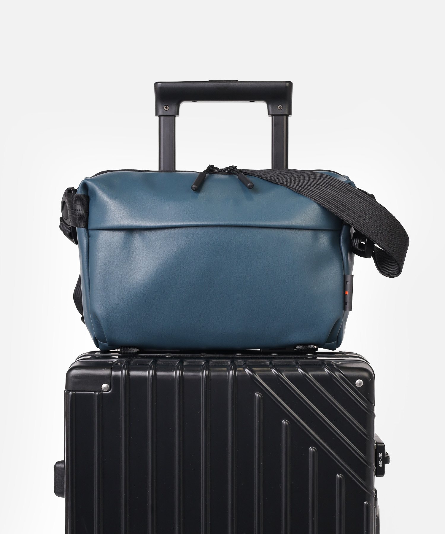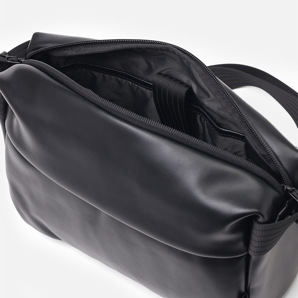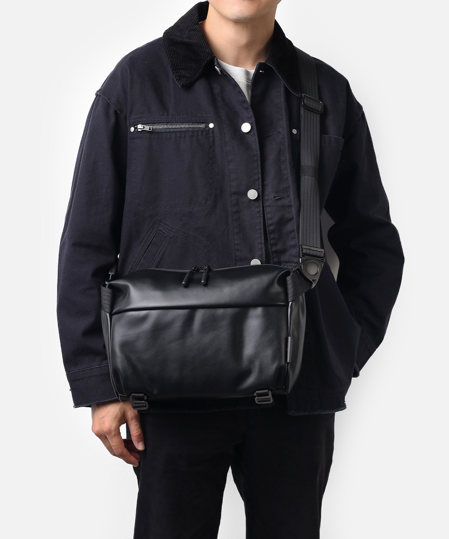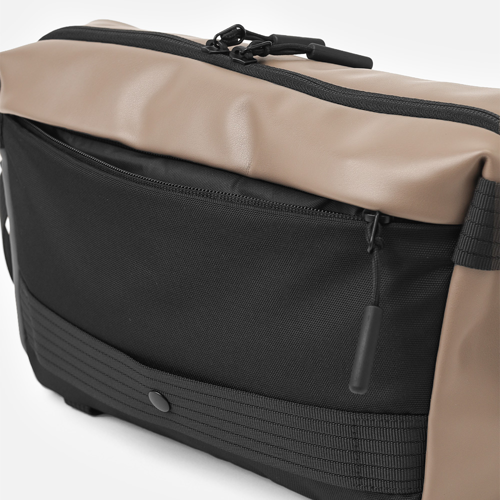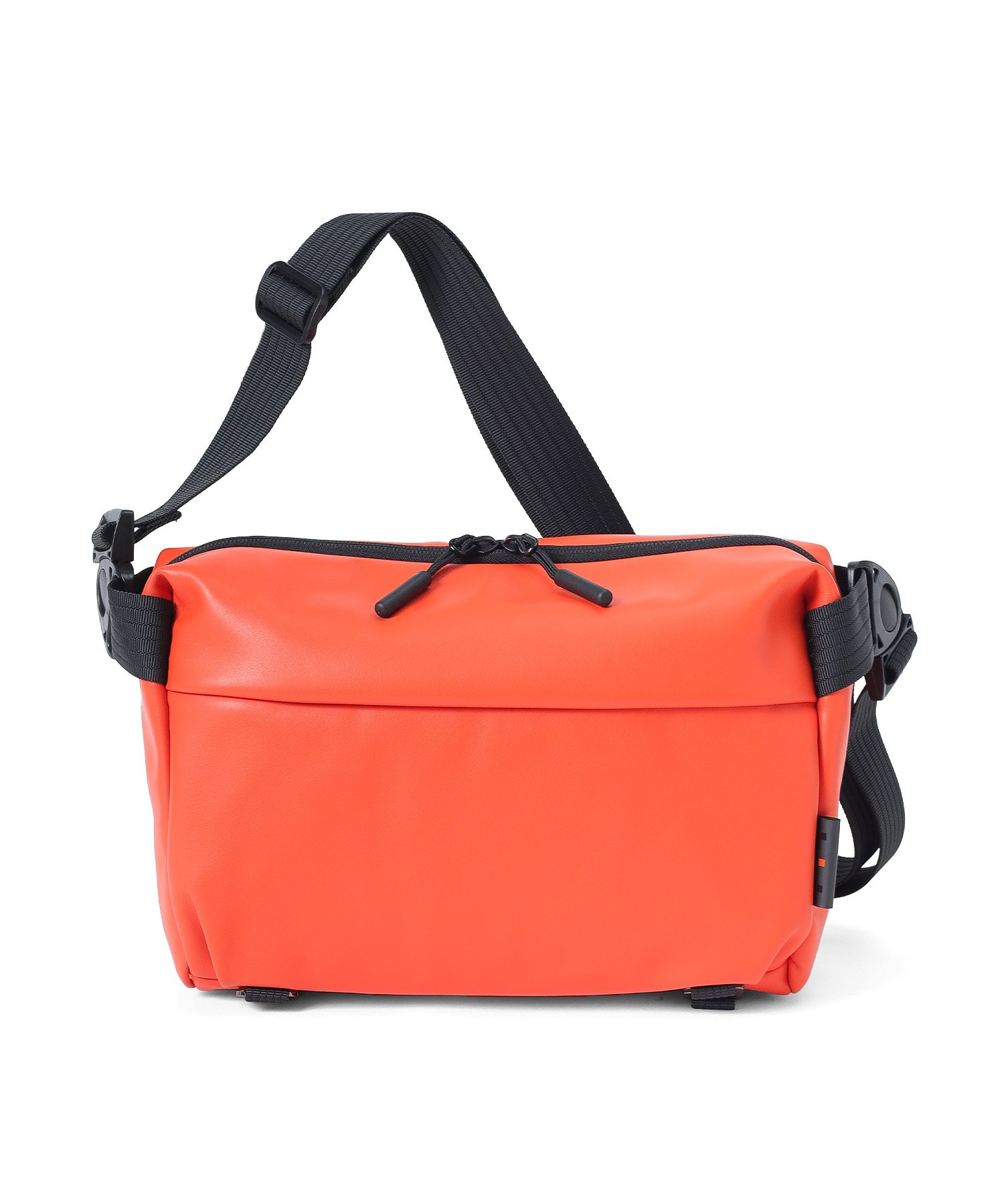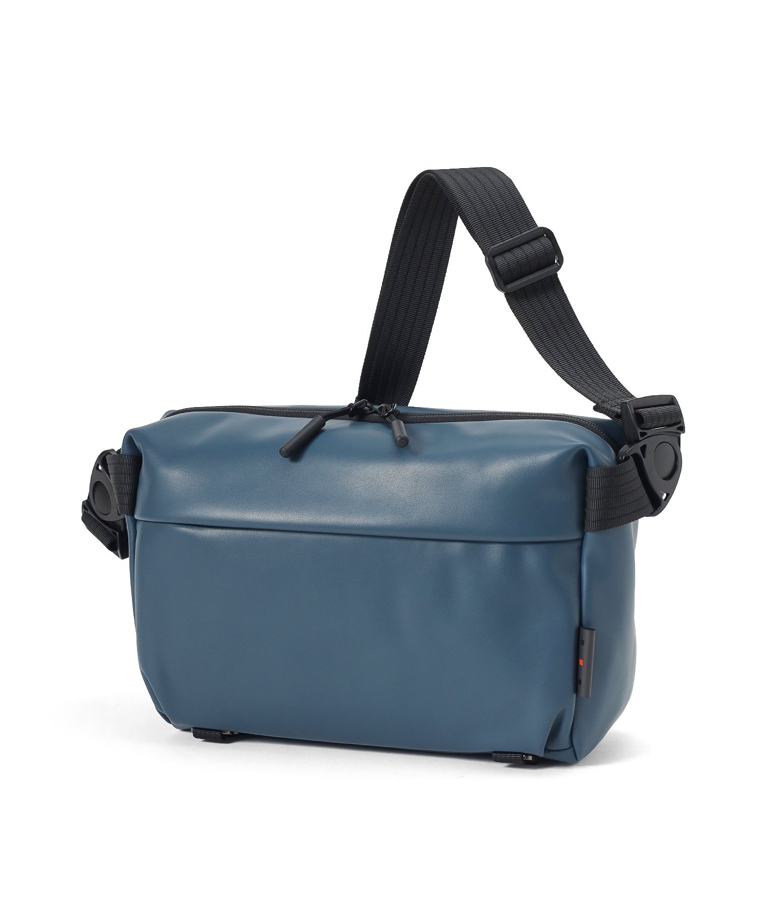 本体の底部から上部にかけてマチ幅を徐々に狭めることで、ショルダーを掛けた際に身体のラインに自然と寄り添う、絶妙なフィット感を実現したスリングショルダーバッグです。メイン素材には手触りの良い合皮を採用。さらに、ファスナー部分には「撥水コイル」を使用しているため、水分の侵入を防ぎます。突然の雨や天候の変化を気にせず、毎日アクティブにお使いいただける頼もしい相棒です。