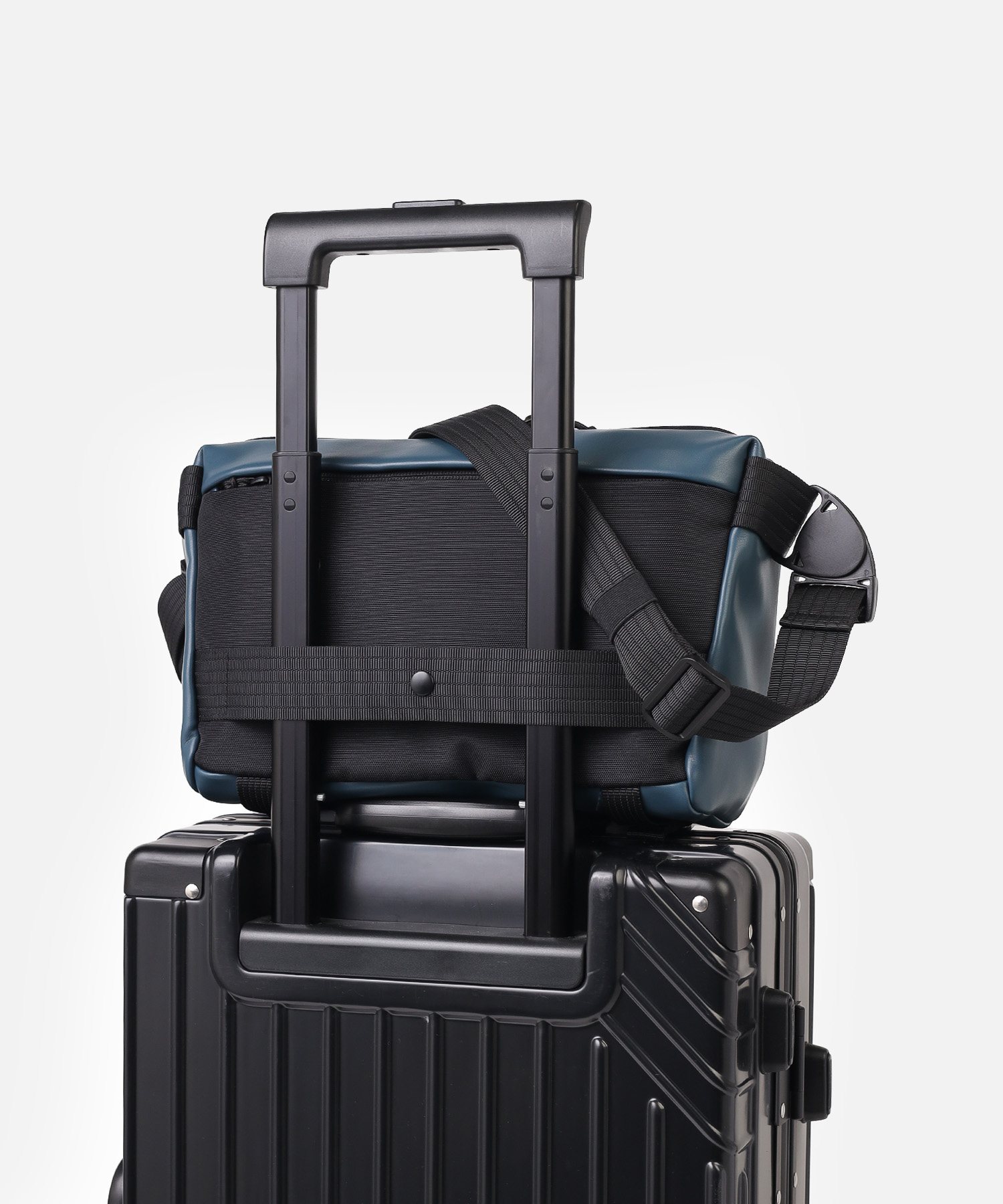 バッグ背面には、スーツケースやキャリーケースのハンドルバーに通して固定できる「セットアップベルト」を装備しています。バッグがずり落ちる心配がなく、海外旅行や出張など、荷物が多い移動シーンでもストレスフリーに行動できます。