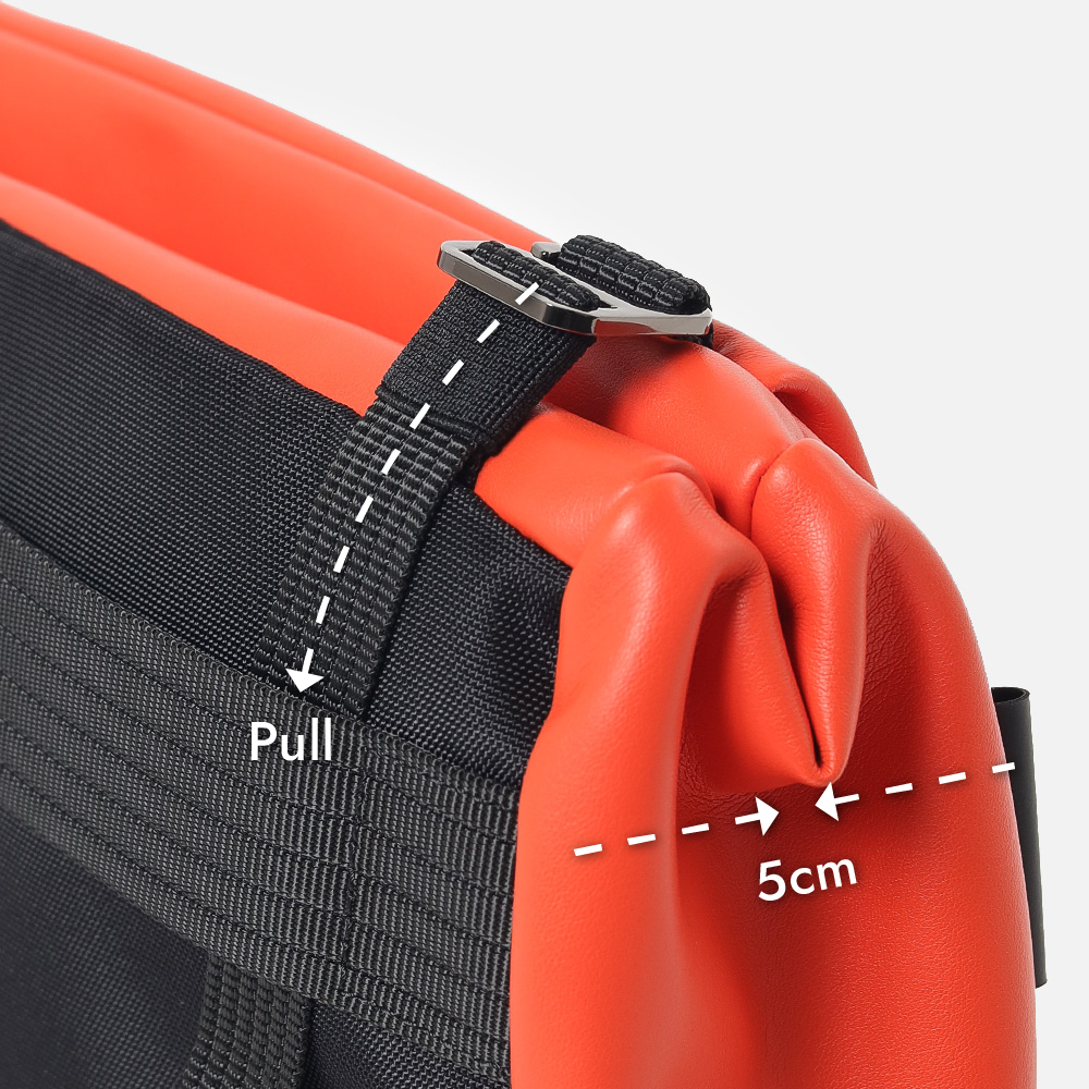 本体底面に備わったベルトを調整することで、バッグのマチ幅を自由に変えることができる仕様です。荷物が多い日やアクティブに動きたい時は、ベルトを緩めてマチを広げ、収納力抜群のショルダーバッグとして。逆に荷物が少ない時は、ベルトを絞ってマチを薄くし、ショルダーベルトを取り外せば、小脇に抱えるスマートなクラッチバッグに変身します。外出先で急に荷物が増えてもサッと容量を増やせるため、常に最適なシルエットで持ち歩くことができます。