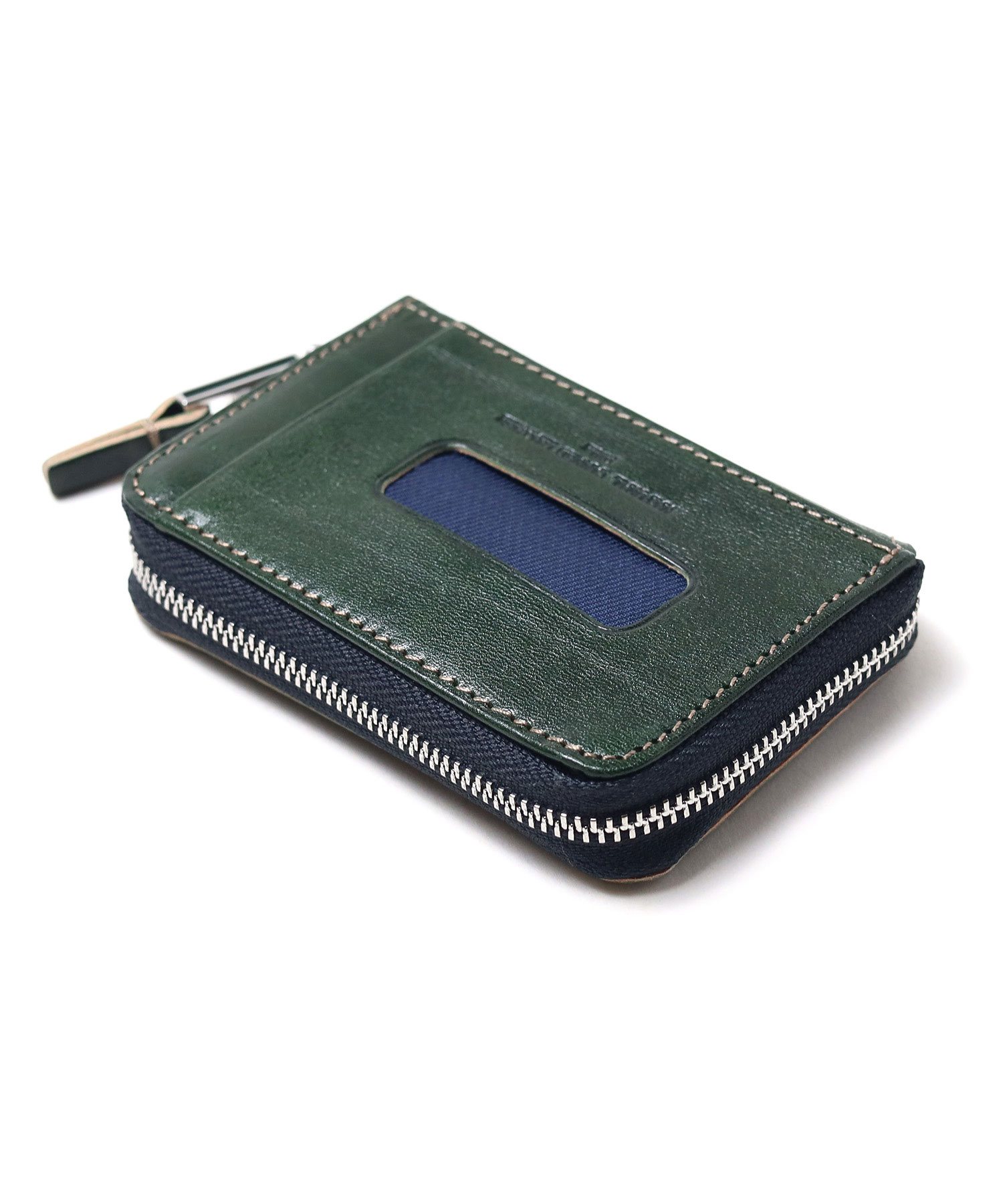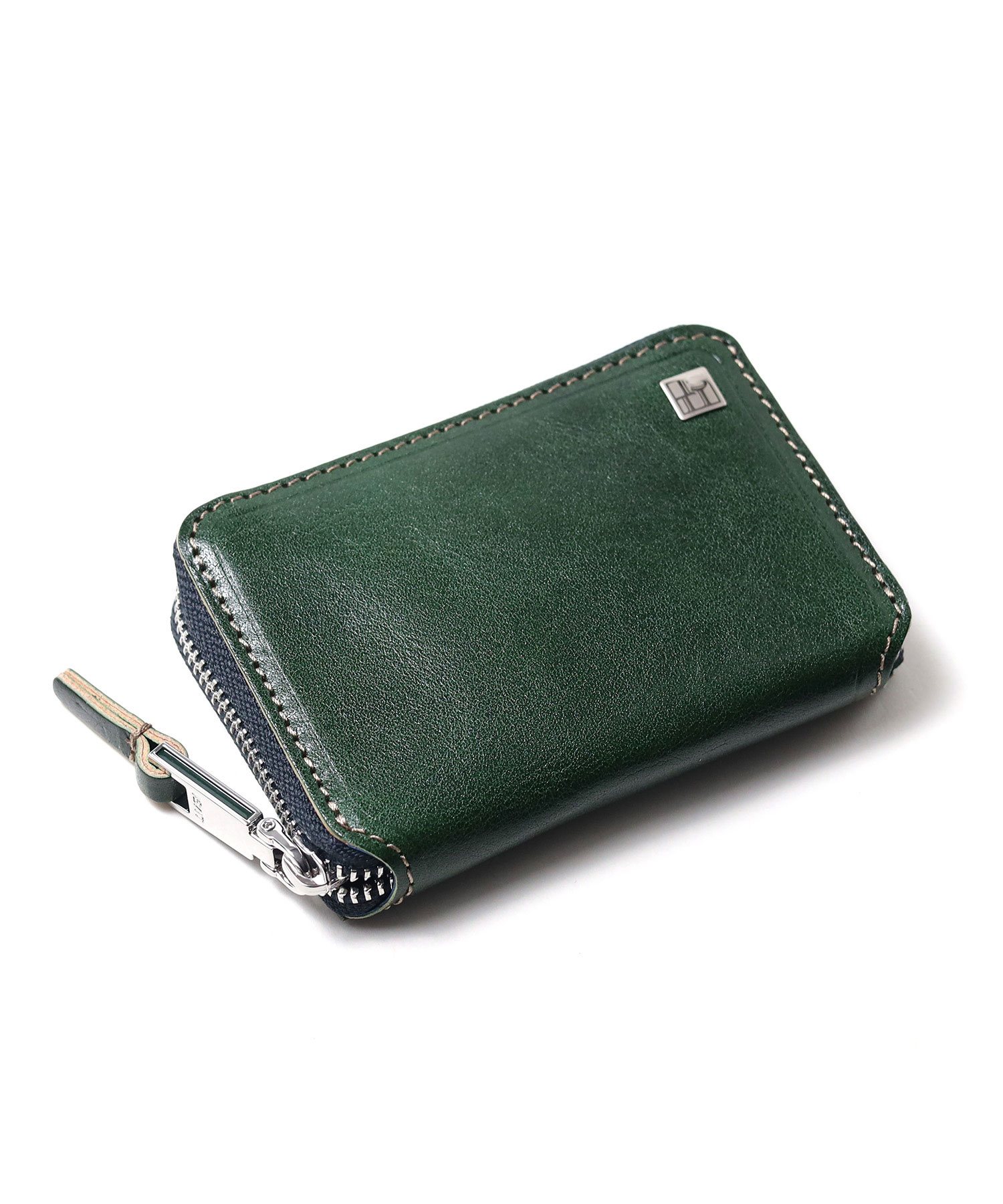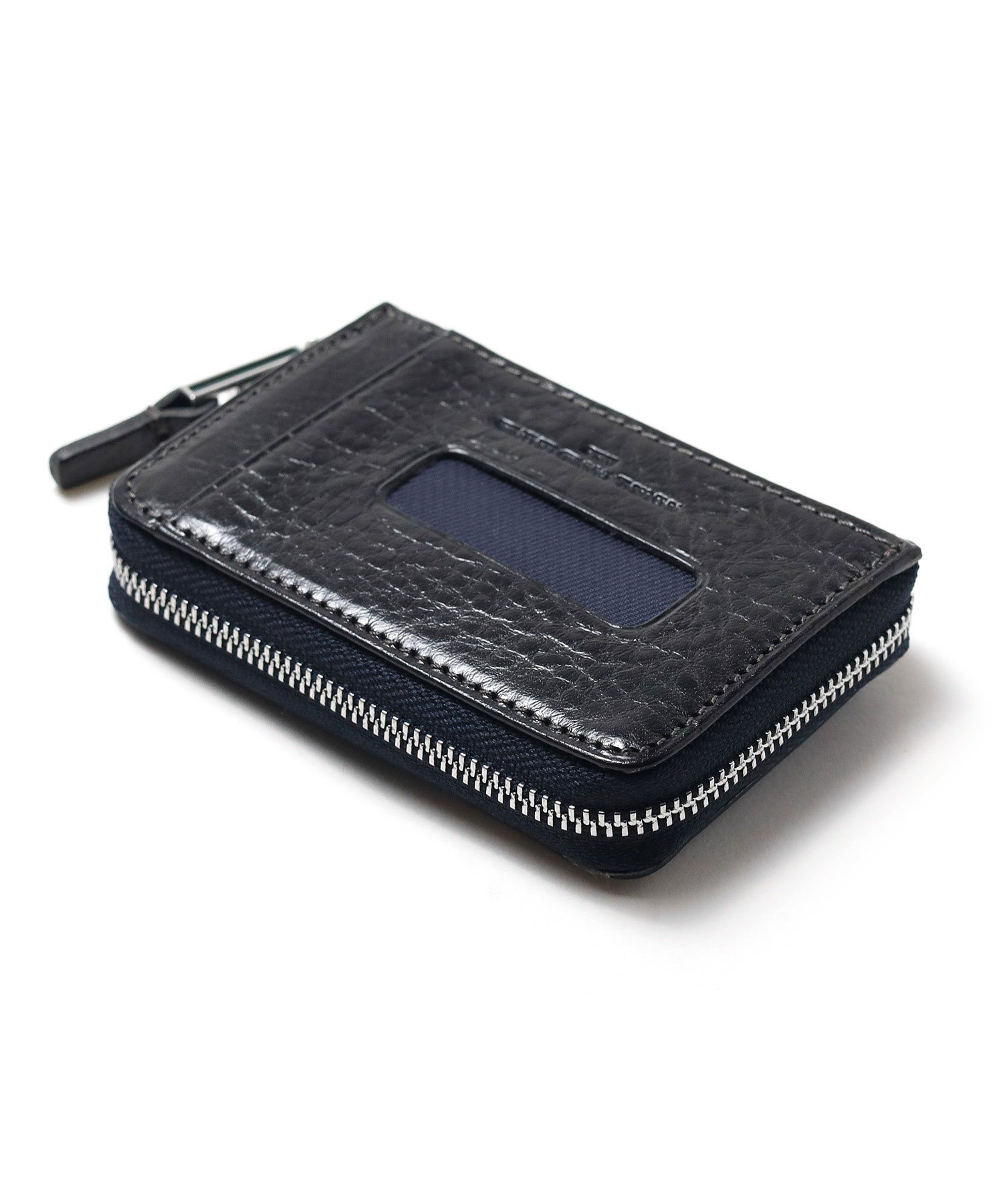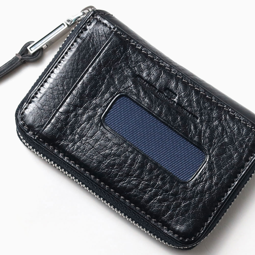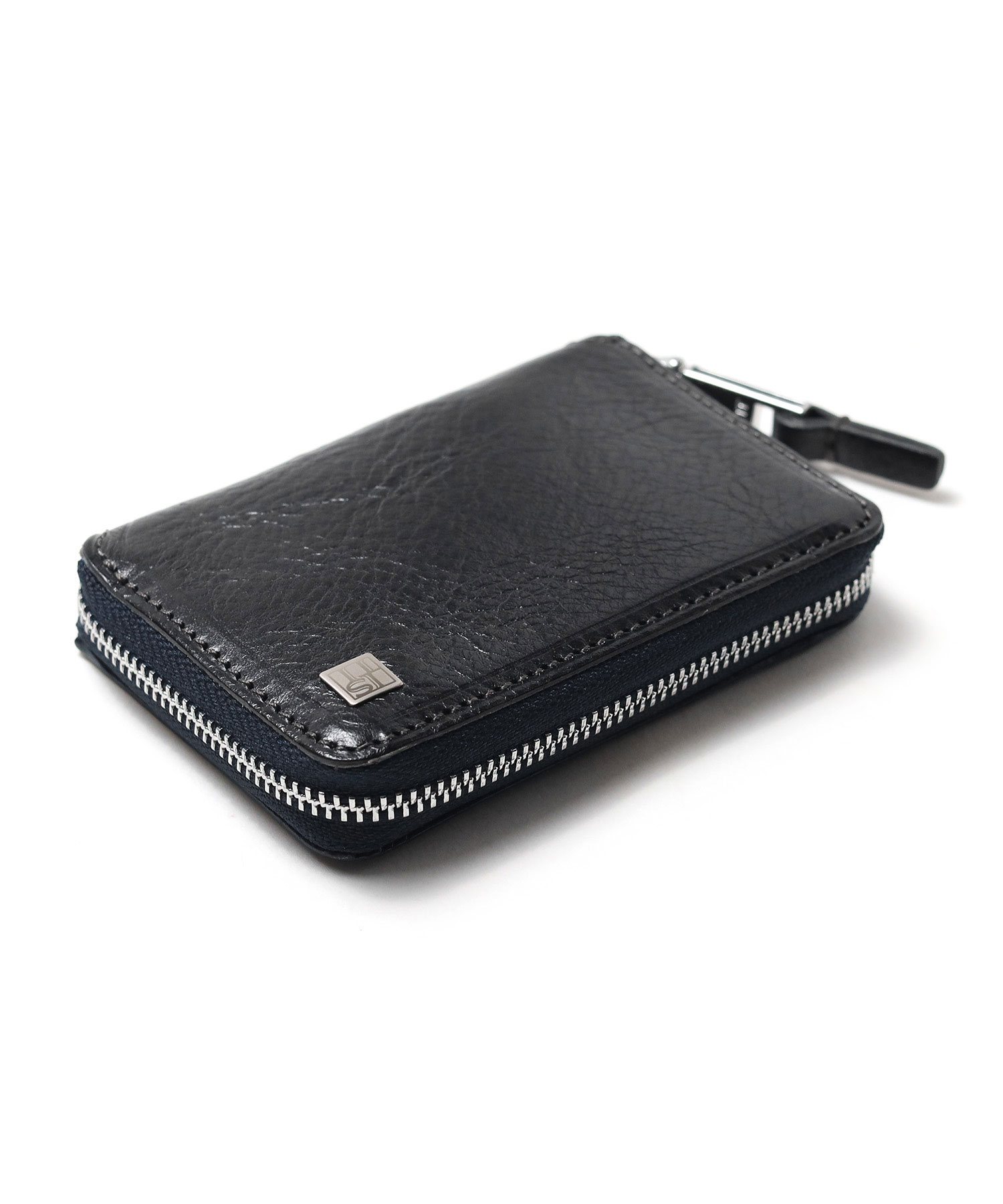 透明感のある光沢が特徴のイタリアンショルダーレザーを使用したBOX型の小銭入れ。イタリアの伝統的なタンポナート染色の手作業による自然なムラ感と綺麗な発色が魅力です。光沢感の違う二色のメッキで表現したミニマルなサイズ感のロゴプレートが、さり気ないポイントになっています。