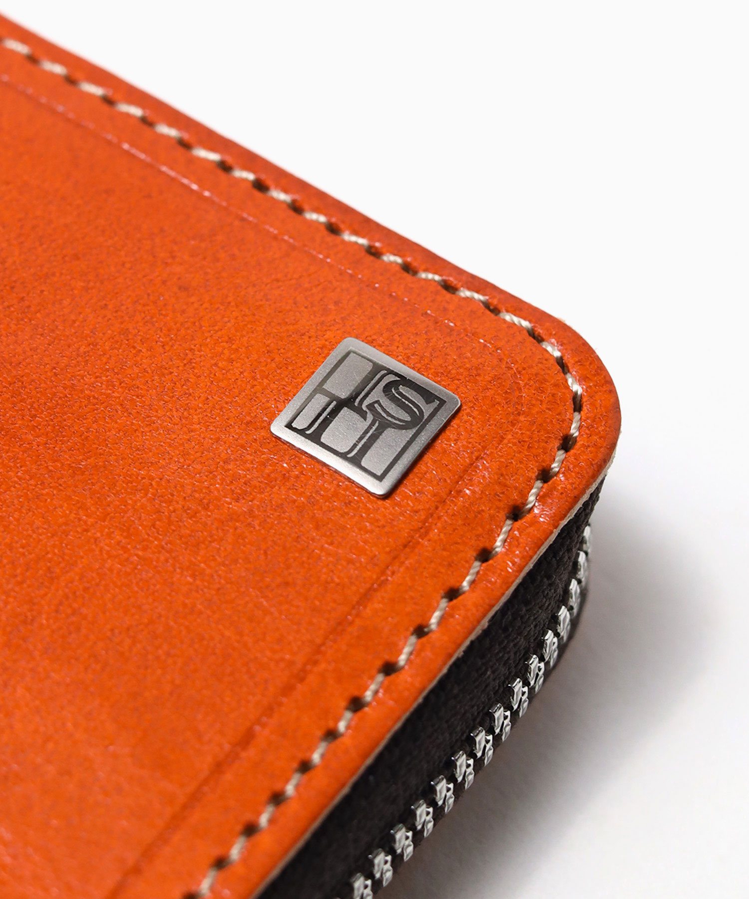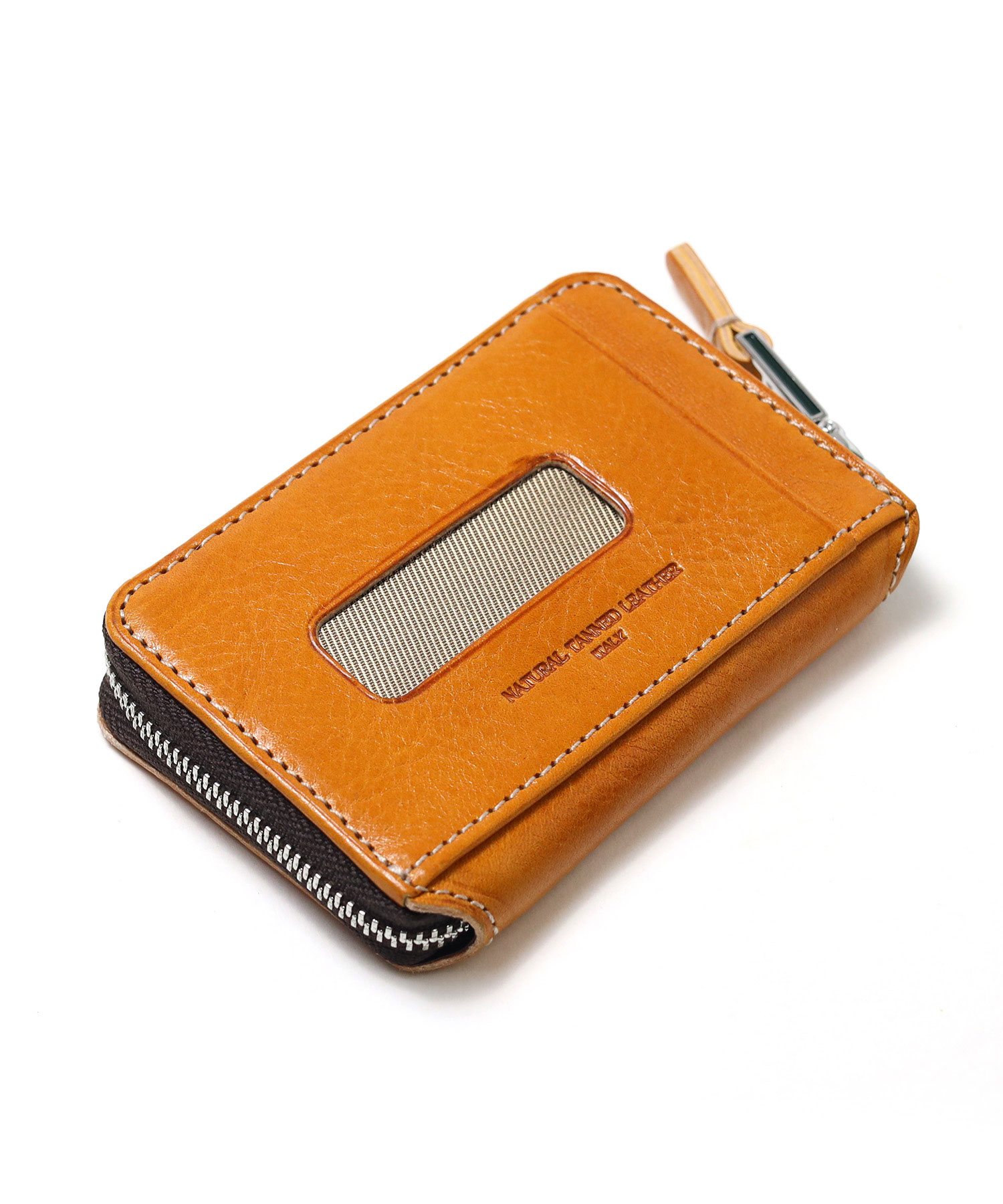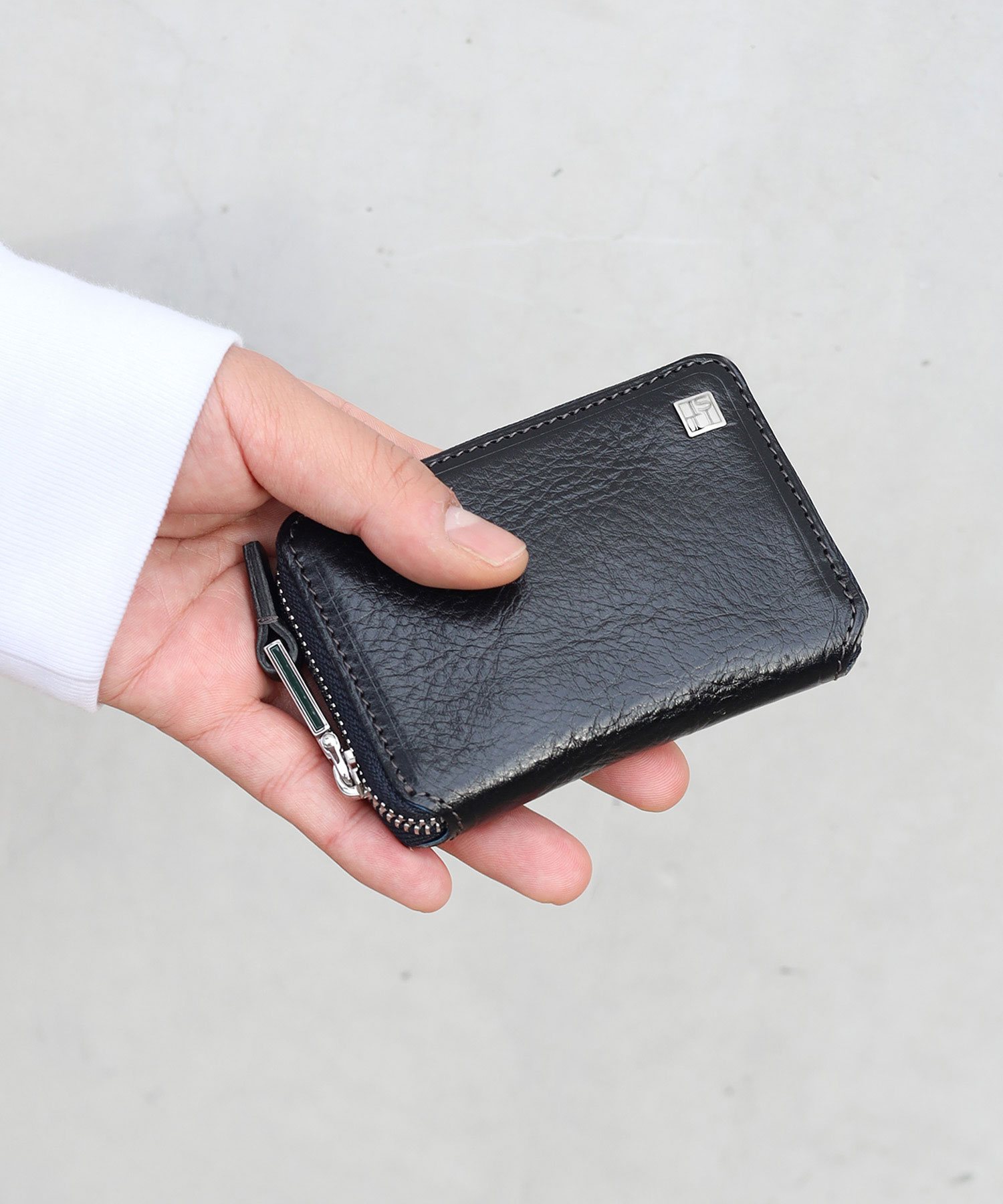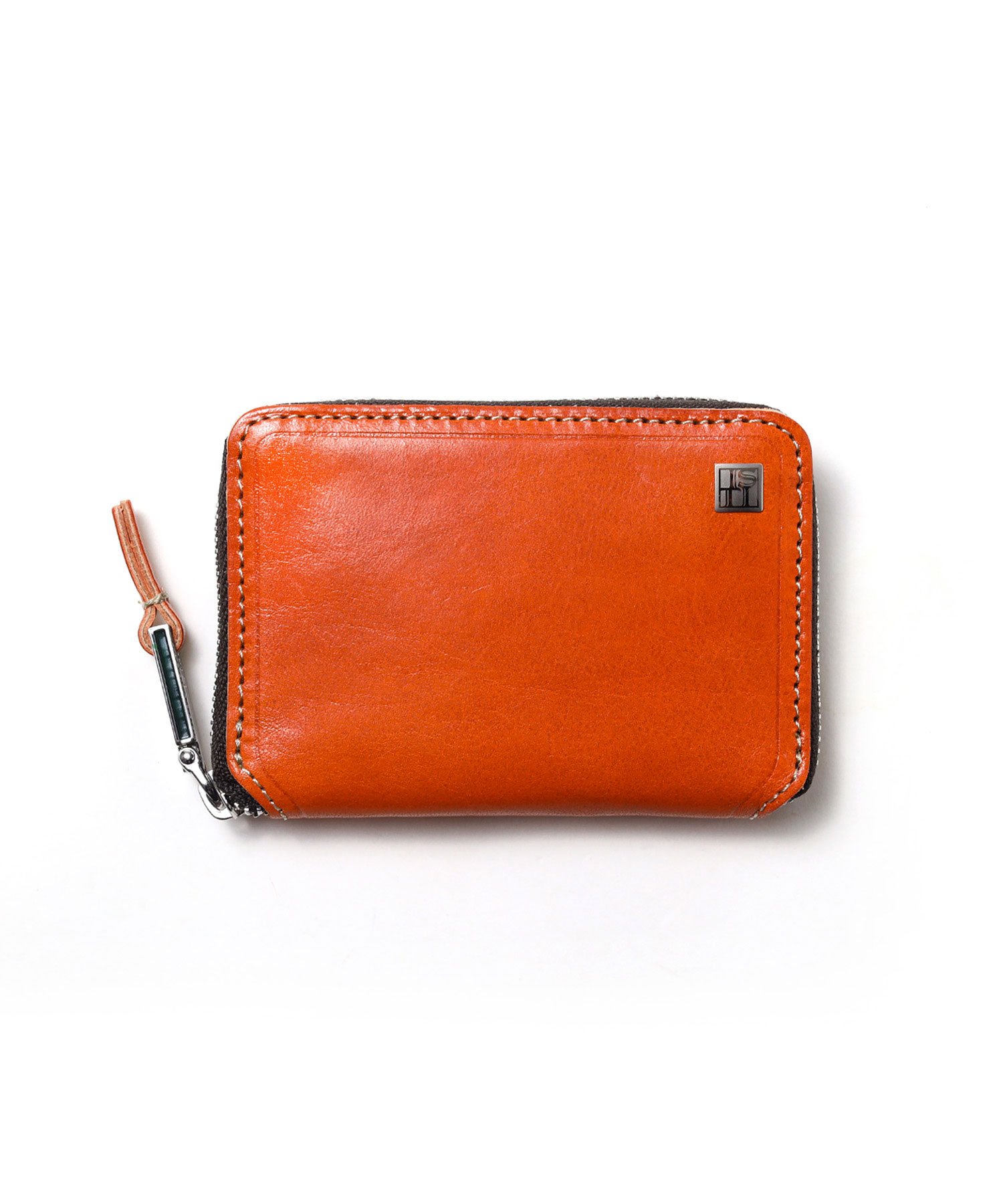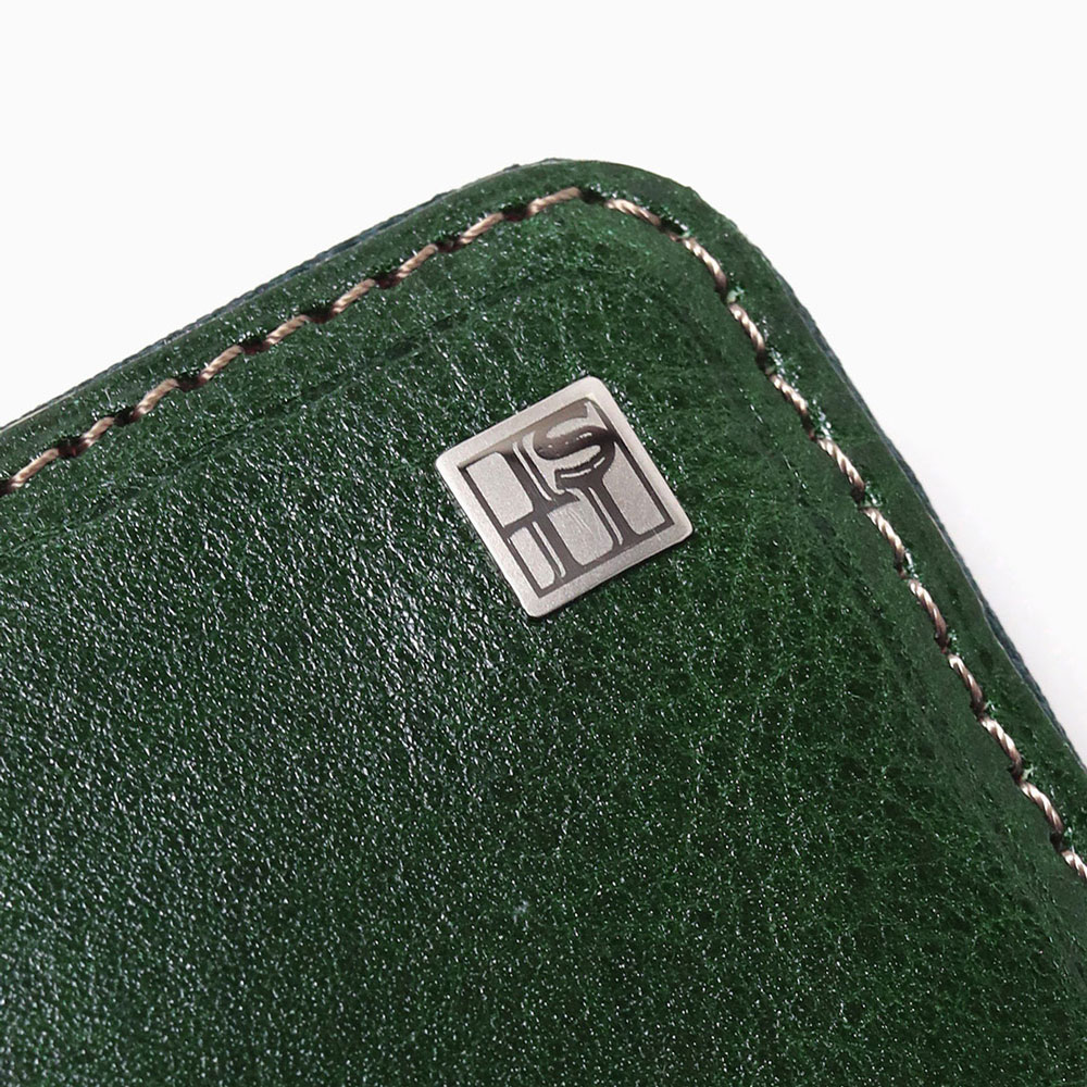 透明感のある光沢が特徴のイタリアンショルダーレザーを使用したBOX型の小銭入れ。イタリアの伝統的なタンポナート染色の手作業による自然なムラ感と綺麗な発色が魅力です。光沢感の違う二色のメッキで表現したミニマルなサイズ感のロゴプレートが、さり気ないポイントになっています。