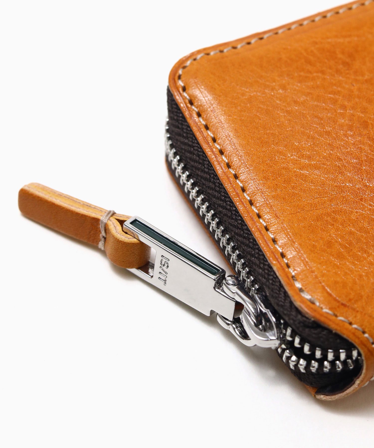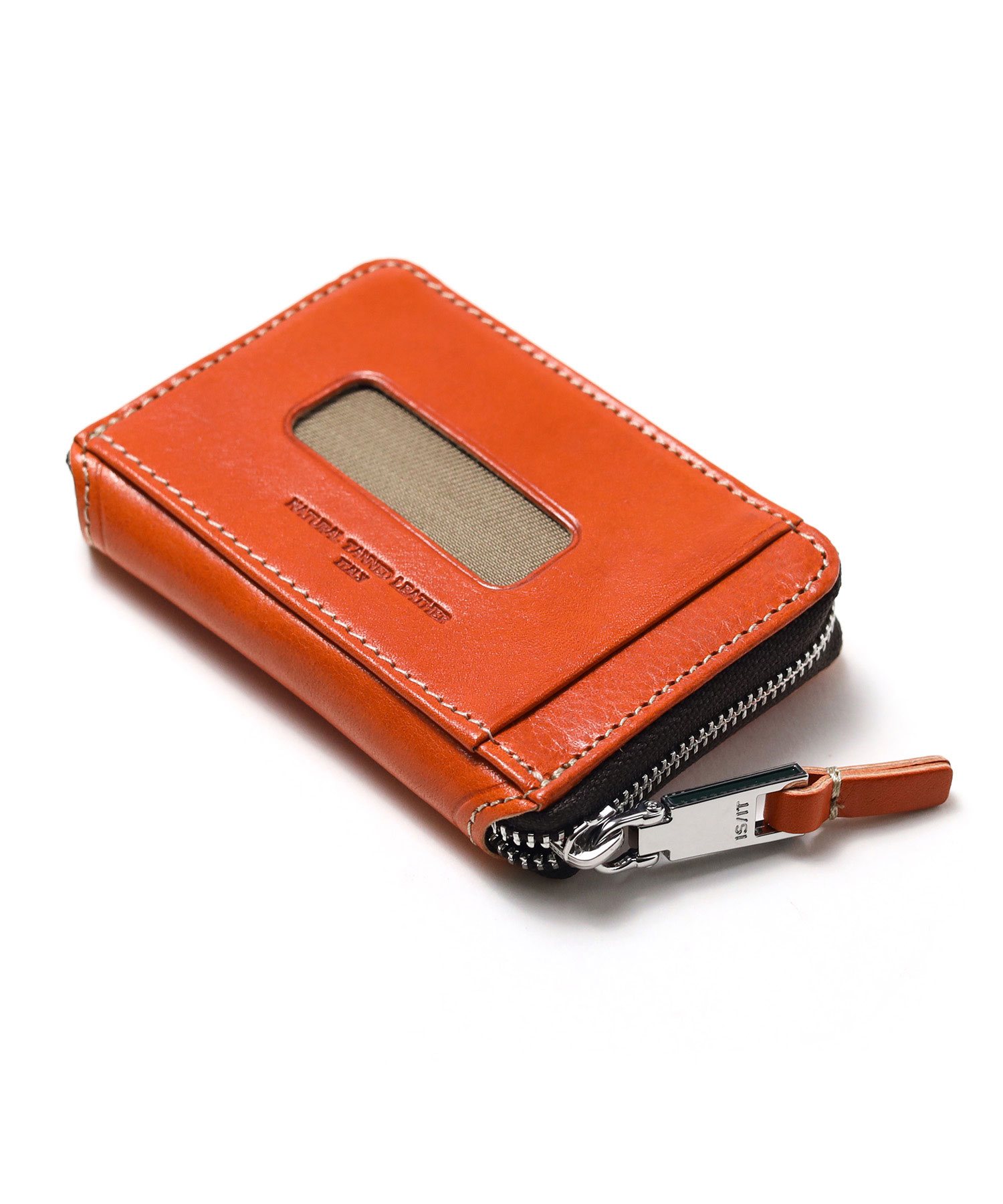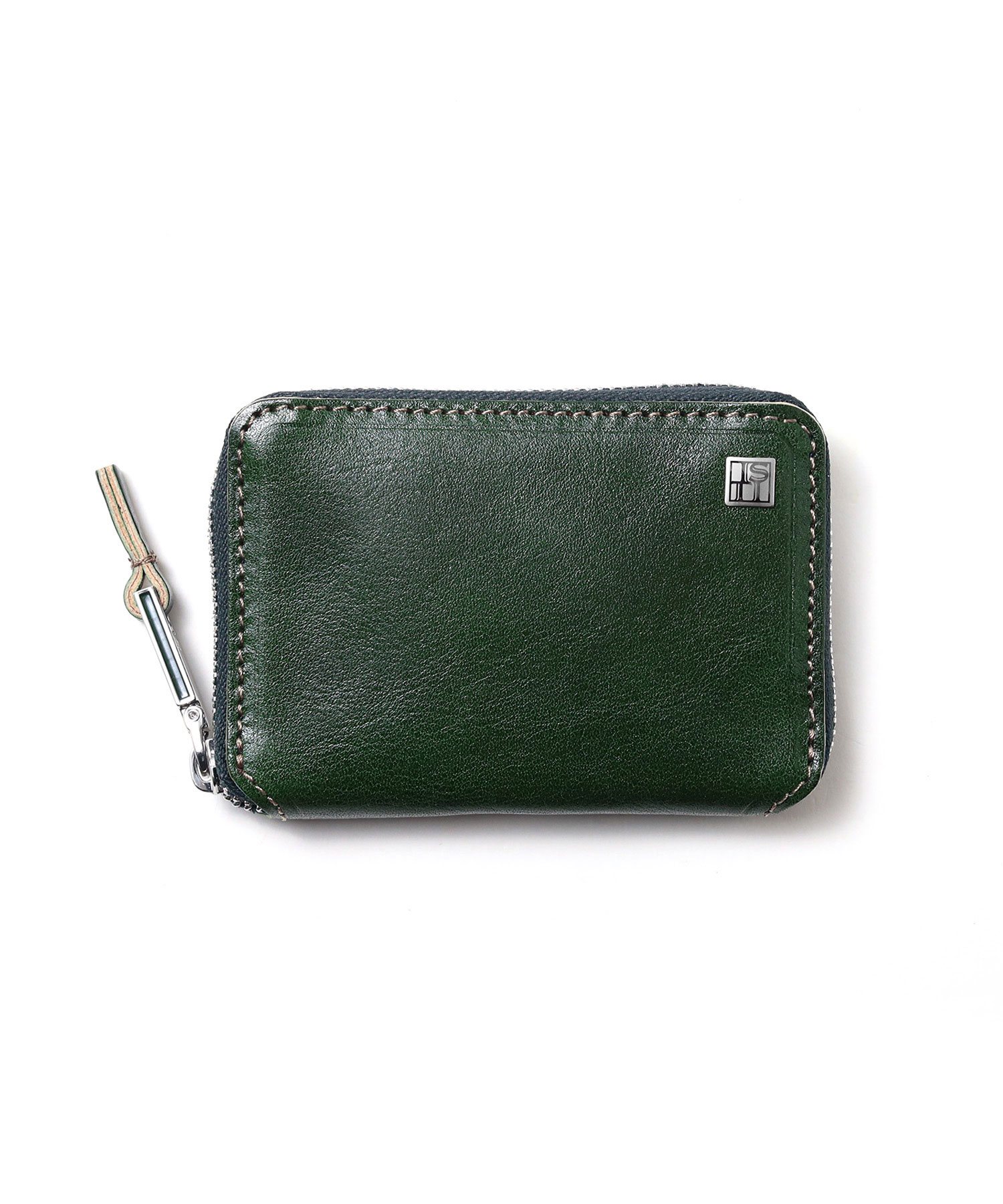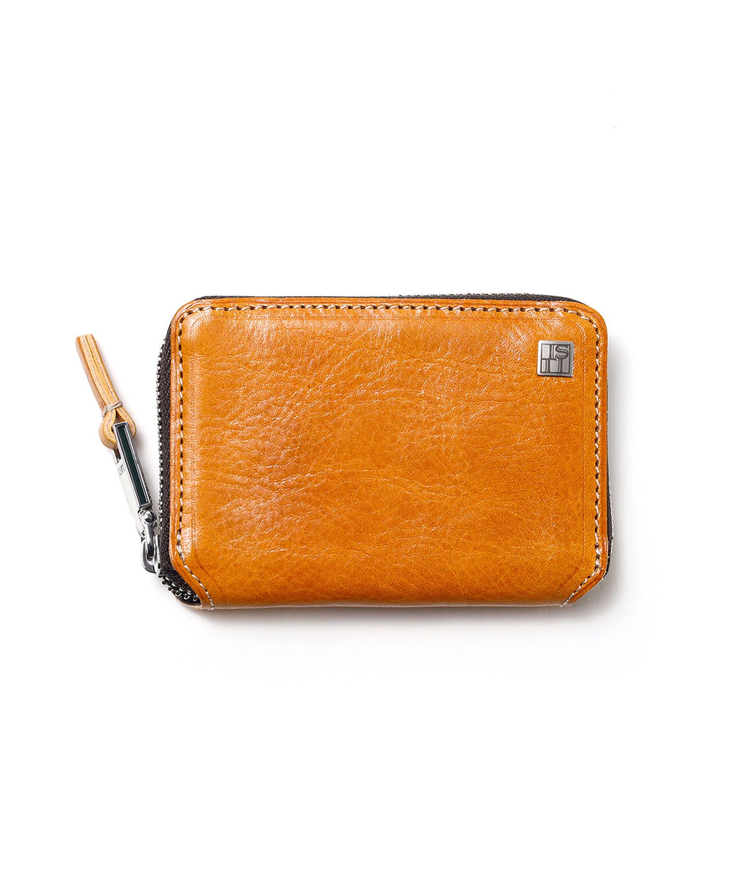 透明感のある光沢が特徴の、イタリアンショルダーレザーを使用した小銭入れ。イタリアの伝統的なタンポナート染色の手作業による自然なムラ感と綺麗な発色が魅力です。光沢感の違う二色のメッキで表現したミニマルなサイズ感のロゴプレートが、さり気ないポイントになっています。