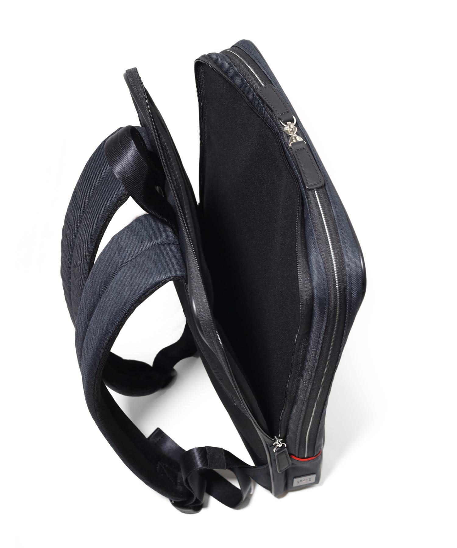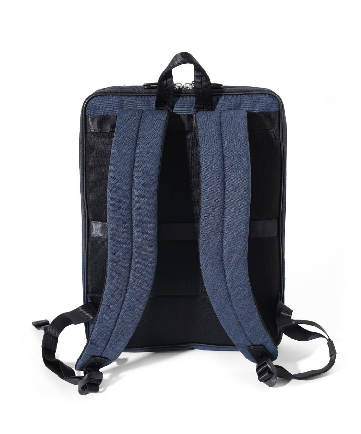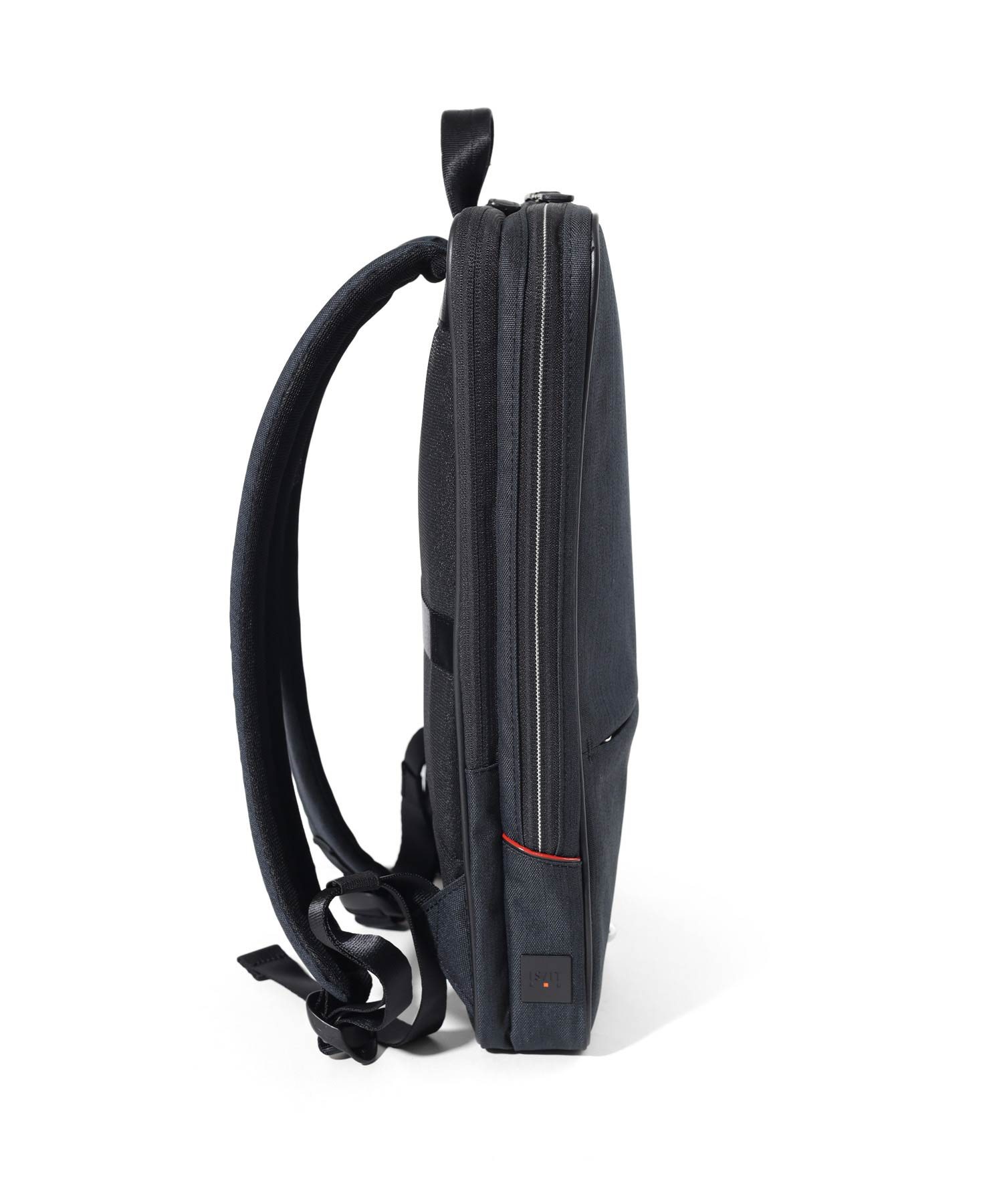 エコ通勤やジャケットスタイルにも合う、イズイットのA4ビジネスリュック。すっきりと持てるスリムタイプのビジネスリュックで、13.3インチPCは背側に別収納が可能な2層タイプです。イズイットのロゴプレートと、オレンジラインでブランドらしさを表現しています。