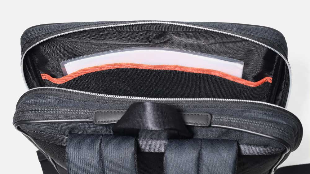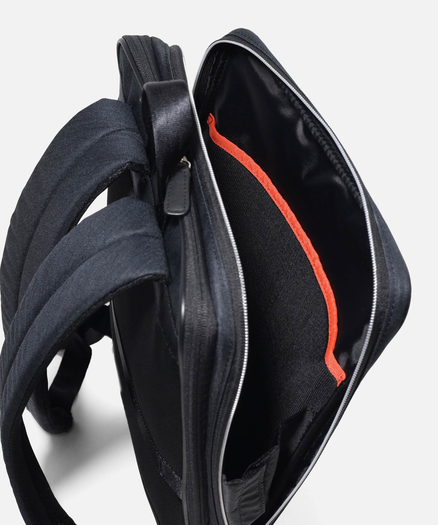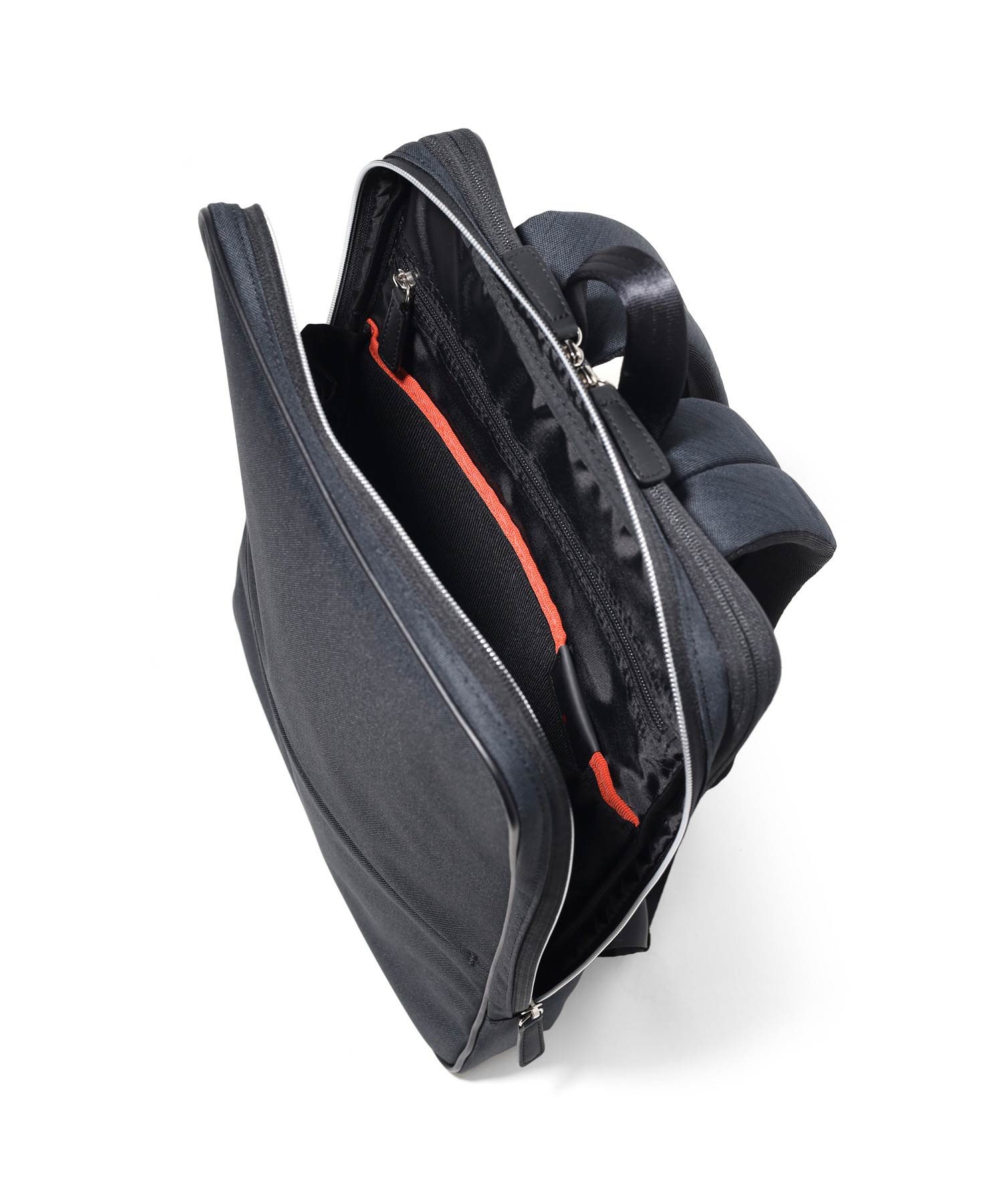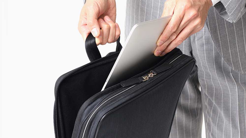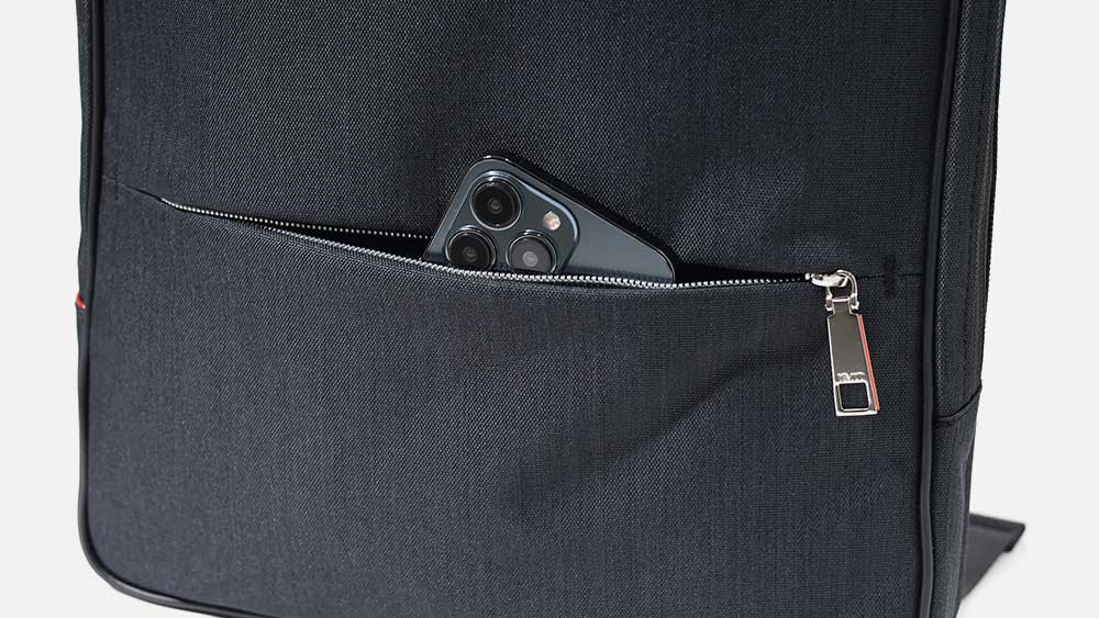 豊富な収納ポケットで、ビジネスに必要なあらゆる荷物の持ち運びが可能です。A4ファイルがすっぽり収まるメインコンパートメントは前室と後室に分かれた2層タイプ。前室にはファスナーポケットが1つ、ポケットが1つ、A4クリアファイルが収まるポケットが1つ装備されています。後室には13.3インチPCを分けて収納ができます。また、フロントのファスナーポケットは浅型に設計しており、さらに内側はパイル生地を使用することで、スマートフォン等を入れても画面を傷つける心配がありません。