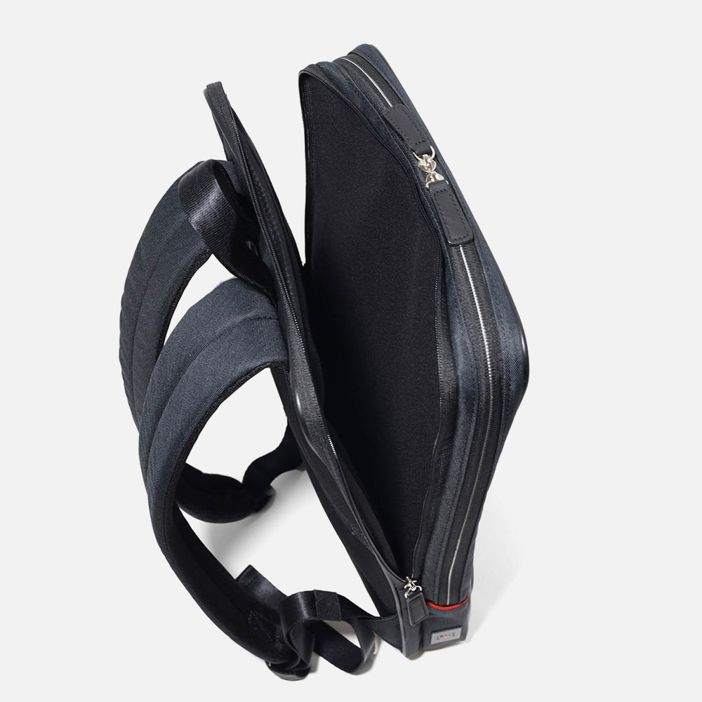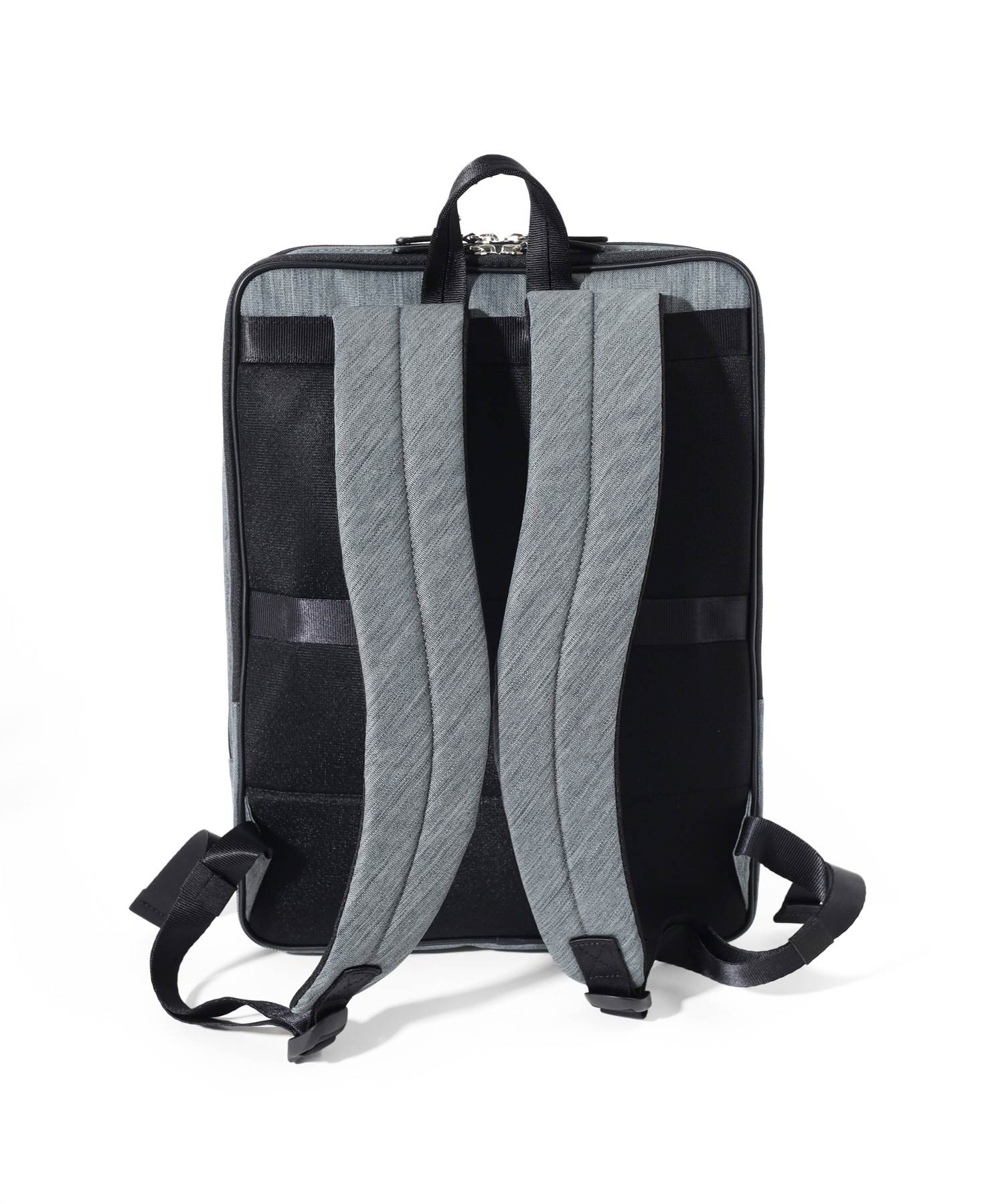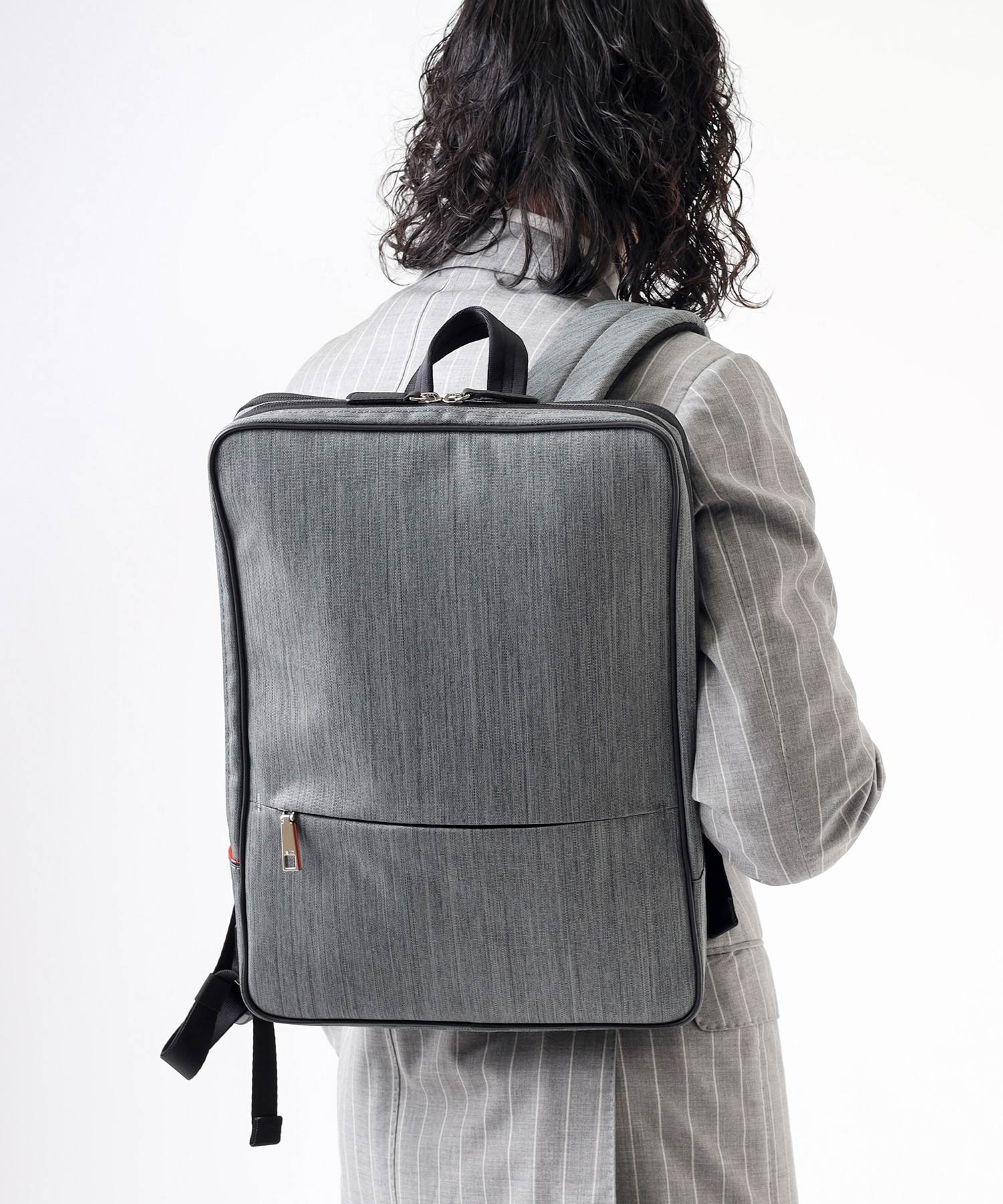 本体素材にはシャンブレー調のポリエステル生地を使用。ポリエステルには撥水加工を施しているので雨の日でも安心して使えます。更に軽量に仕上げているので身体への負担を軽減してくれます。